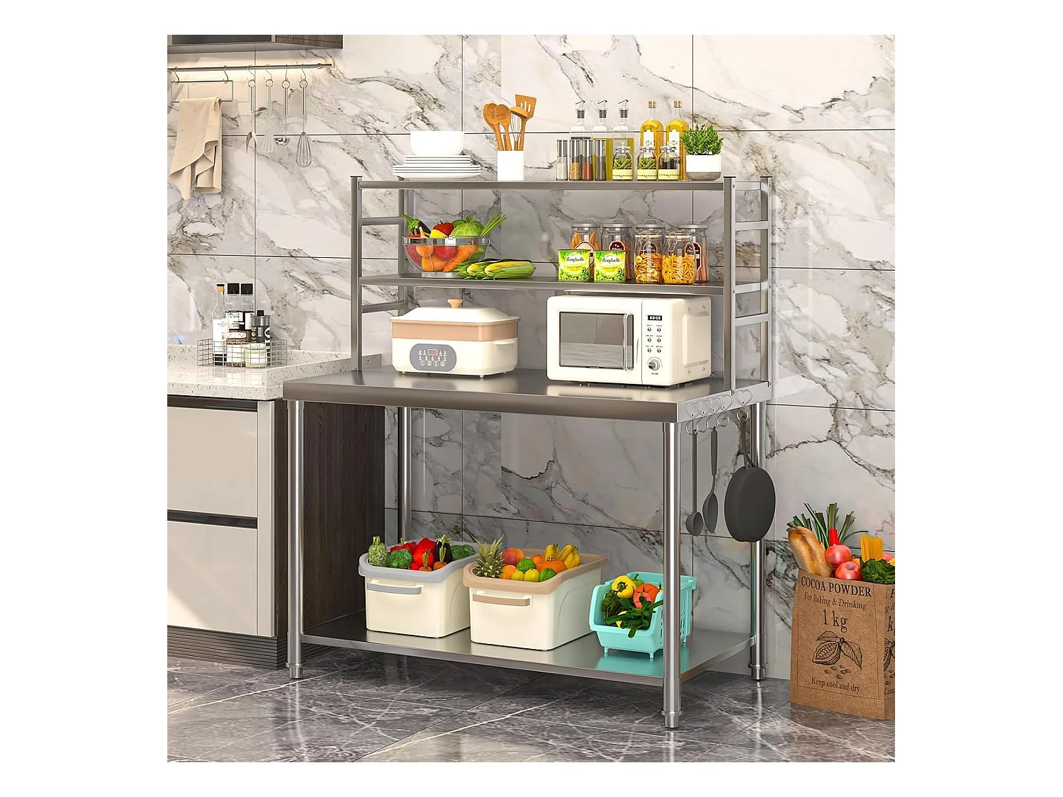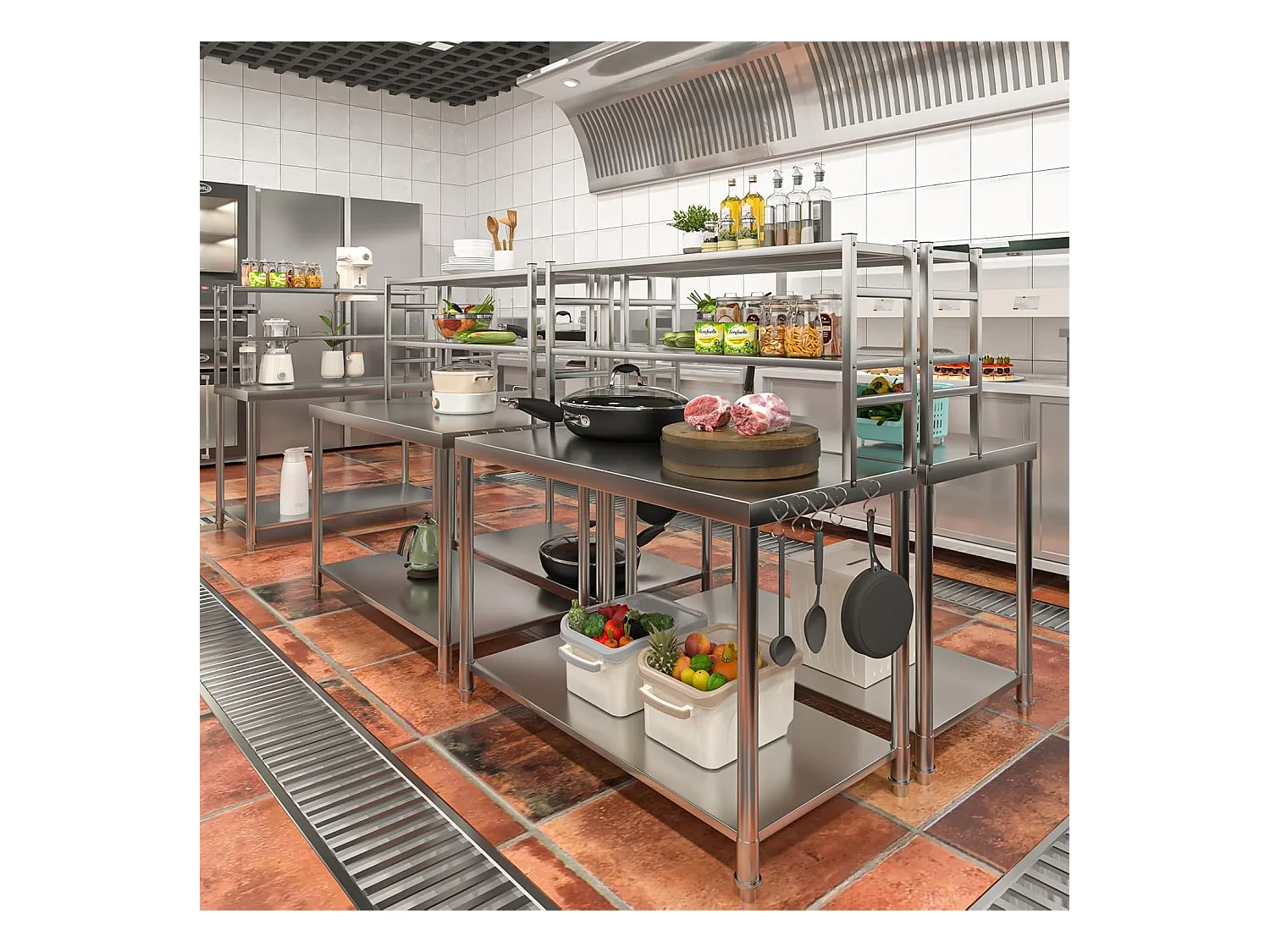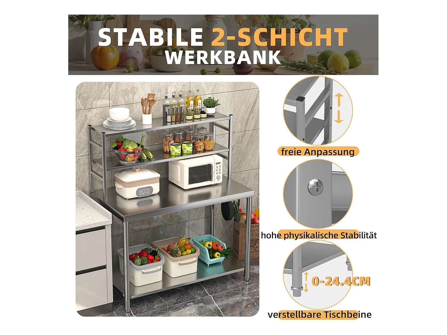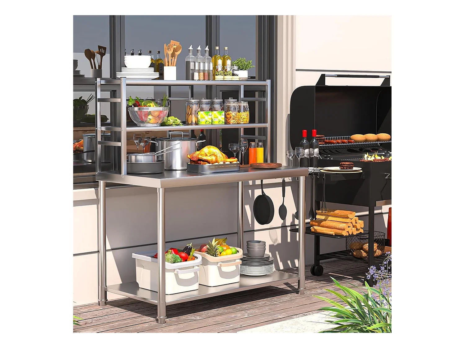 YODOLLA Edelstahltisch 122x61x138cm, 2-lagige Ablage & Unterregal. Werkbank für Küche, Lebensmittelzubereitung, Pizzaofen & Grill