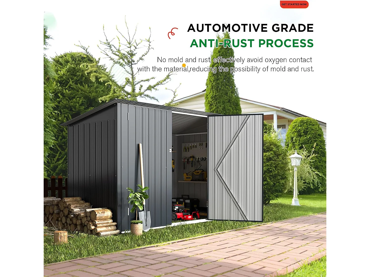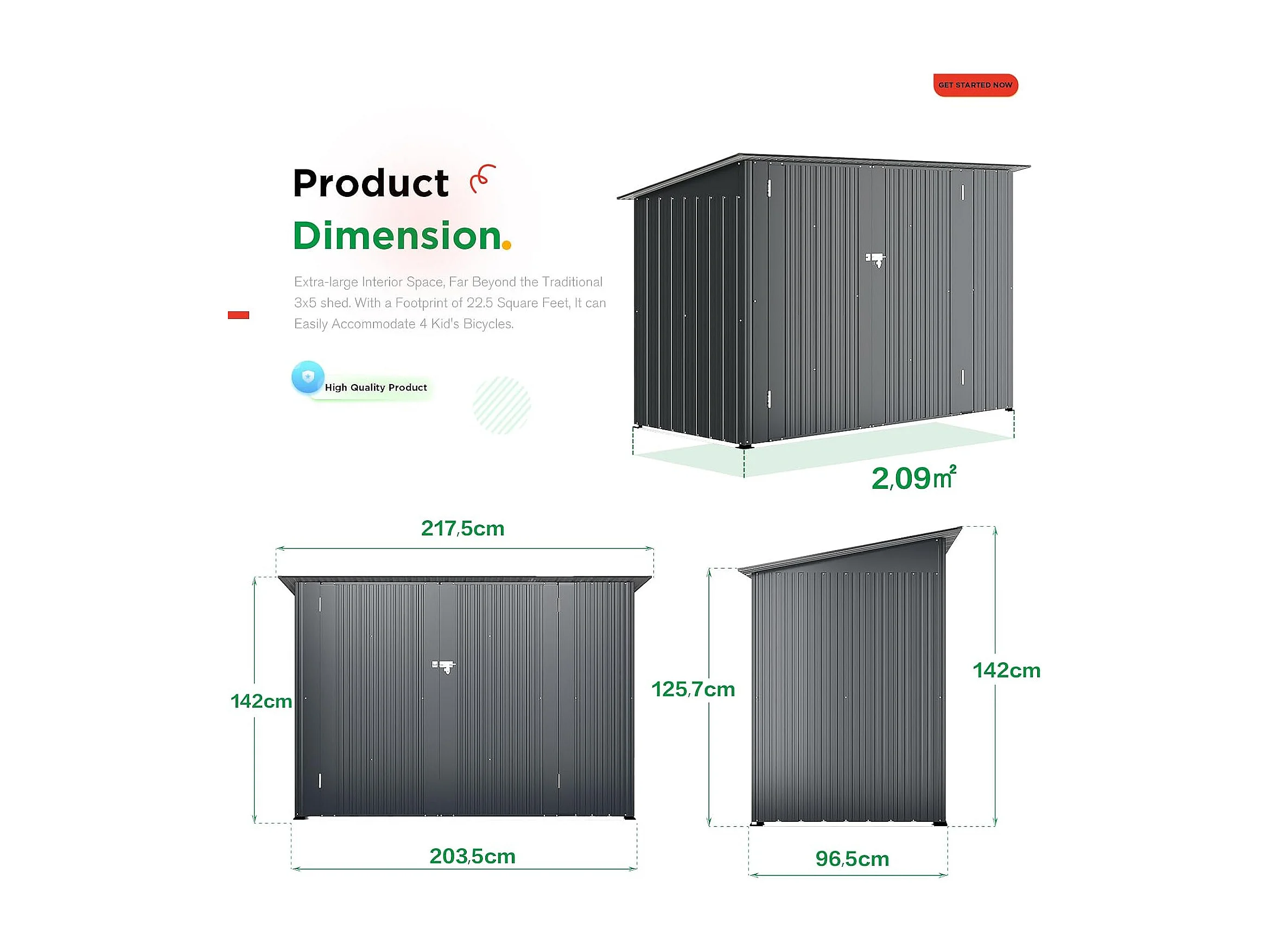 YODOLLA Fahrradschuppen aus Metall, wasserdichtes & abschließbares Gerätehaus für Garten, 217x96x141cm, Grau