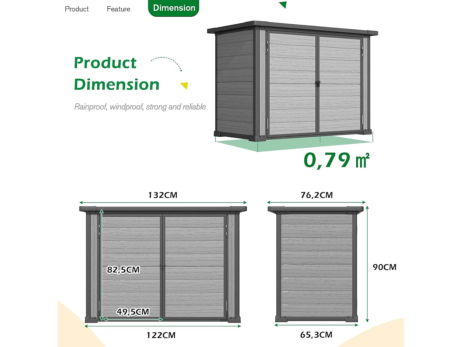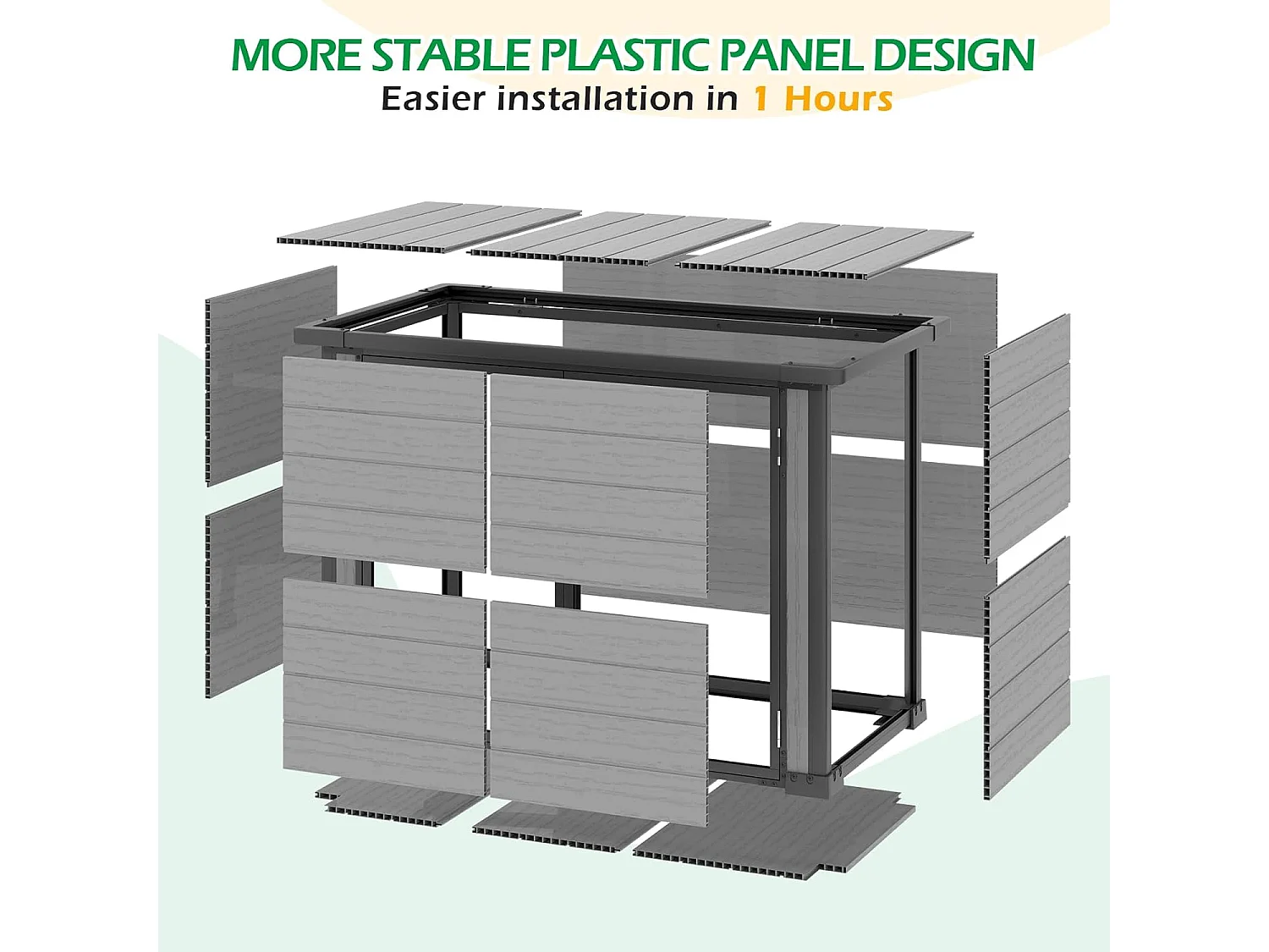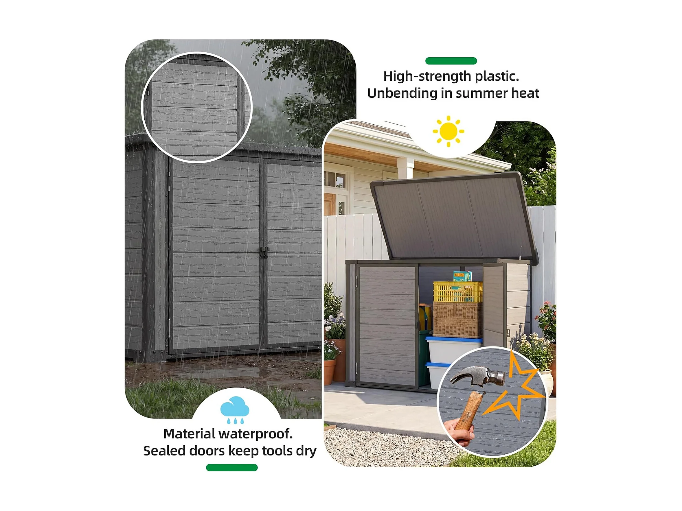 YODOLLA Garten-Aufbewahrungsbox,wetterfester Kunststoffschuppen mit abschließbarem Deckel für Garten & Terrasse, 132x76x90cm,Grau