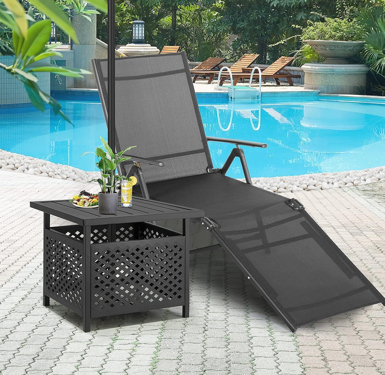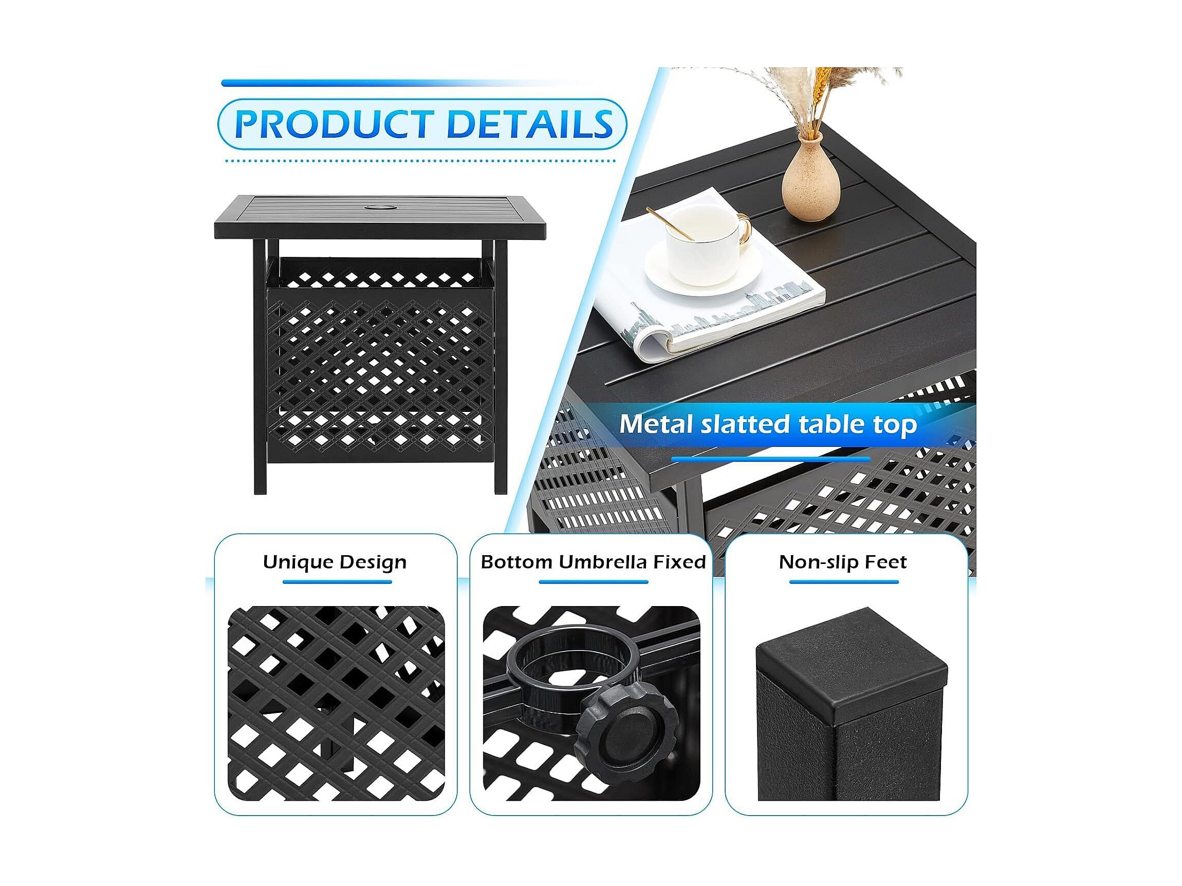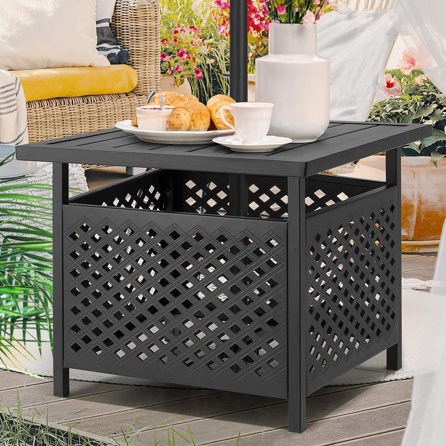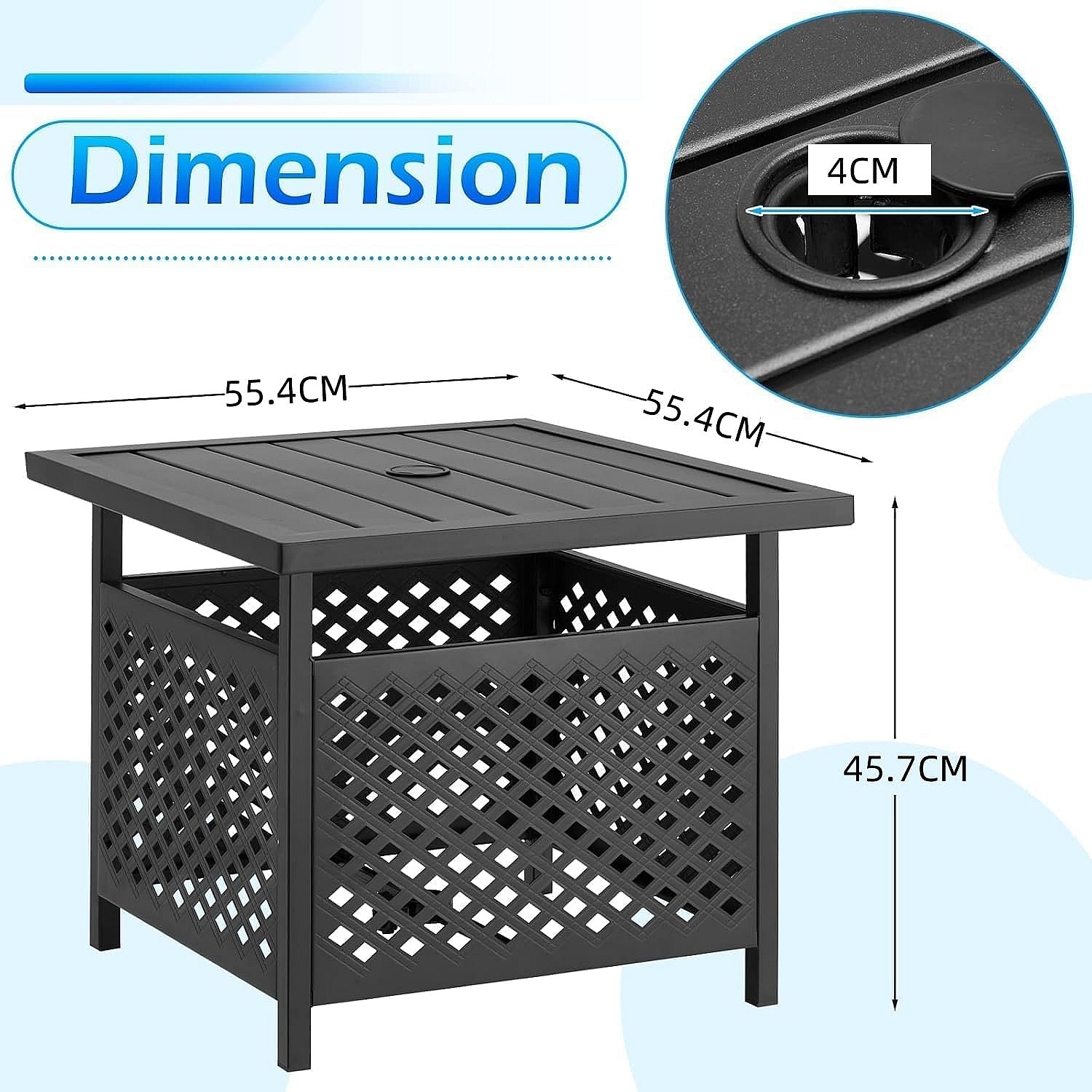 YODOLLA Garten Beistelltisch mit Sonnenschirmloch (Ø4cm), Kleiner Gartentisch aus Metall für Terrasse, Pool, Garten, 55 x 55 x 46 cm