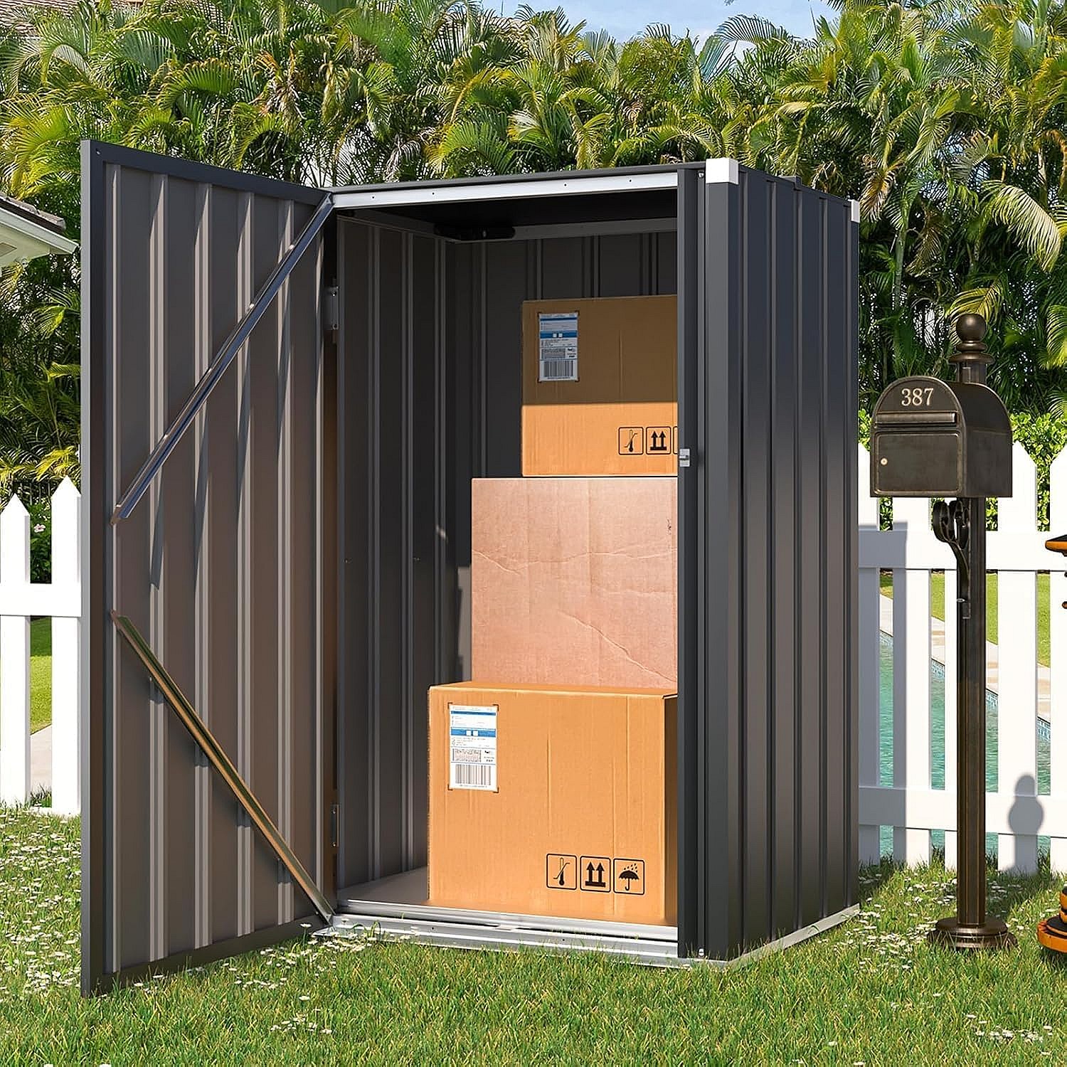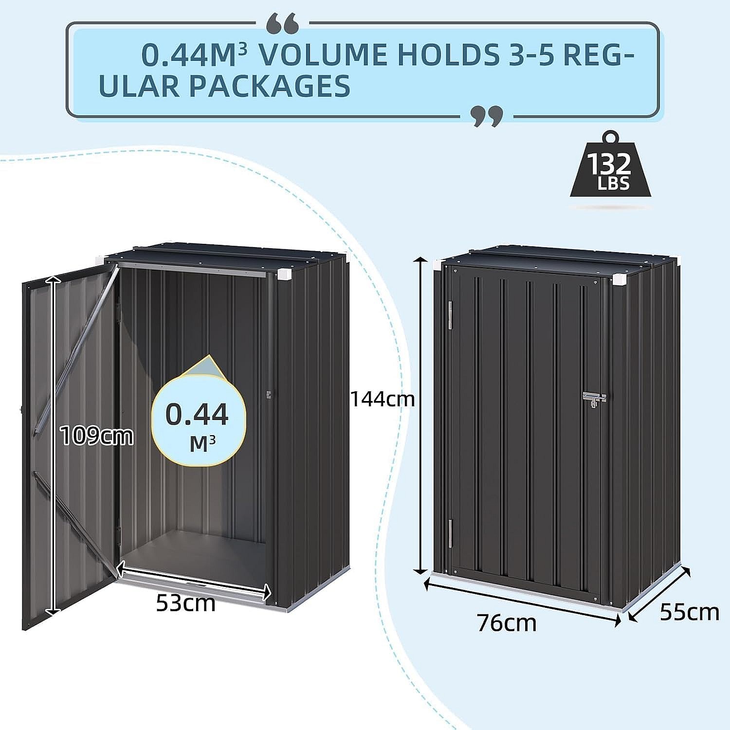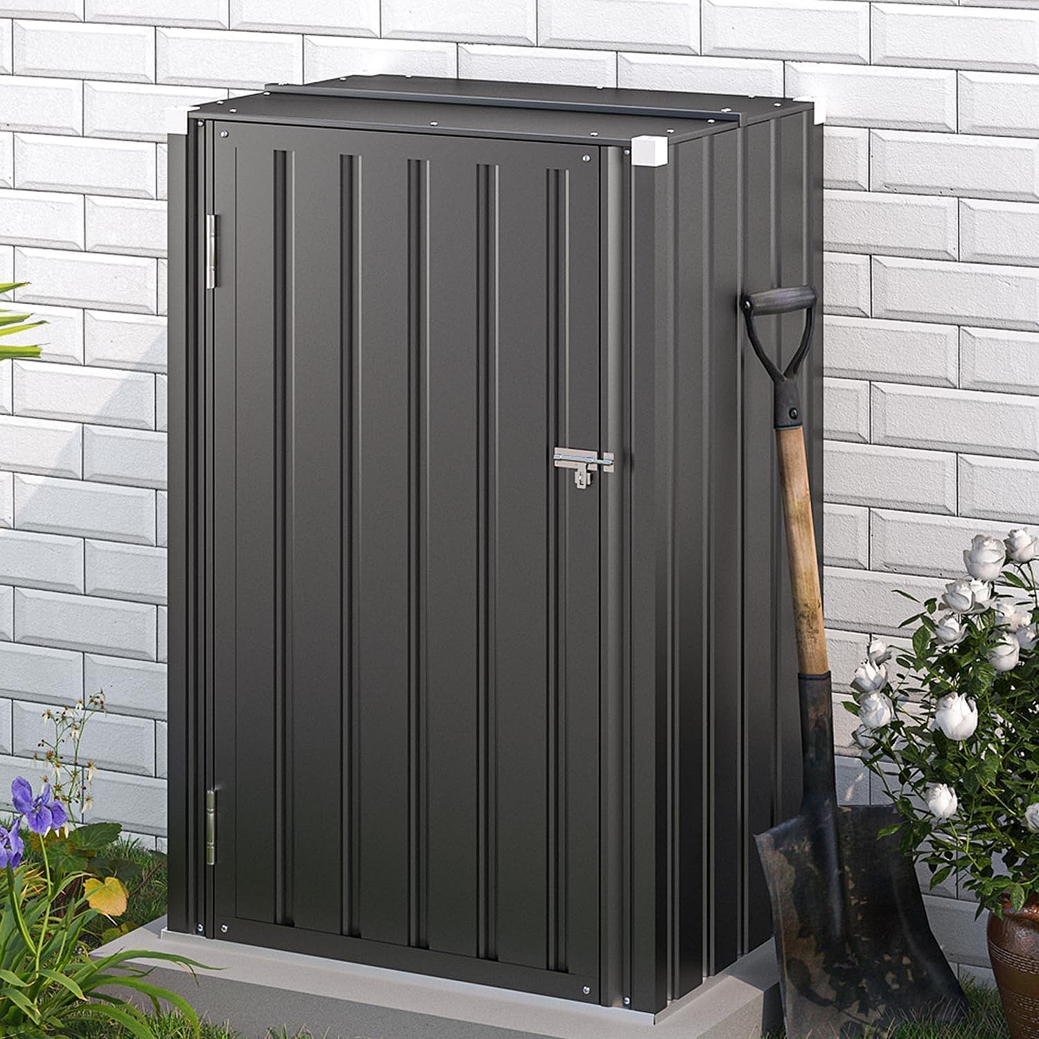 YODOLLA Gartenschrank, 76x55x144cm Einzel-Tür Außenschrank wetterfest, Stabil Metall Paketzustellkasten & Lagerung mit Schloss für Garten, Dunkelgrau
