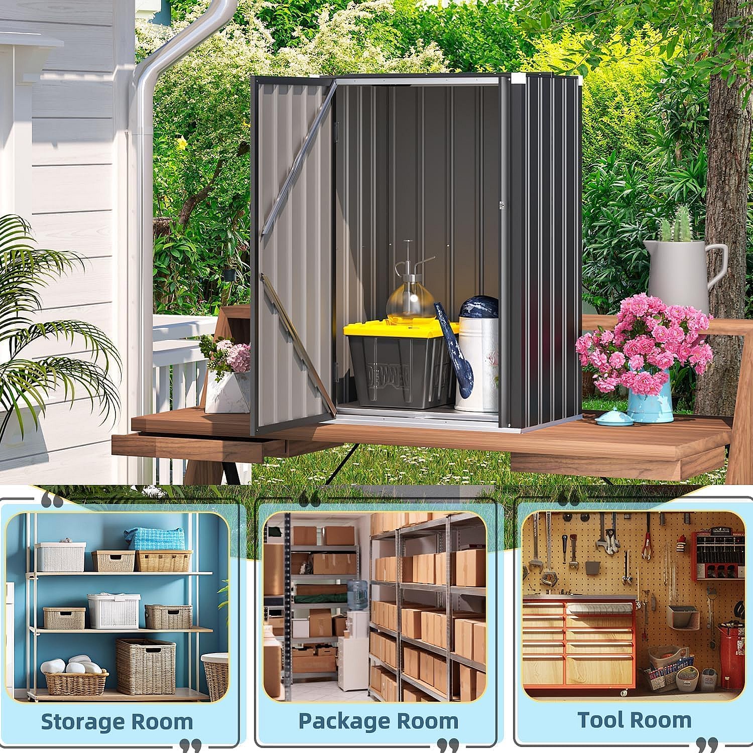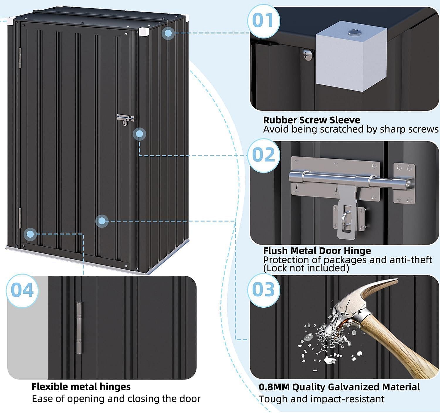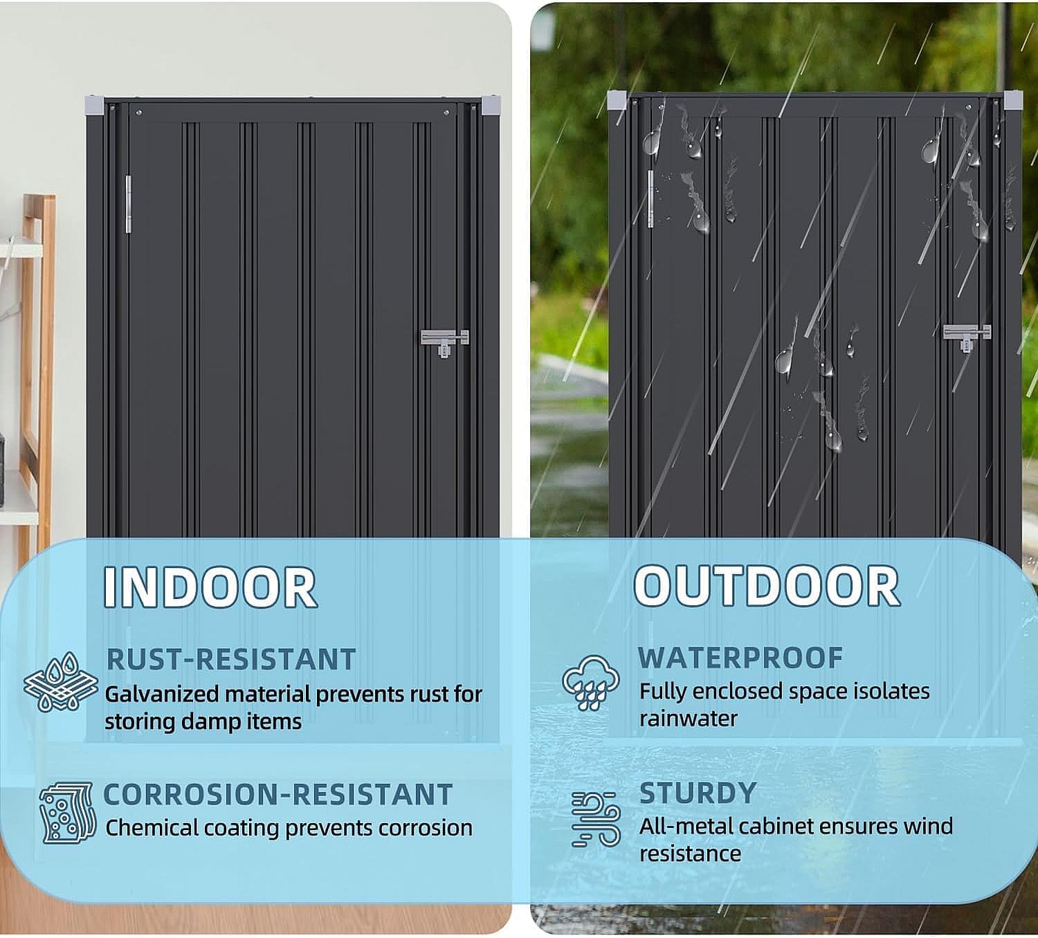 YODOLLA Gartenschrank, 76x55x144cm Einzel-Tür Außenschrank wetterfest, Stabil Metall Paketzustellkasten & Lagerung mit Schloss für Garten, Dunkelgrau