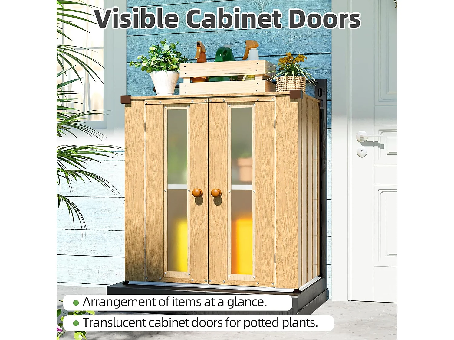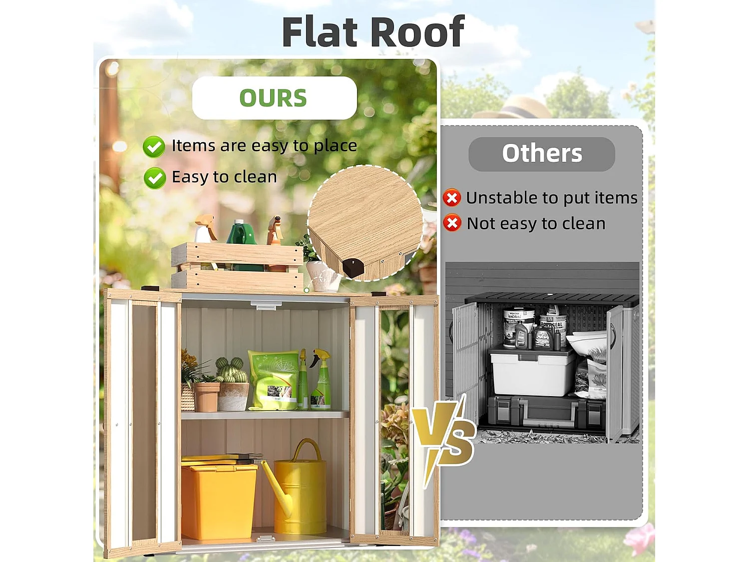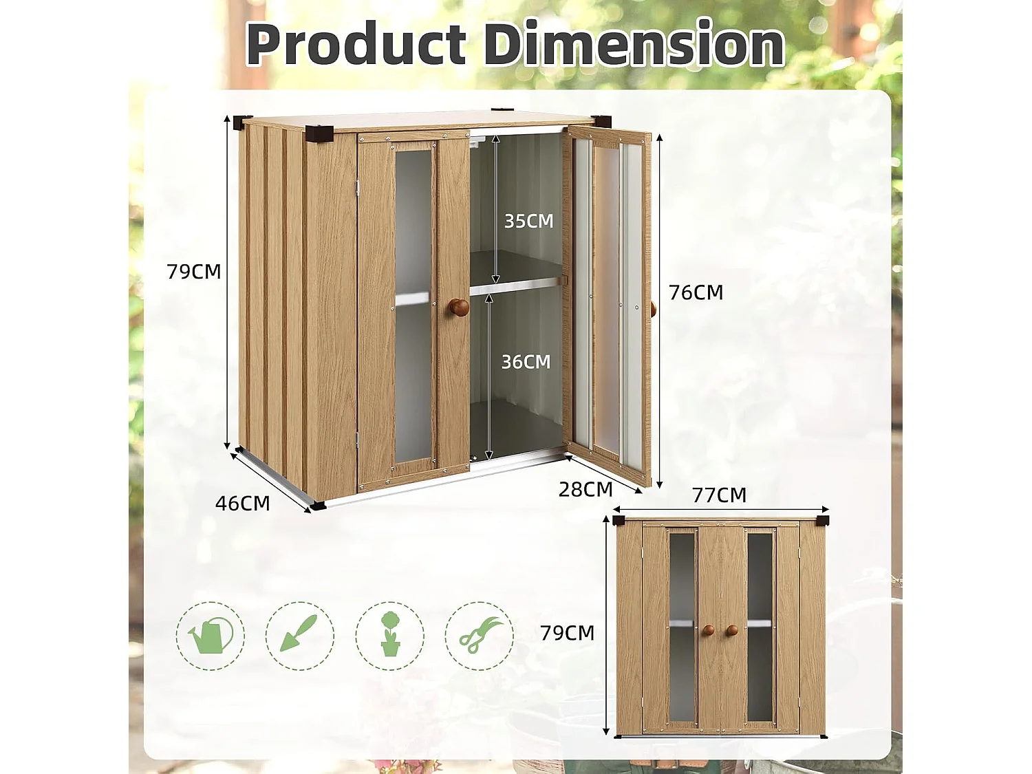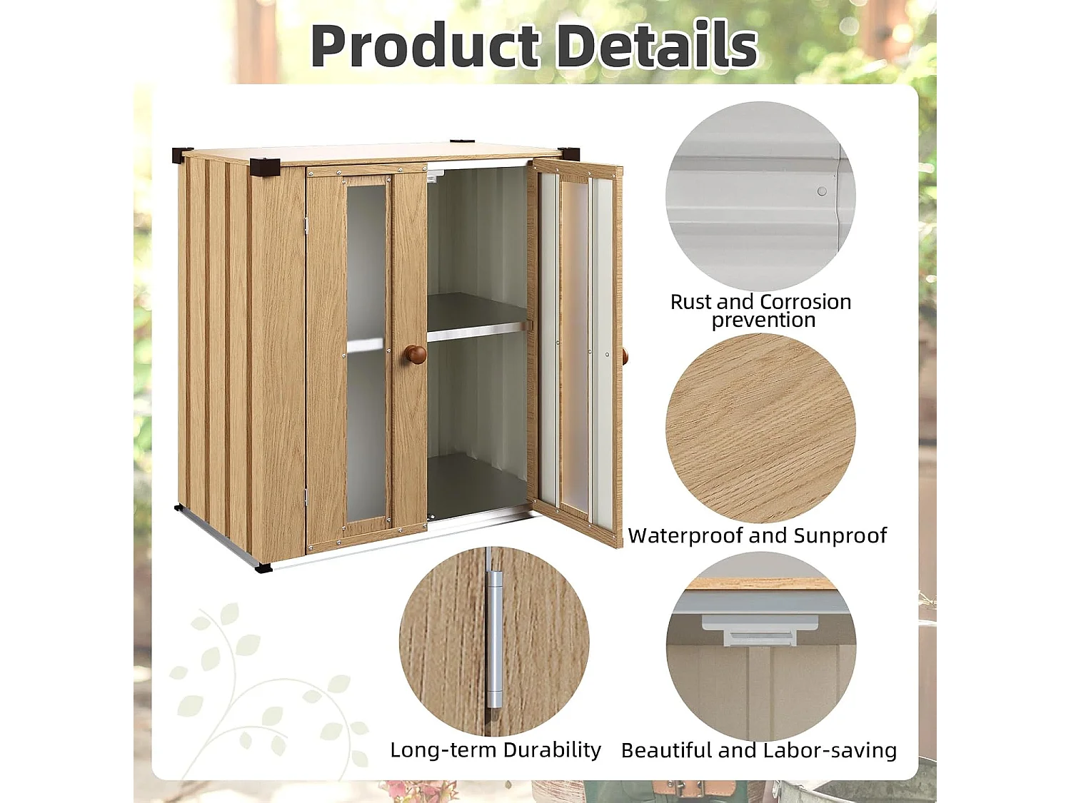 YODOLLA Gartenschrank in Holzoptik, wetterfester Aufbewahrungsschrank mit Böden für die Terrasse