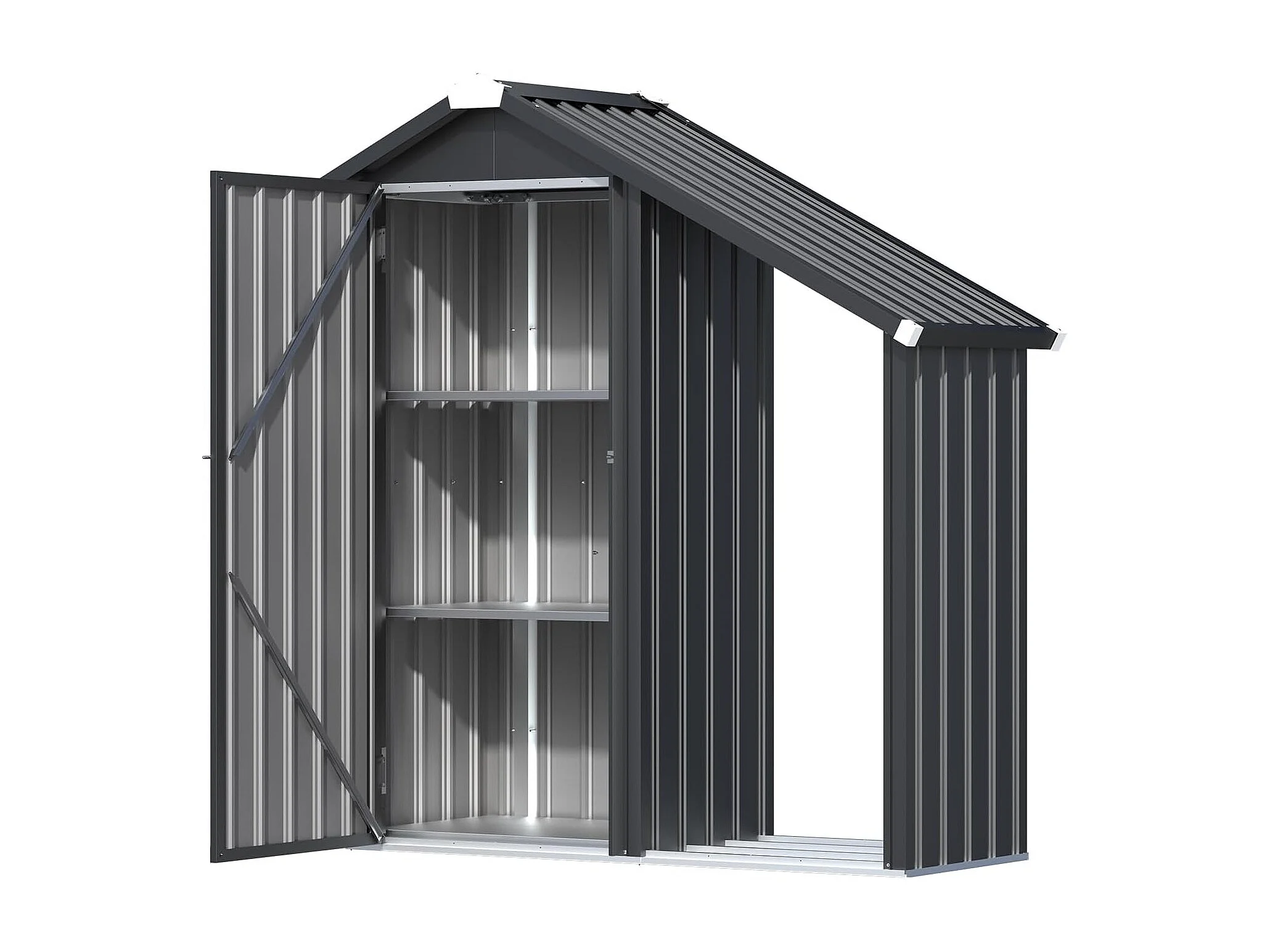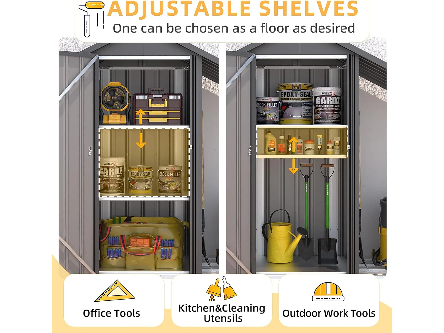 YODOLLA Gartenschrank mit Metallregalen, wetterfester Gerätehaus mit Spitzdach für Terrasse & Garten, Grau