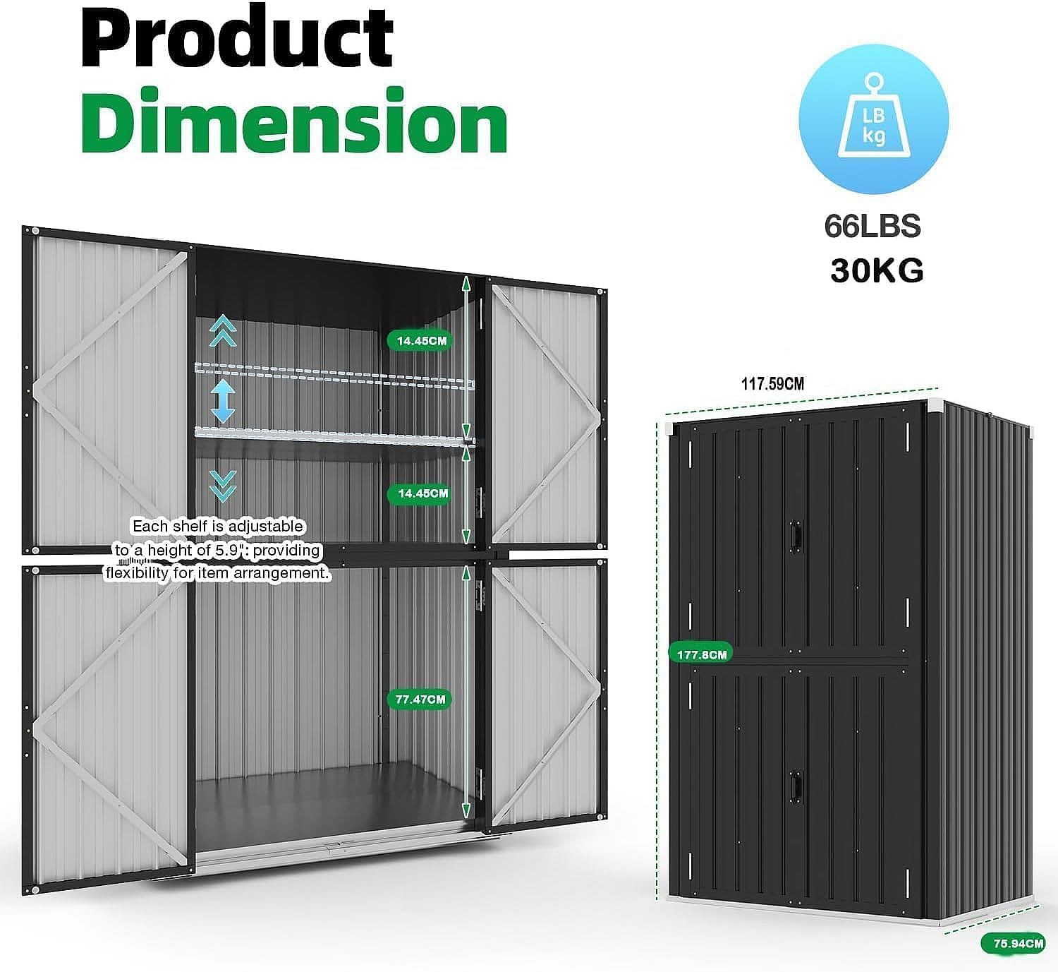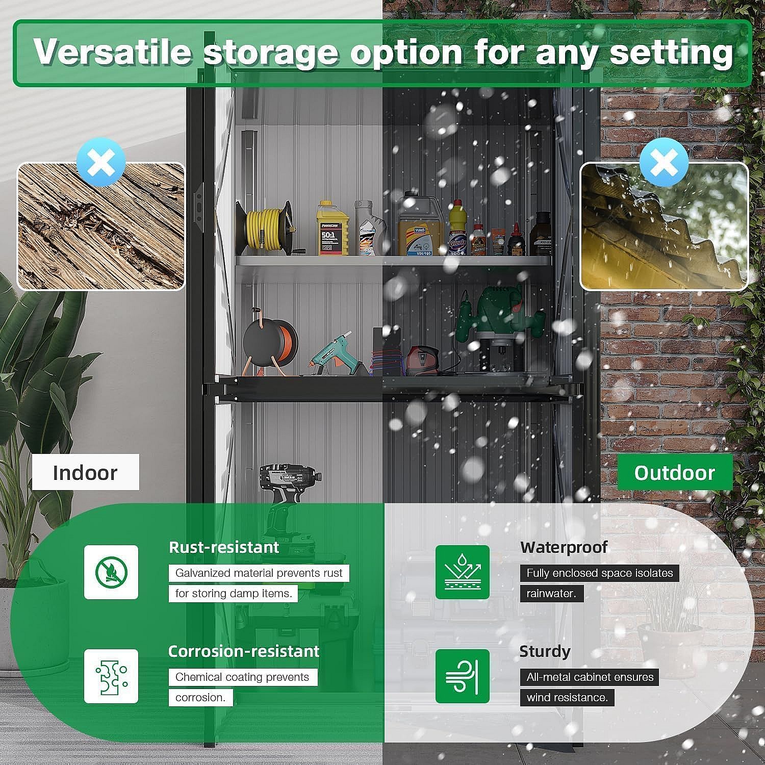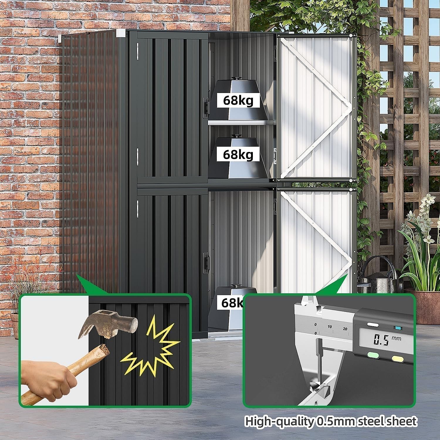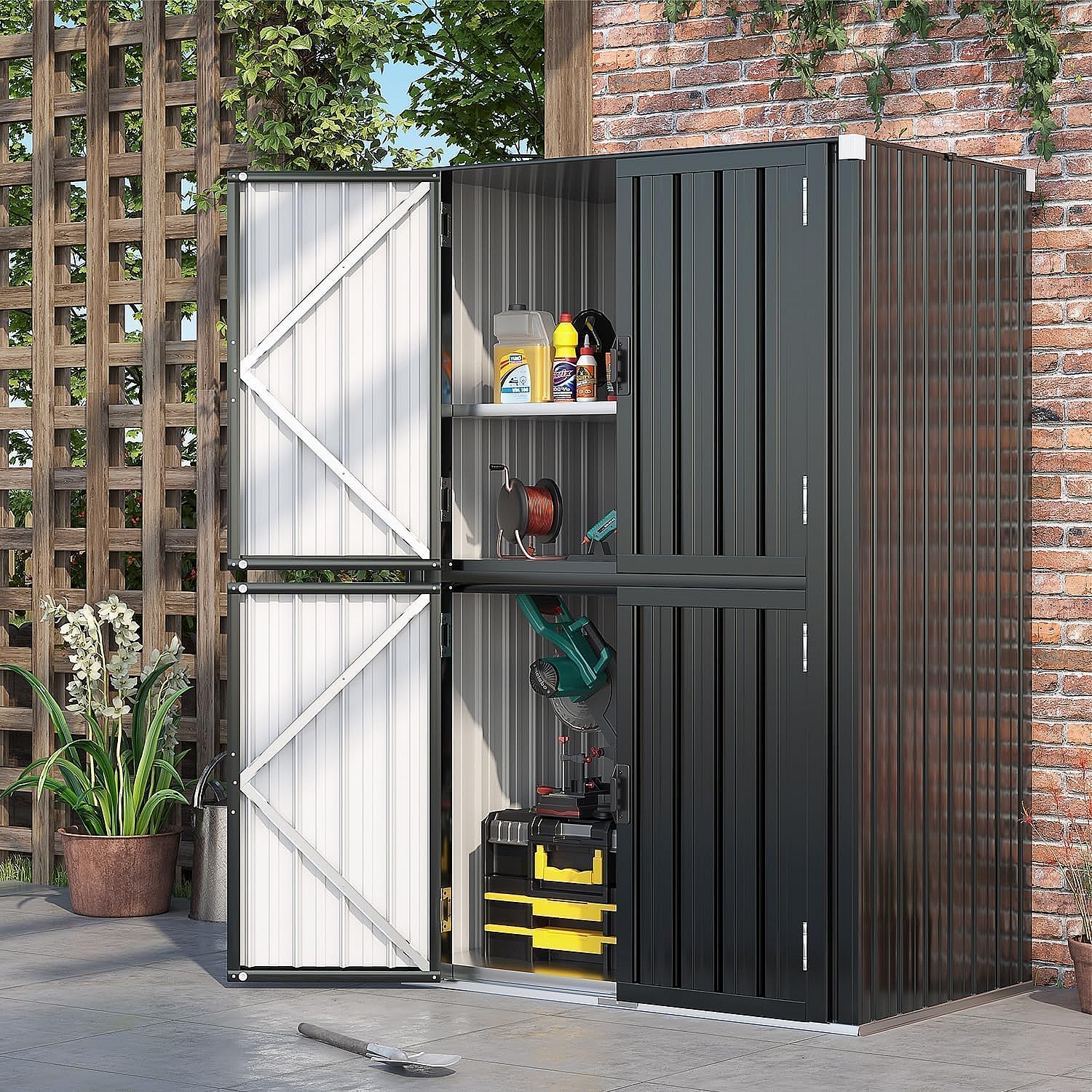 YODOLLA Gartenschrank mit verstellbaren Einlegeböden | Wetterfester Außenschrank | Metall-Garagenschrank| 118x76x178cm, Grau