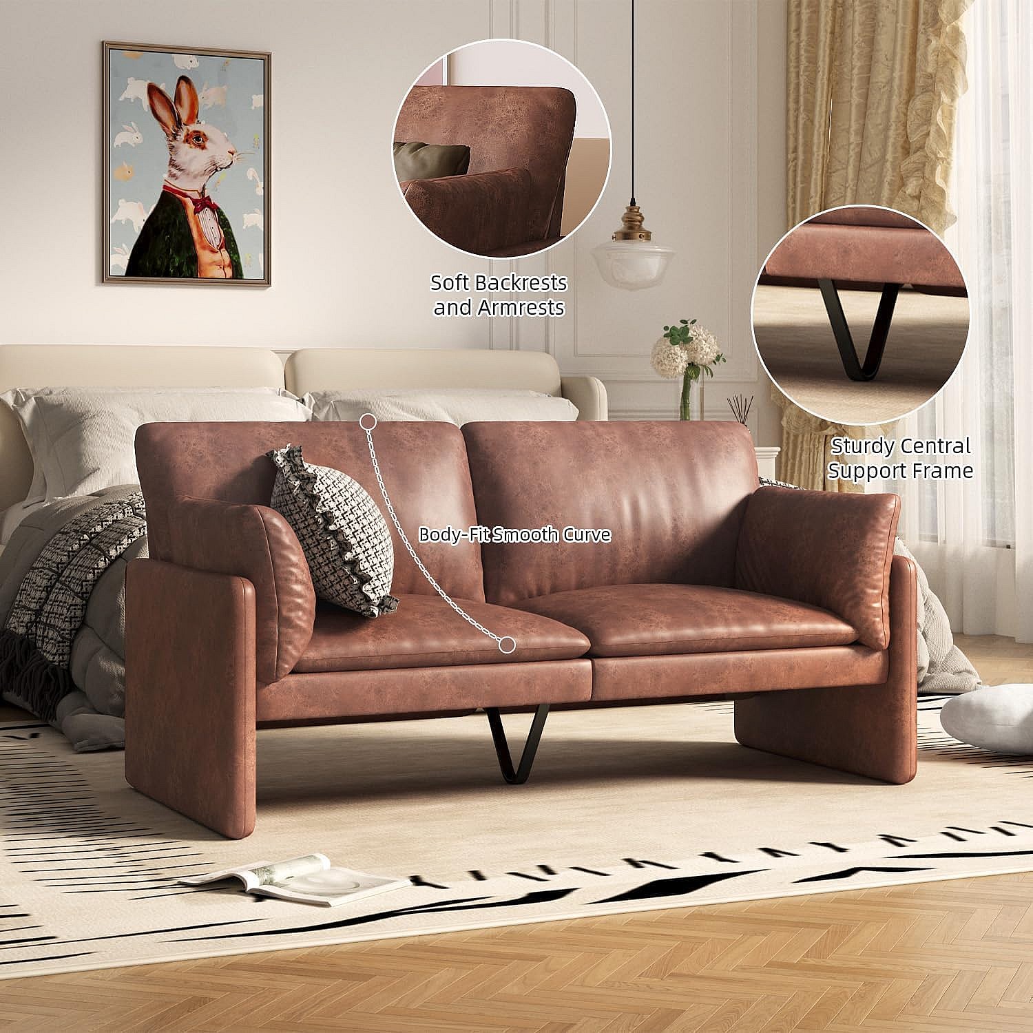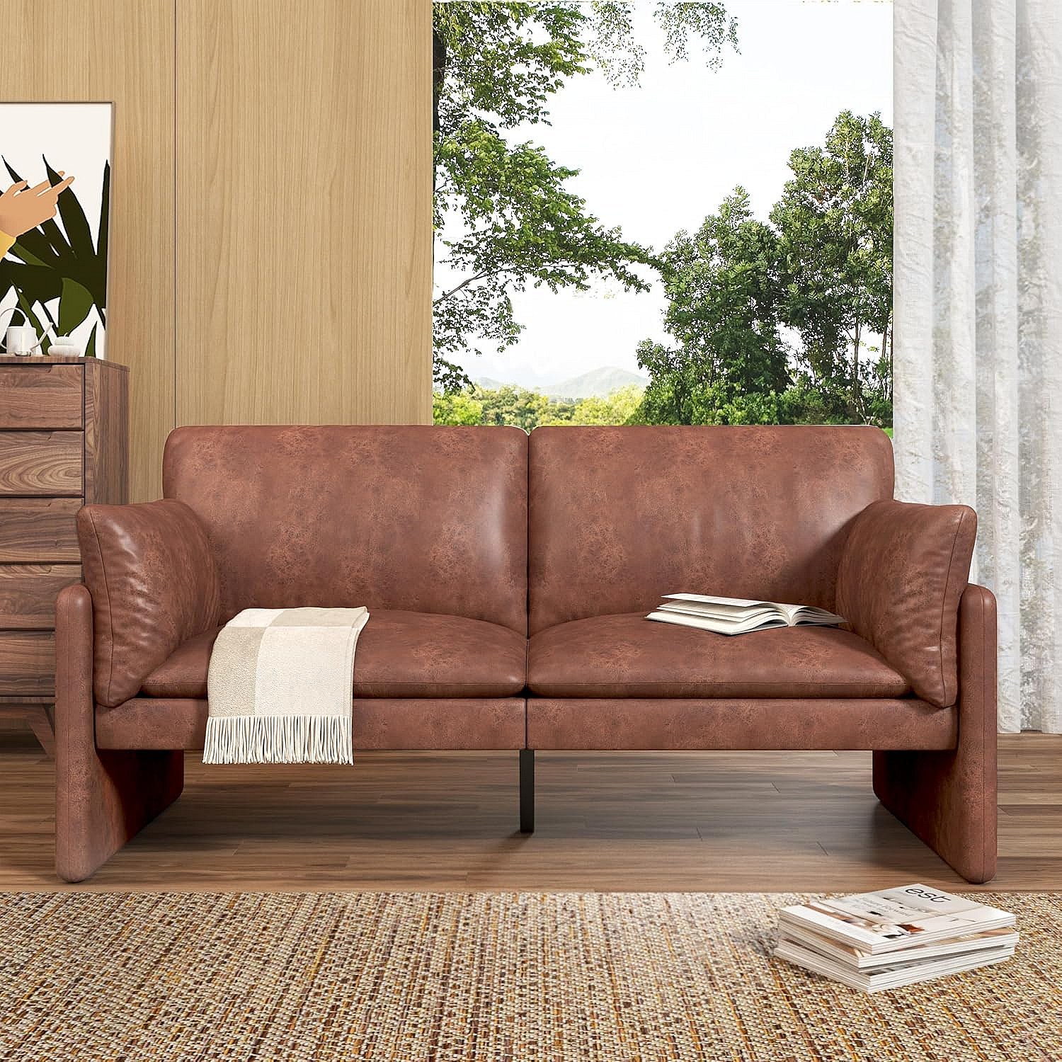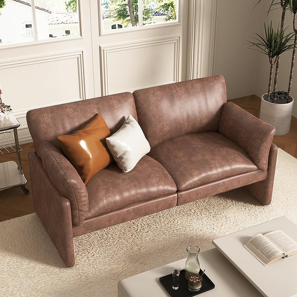 YODOLLA Ledersofa 172 cm, 3-Sitzer Couch modern & groß für Wohnzimmer. Ideal für Wohnung, Schlafzimmer oder Home-Office, Braun