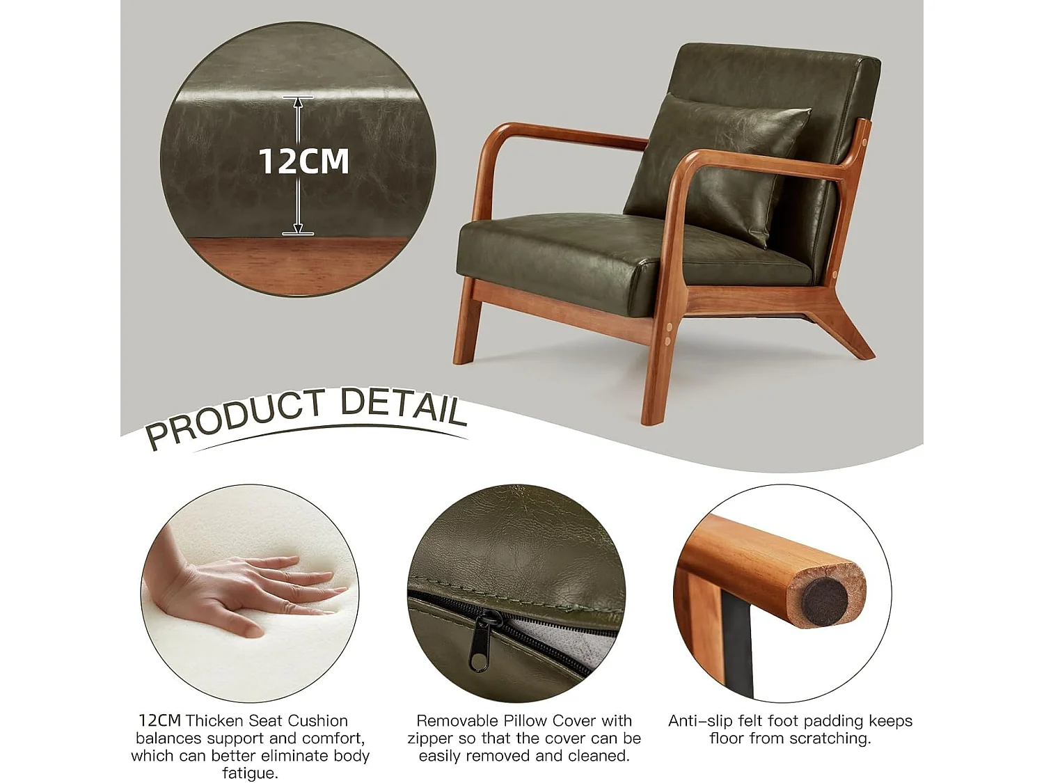 YODOLLA Loungesessel modern mit Kunstleder Bezug & Holzarmlehne, Akzent-/Cocktailsessel für Wohnzimmer, Grün, 75x70x65 cm (BxHxT)