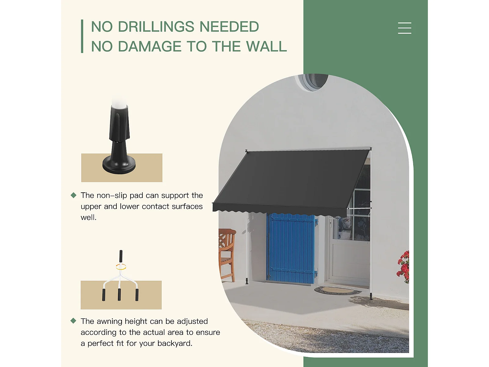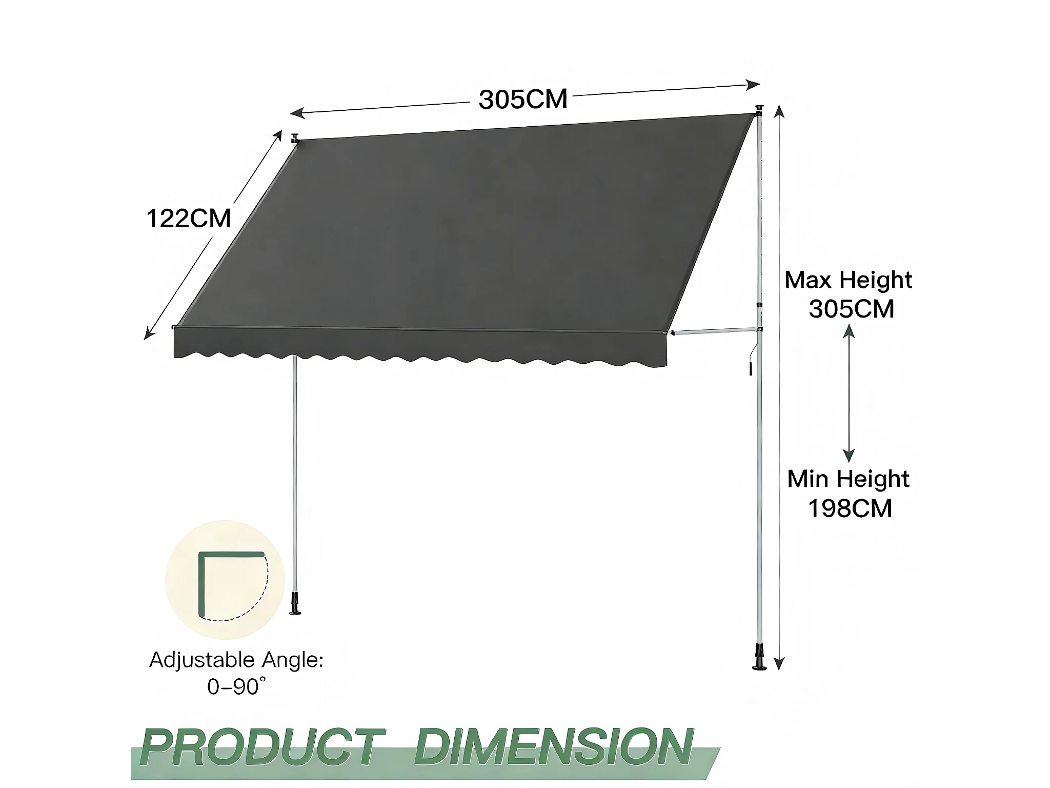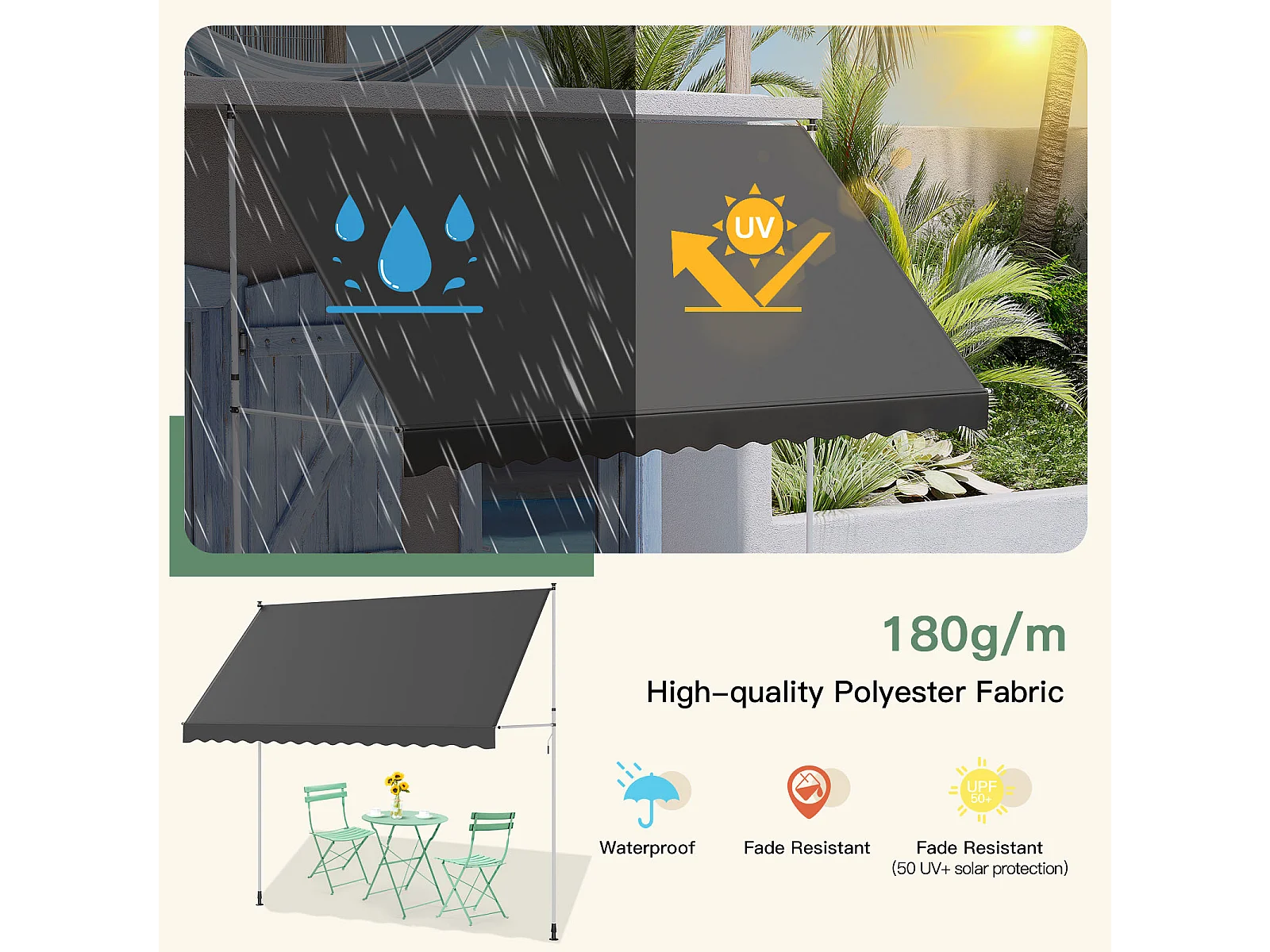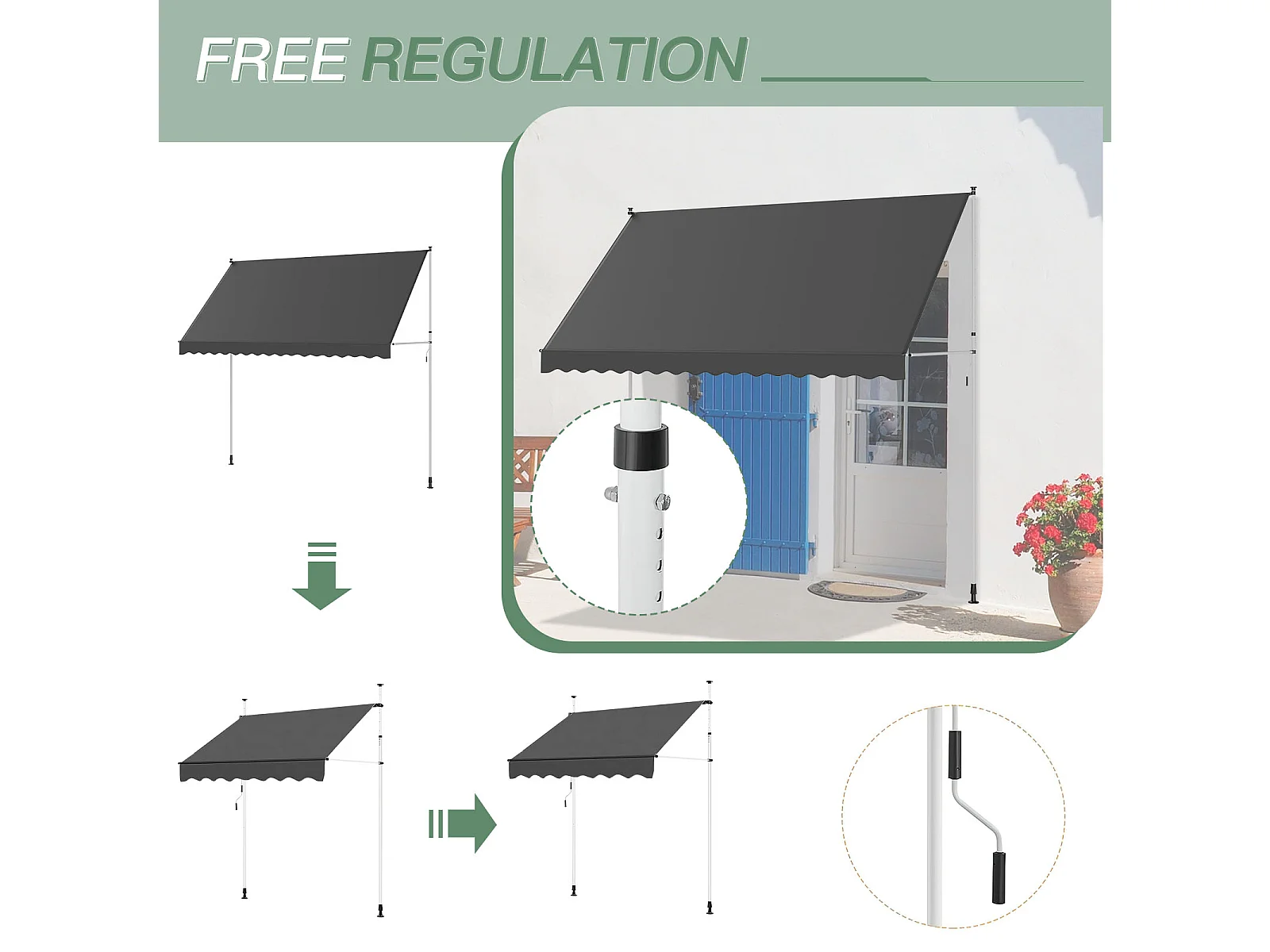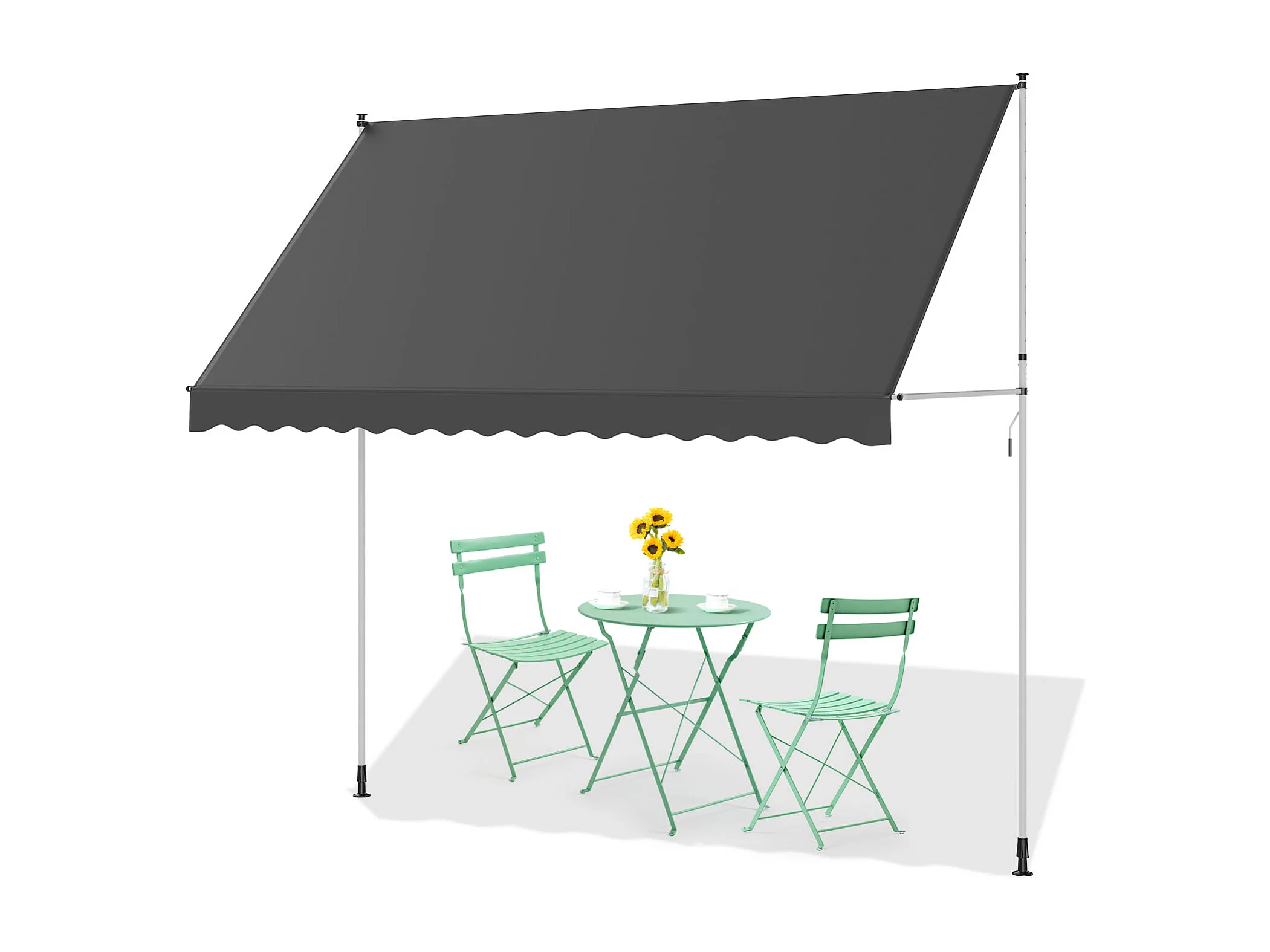 YODOLLA Manuelle Ausziehmarkise, Einstellbare Sonnenmarkise Mit UV-Schutz Für Terrasse, Fenster Oder Tür, 3 X 3 M, Grau