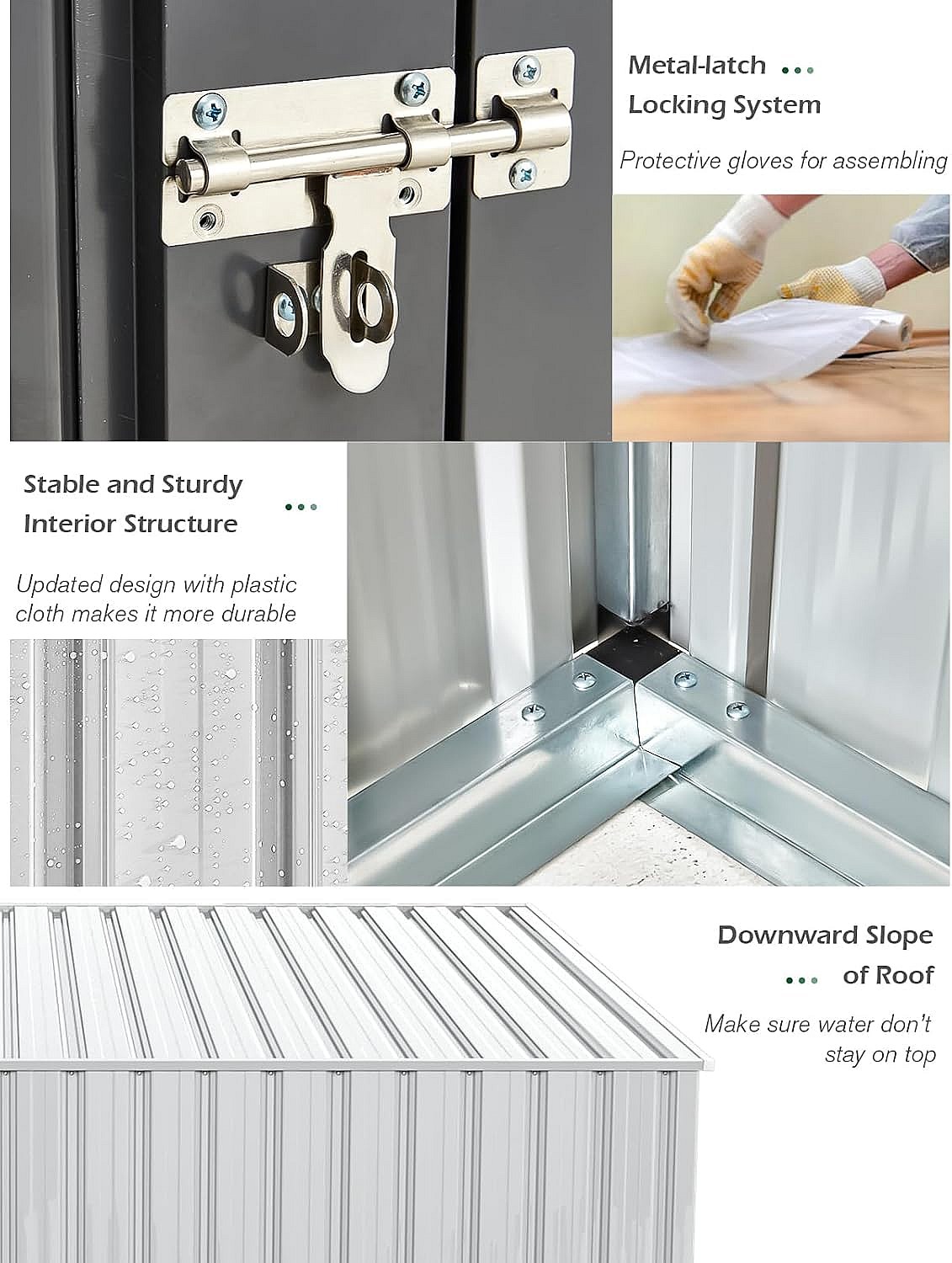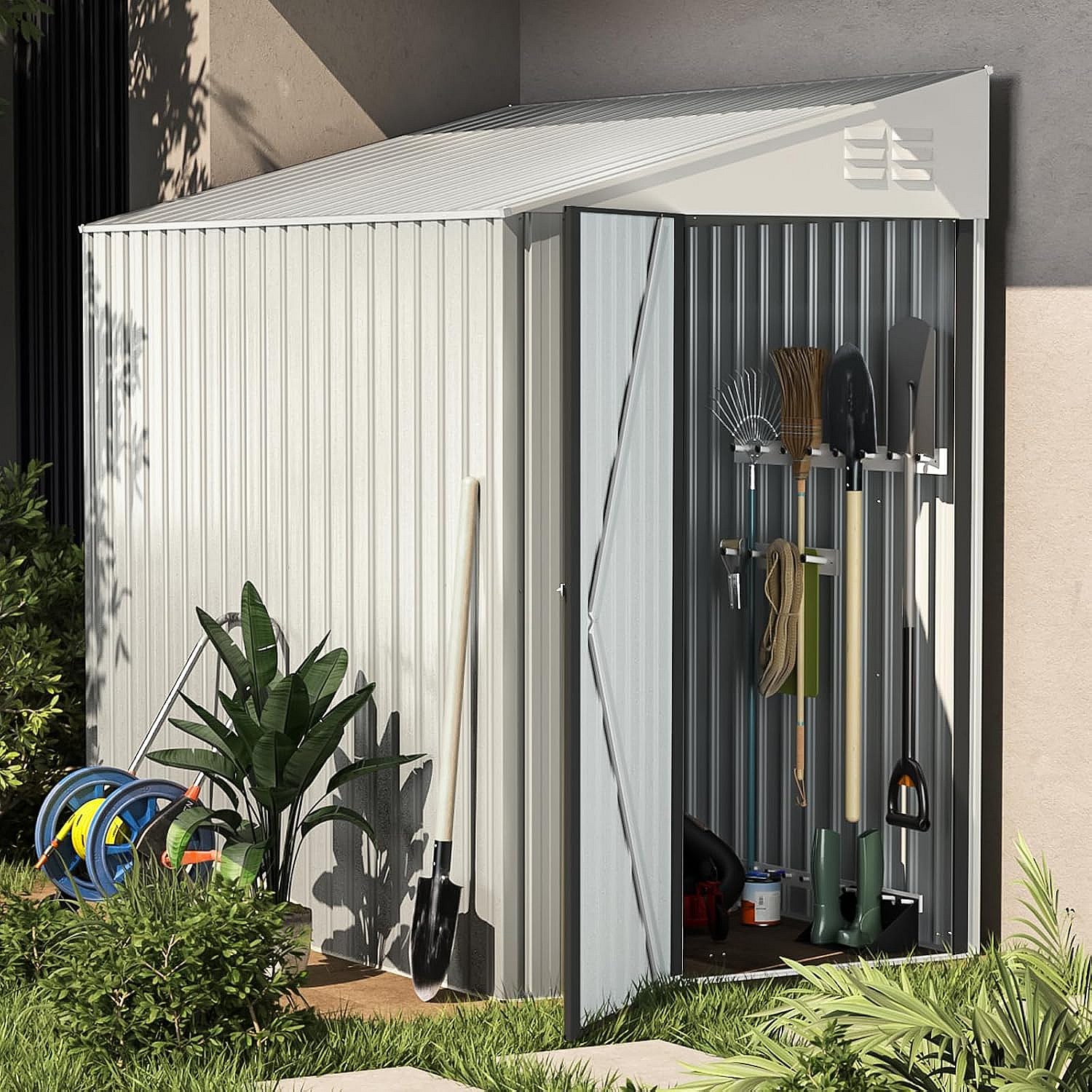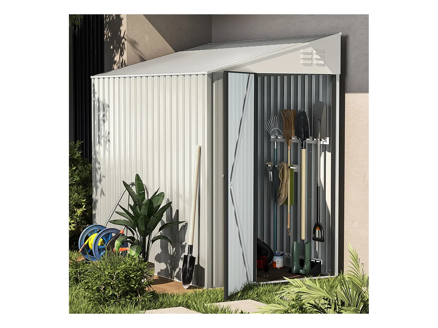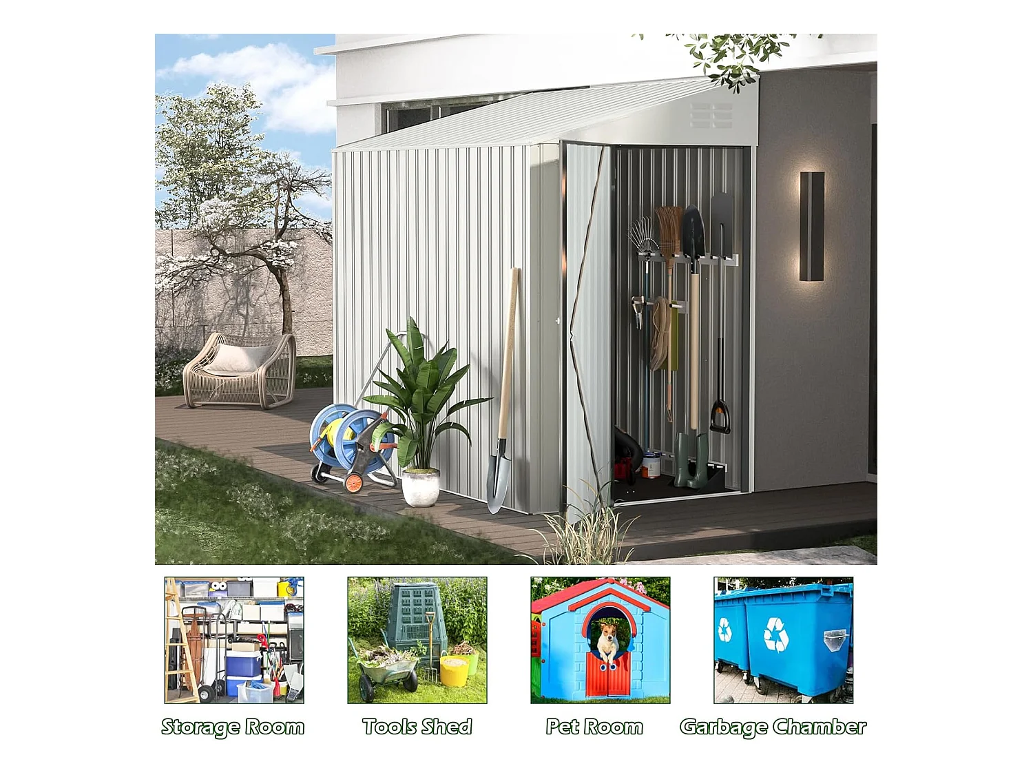 YODOLLA Metall-Anlehnschuppen,214x129x203cm Leicht aufzubauender mit schrägem Dach, Metall Gerätehaus für Außenlagerung,Wandanschluss-Schuppen für Garten,Weiß