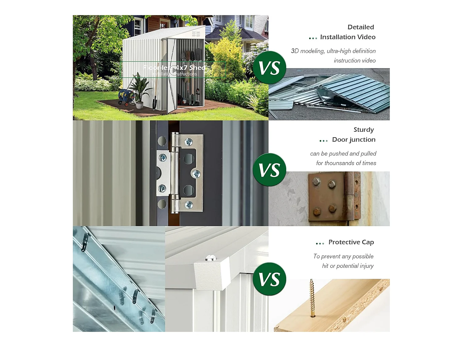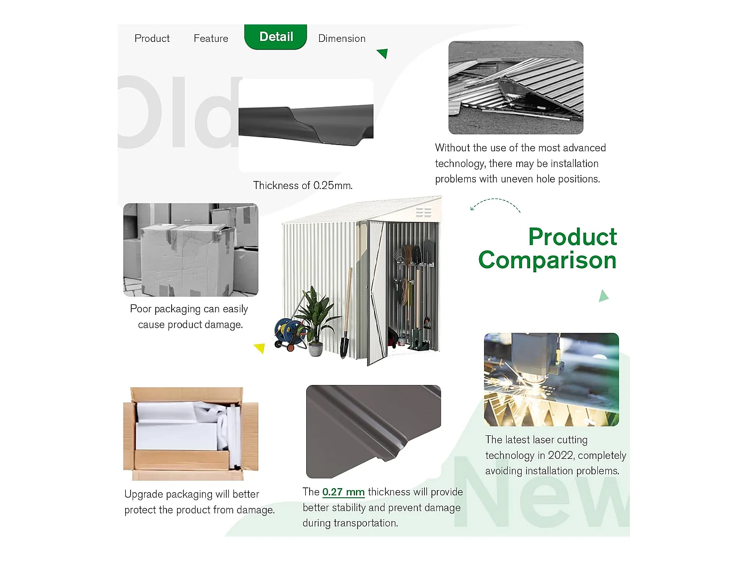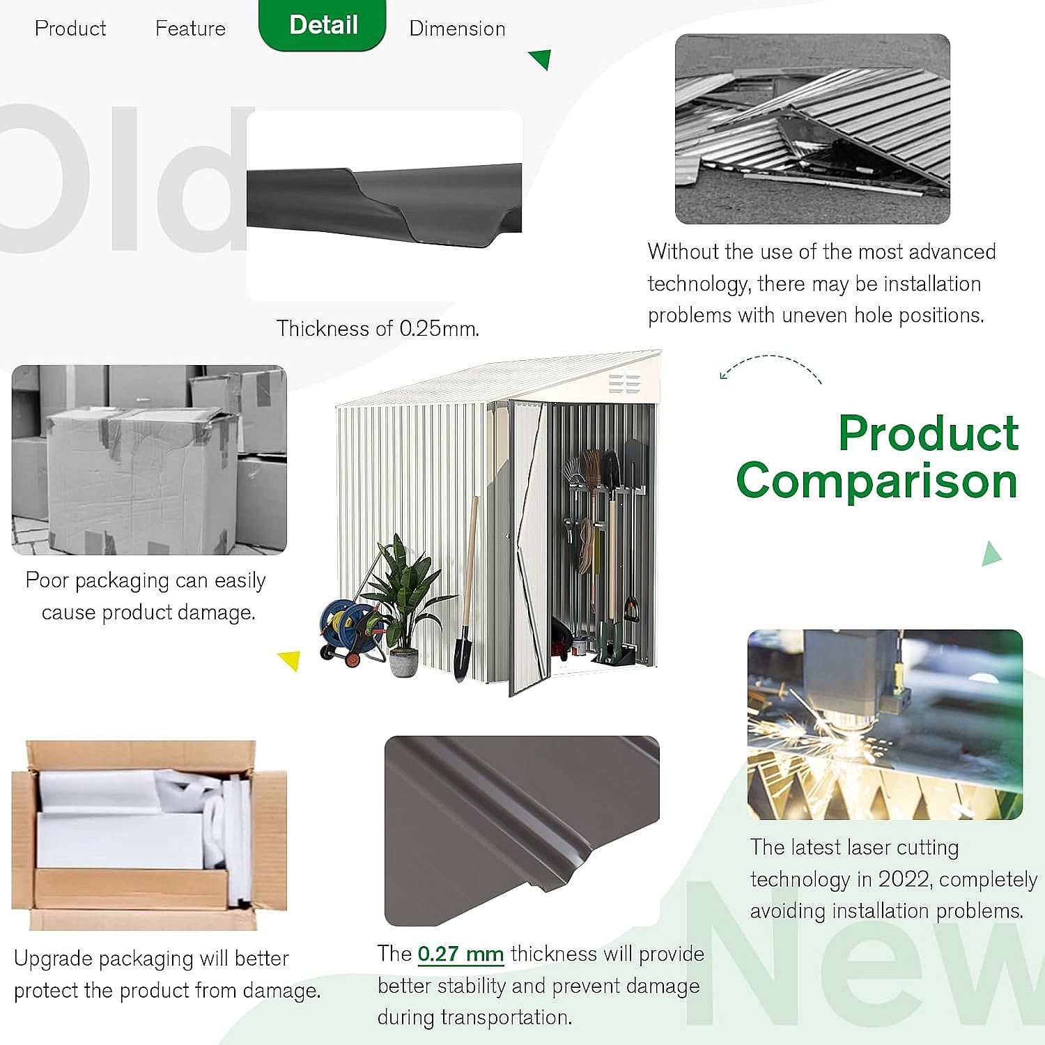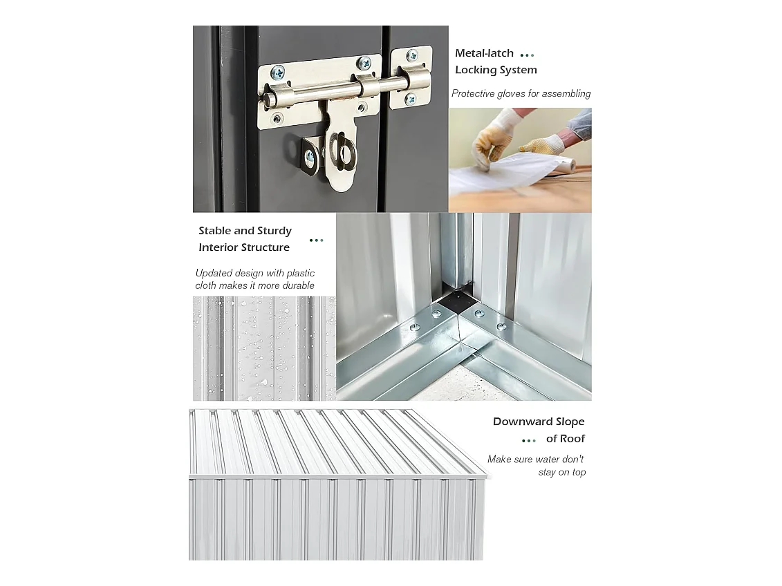 YODOLLA Metall-Anlehnschuppen,214x129x203cm Leicht aufzubauender mit schrägem Dach, Metall Gerätehaus für Außenlagerung,Wandanschluss-Schuppen für Garten,Weiß