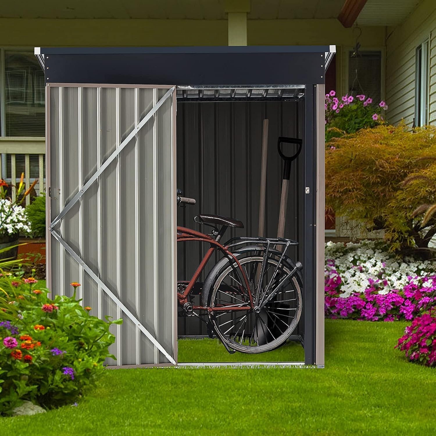 YODOLLA Metall Gerätehaus, 170x95x184cm Geräteschuppen mit abschließbarer Tür, Gebrauchs- und Werkzeugaufbewahrung für Garten, Außenbereich, Terrasse, Grau