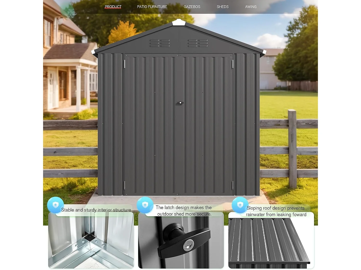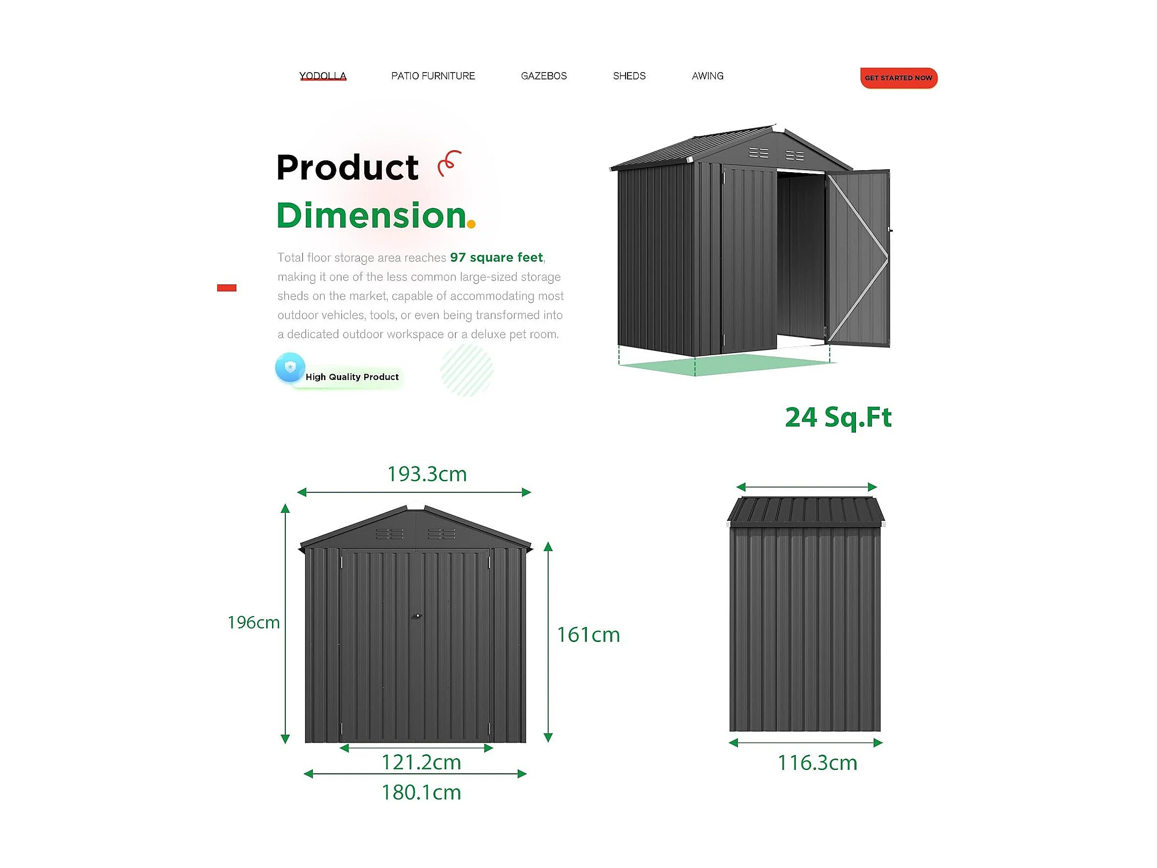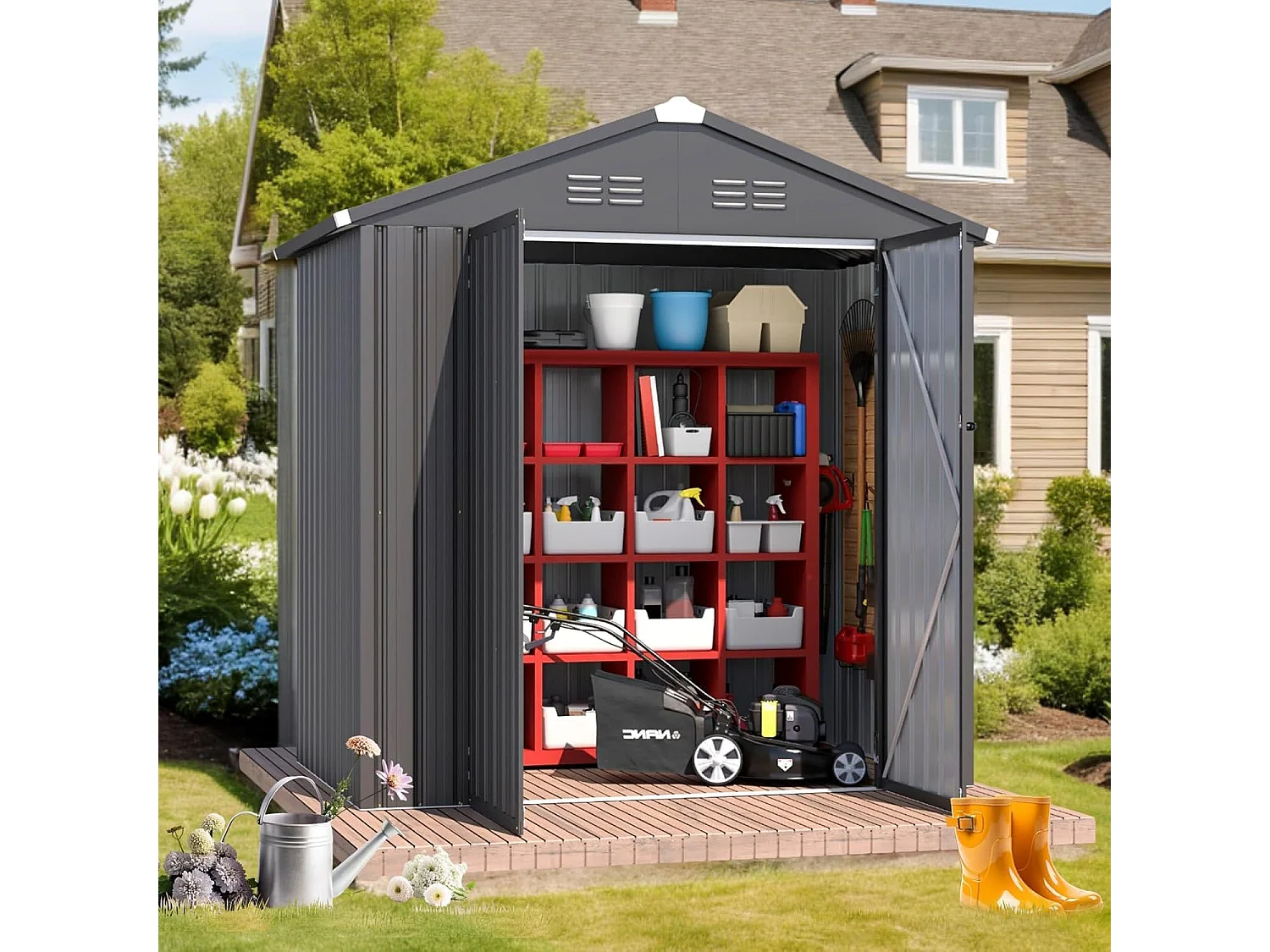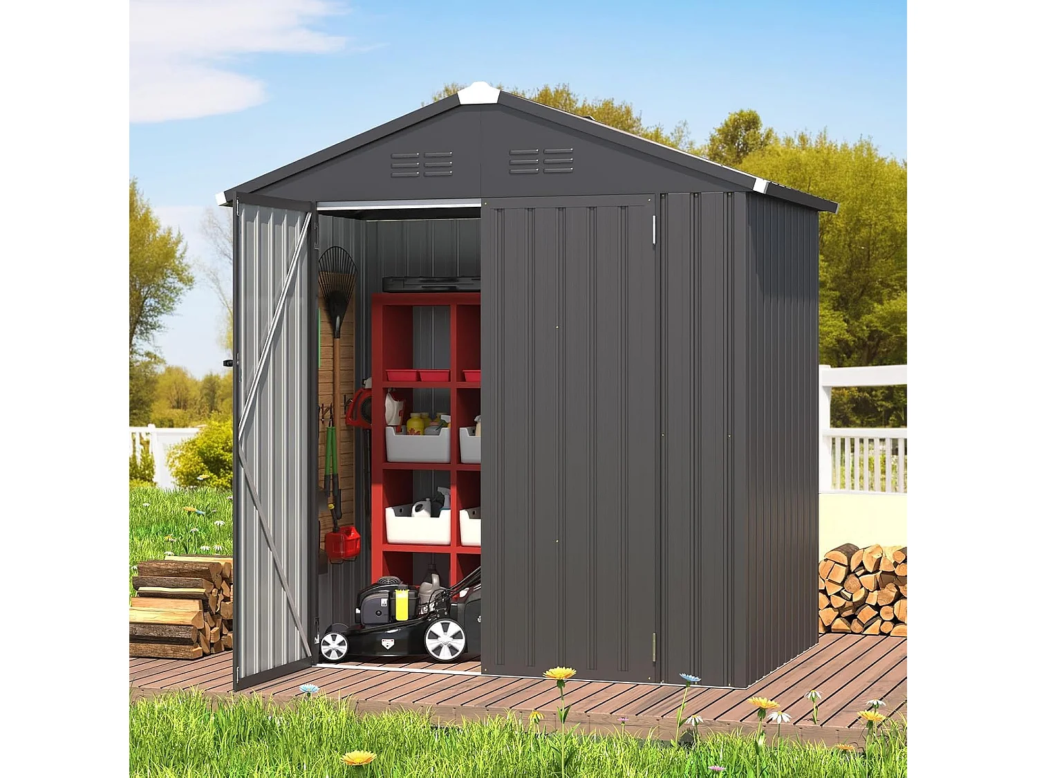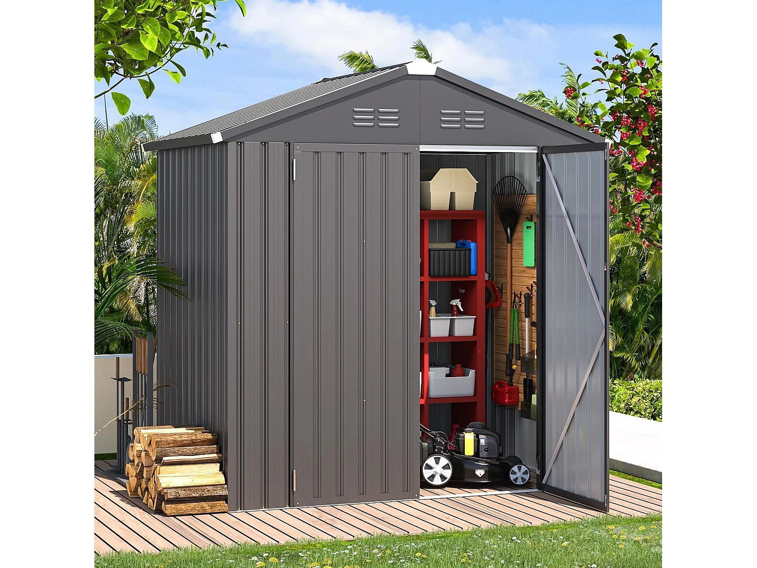 YODOLLA Metall Gerätehaus mit Satteldach,193x116x 96cm Geräteschuppen Garten Schuppen mit Lüftungsschlitzen für Fahrrad,Werkzeug,Rasenmäher,Dunkelgrau