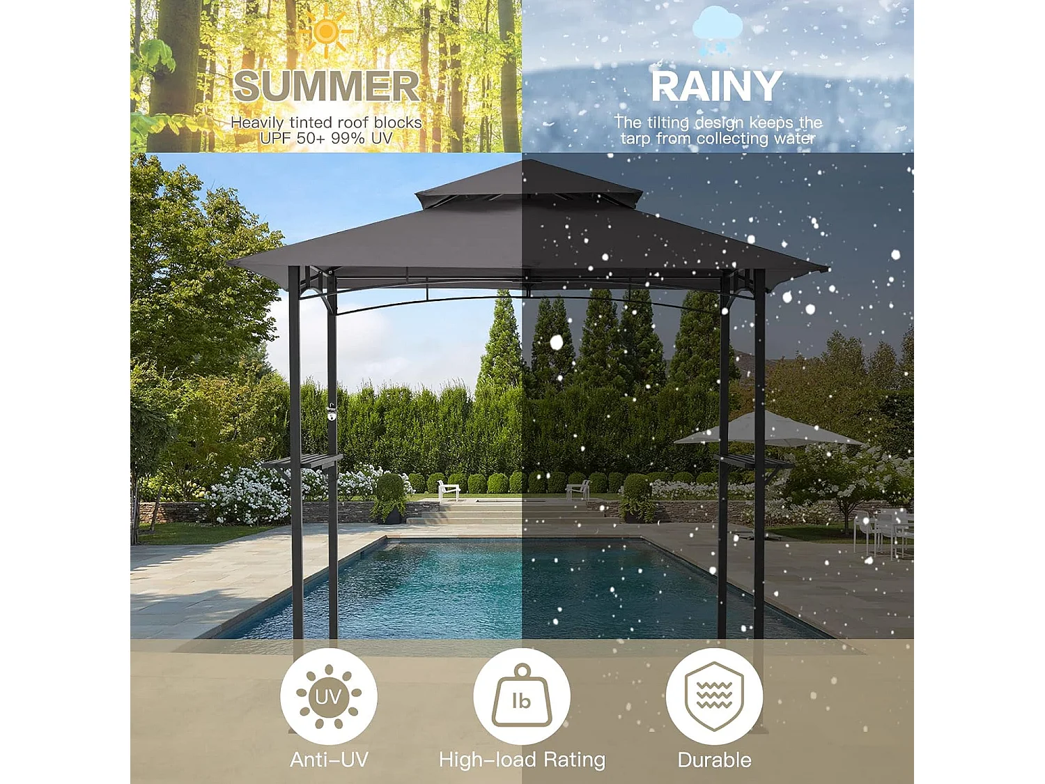 YODOLLA Metall-Grillpavillon für Außengarten - 2,4 x 1,5 m - Grau