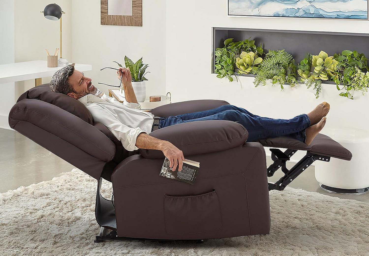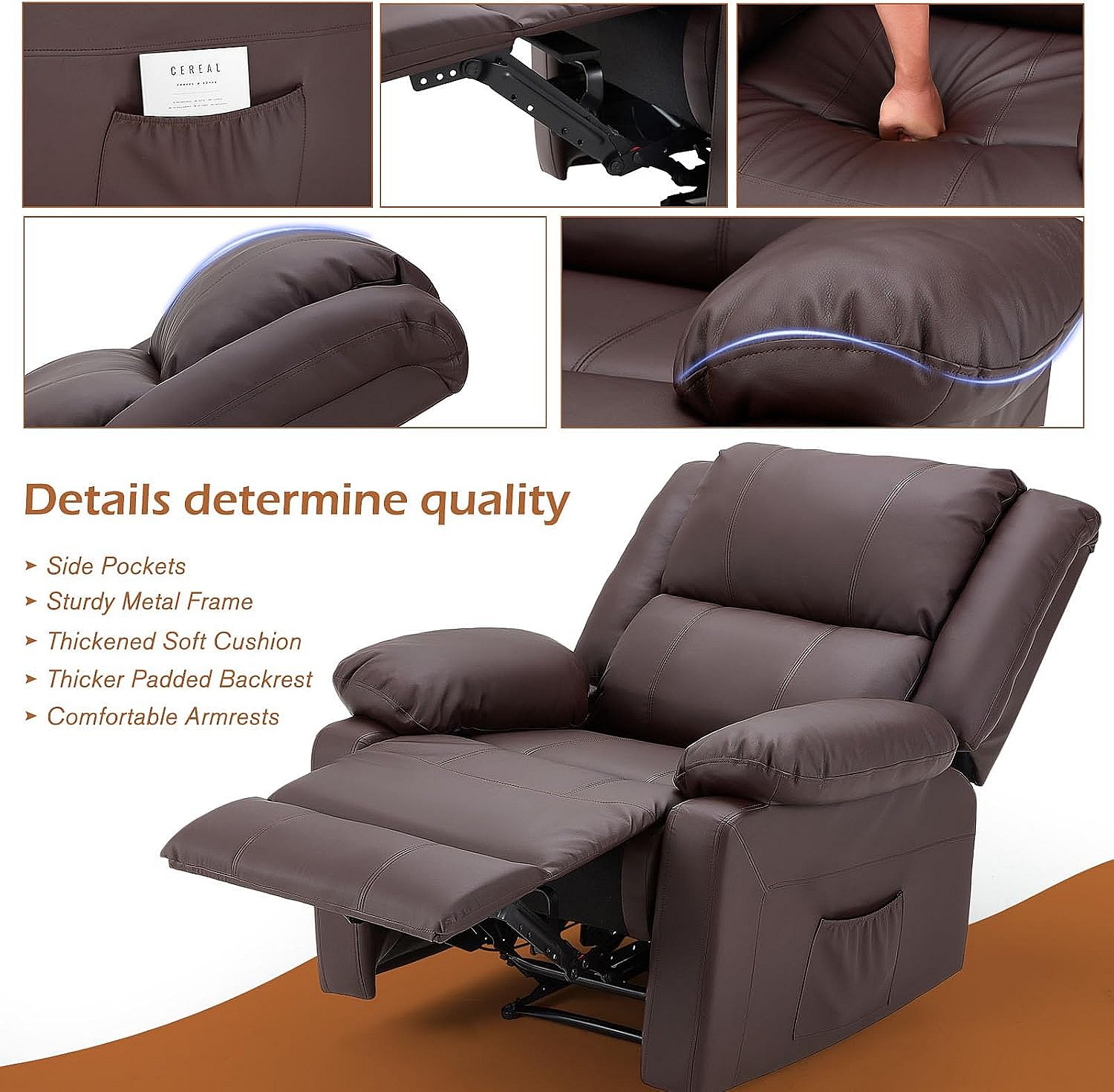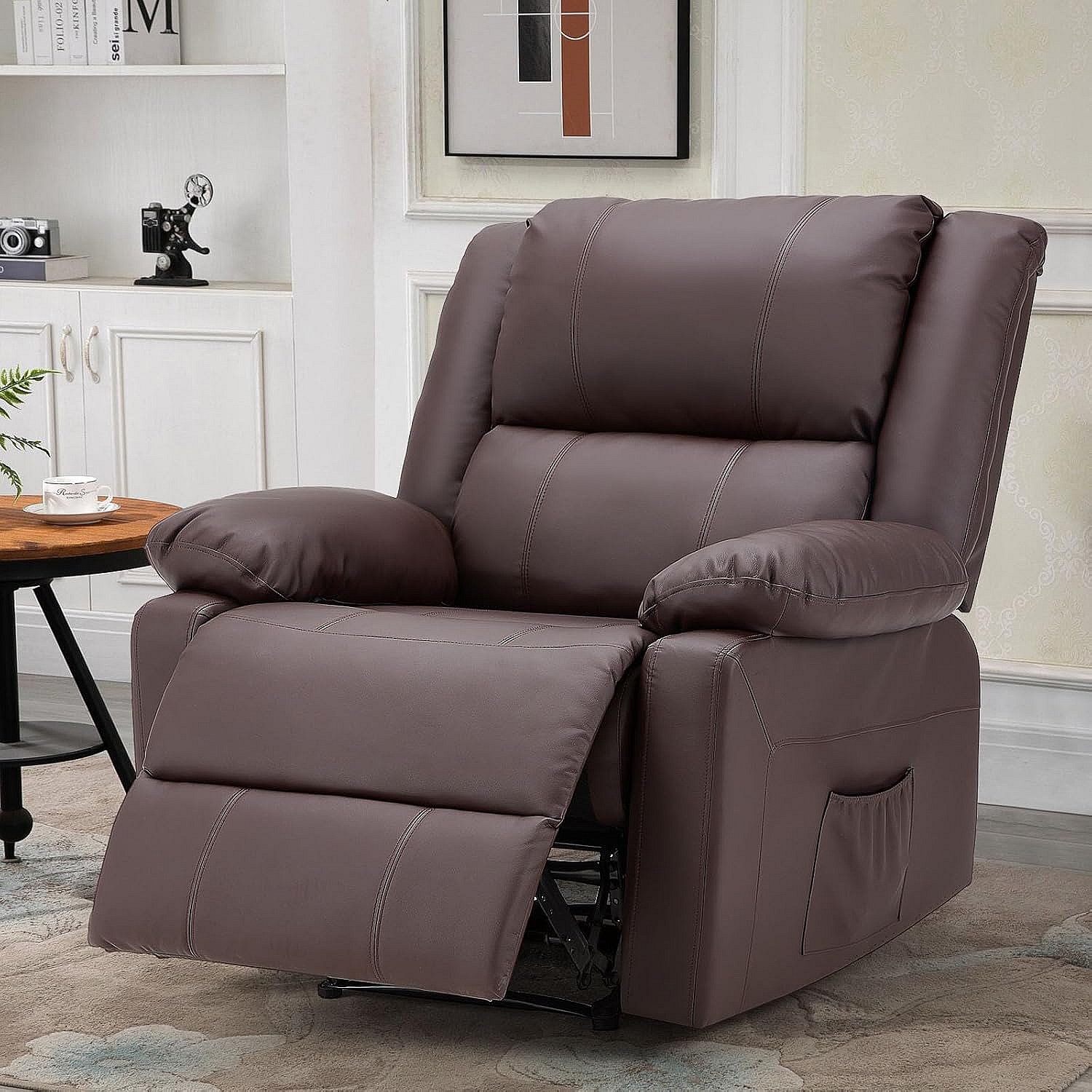 YODOLLA Relaxsessel mit Liegefunktion, ergonomischer Fernsehsessel bis 150kg belastbar, aus Kunstleder mit manueller Steuerung, Seitentaschen & Fußteil, Braun