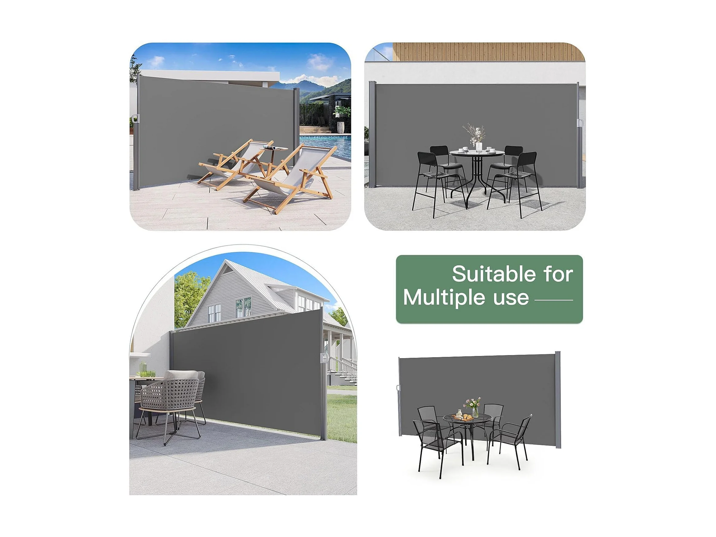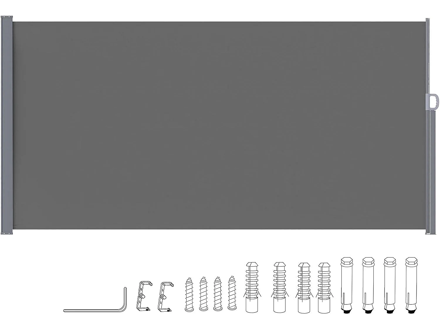 YODOLLA Seitenmarkise 350x180 cm, ausziehbarer Sichtschutz Sonnenschutz für Garten Balkon Terrasse, wasserdicht faltbar, Dunkelgrau
