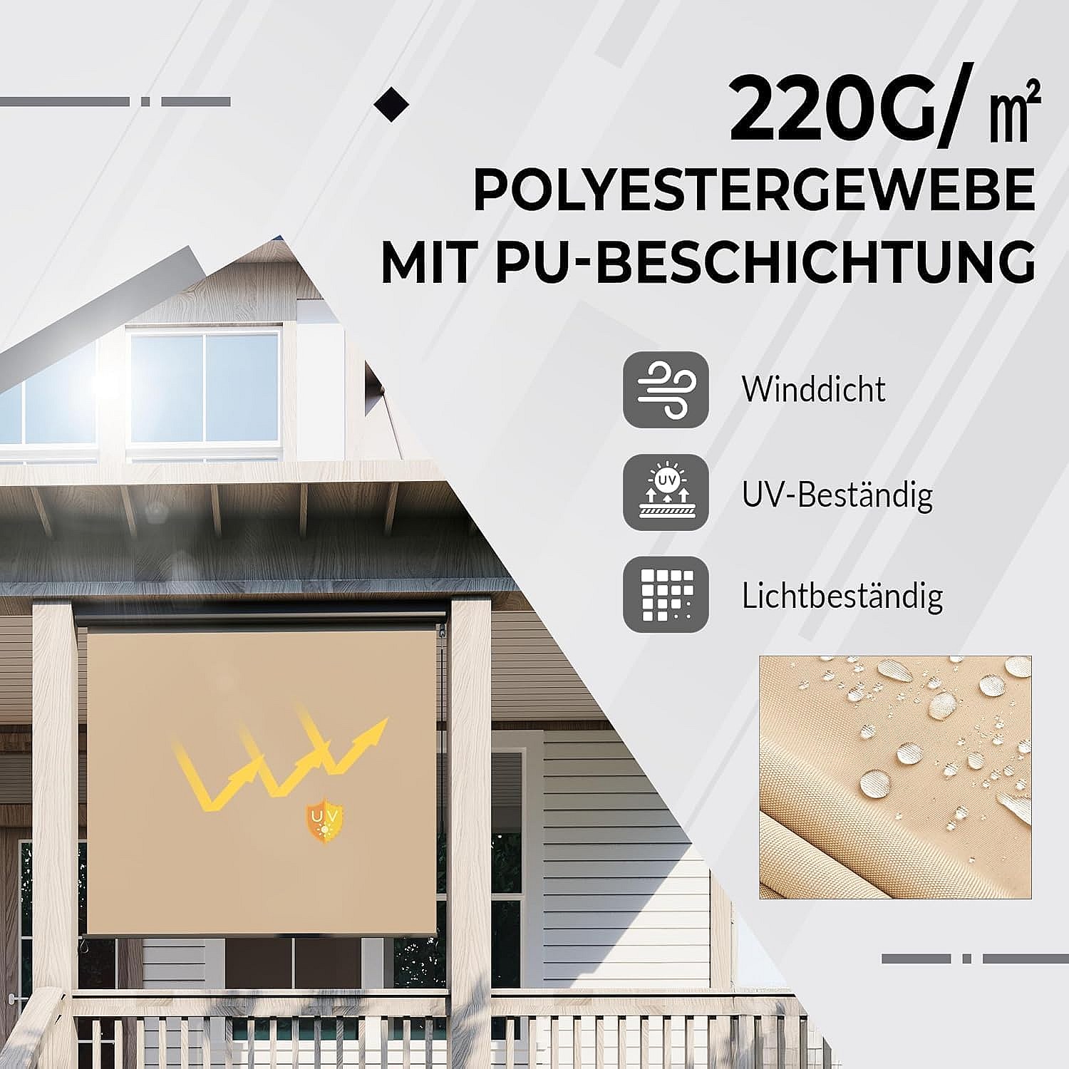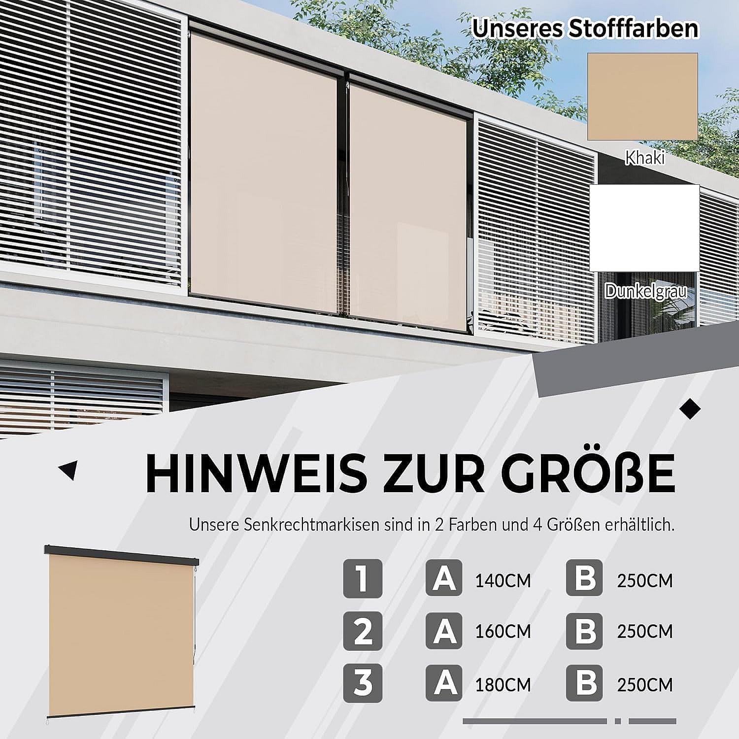 YODOLLA Senkrechtmarkise 140x250cm, ausziehbare Vertikalmarkise mit Handkurbel, Sonnenschutz wetterbeständig für Garten und Balkon, Beige