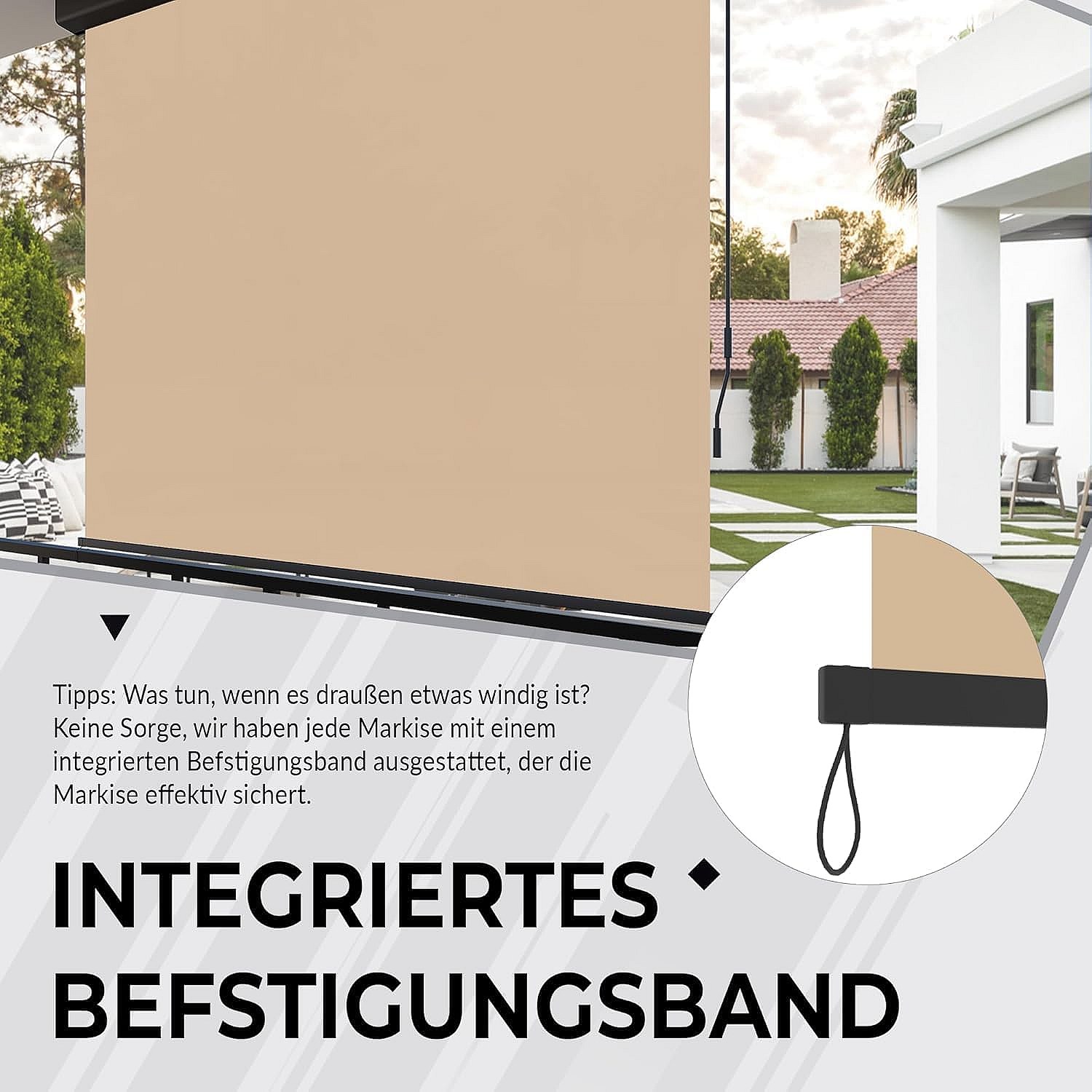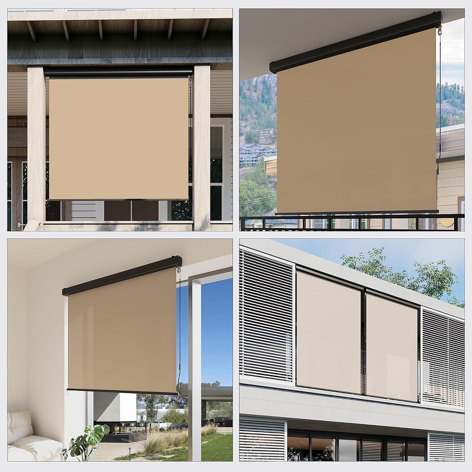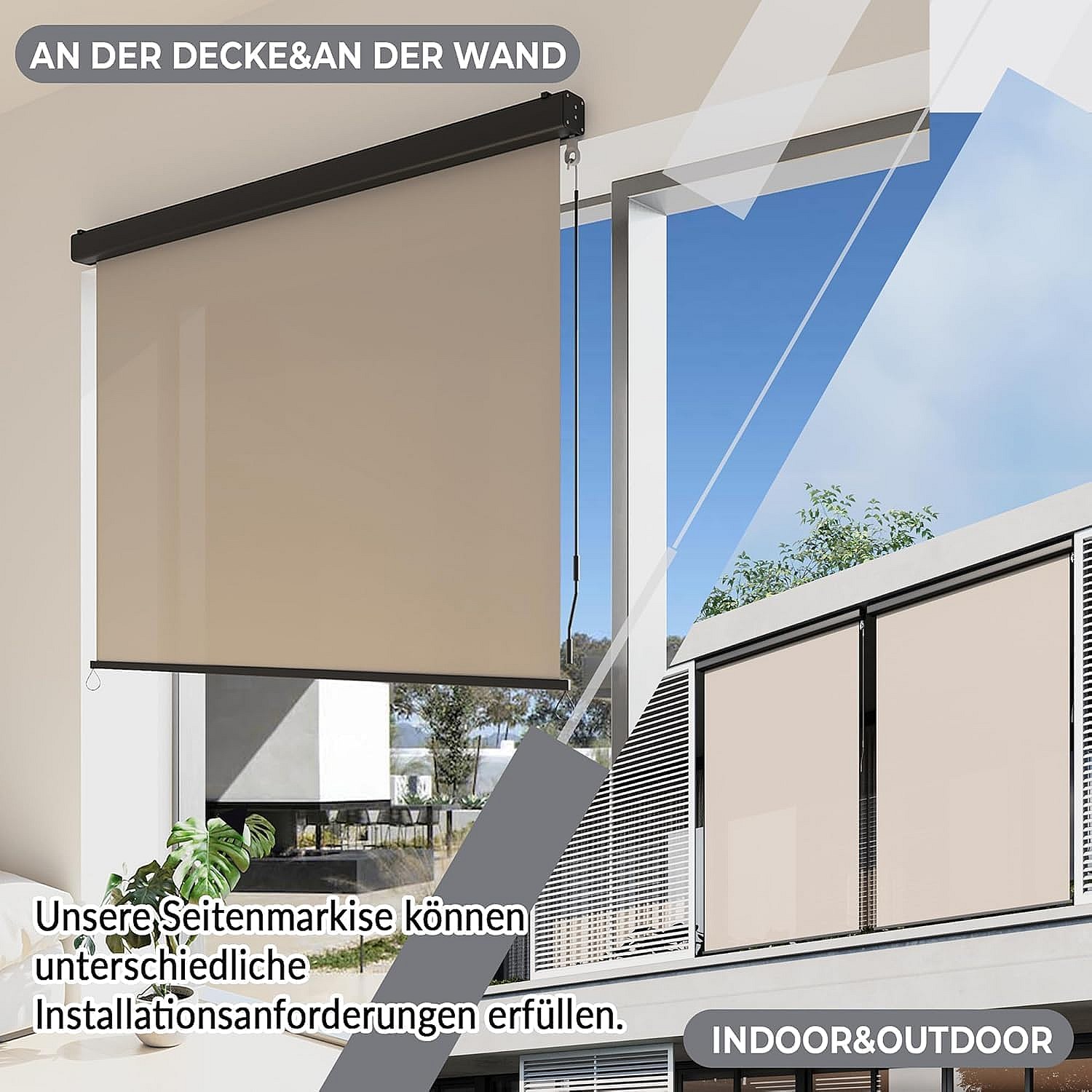 YODOLLA Senkrechtmarkise 160x250cm Ausziehbare Vertikalmarkise an Wand/Decke, Sonnenschutz Wetterbeständig Markise mit Handkurbel für Garten, Beige