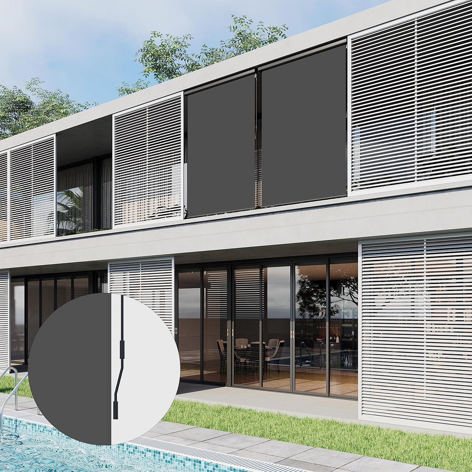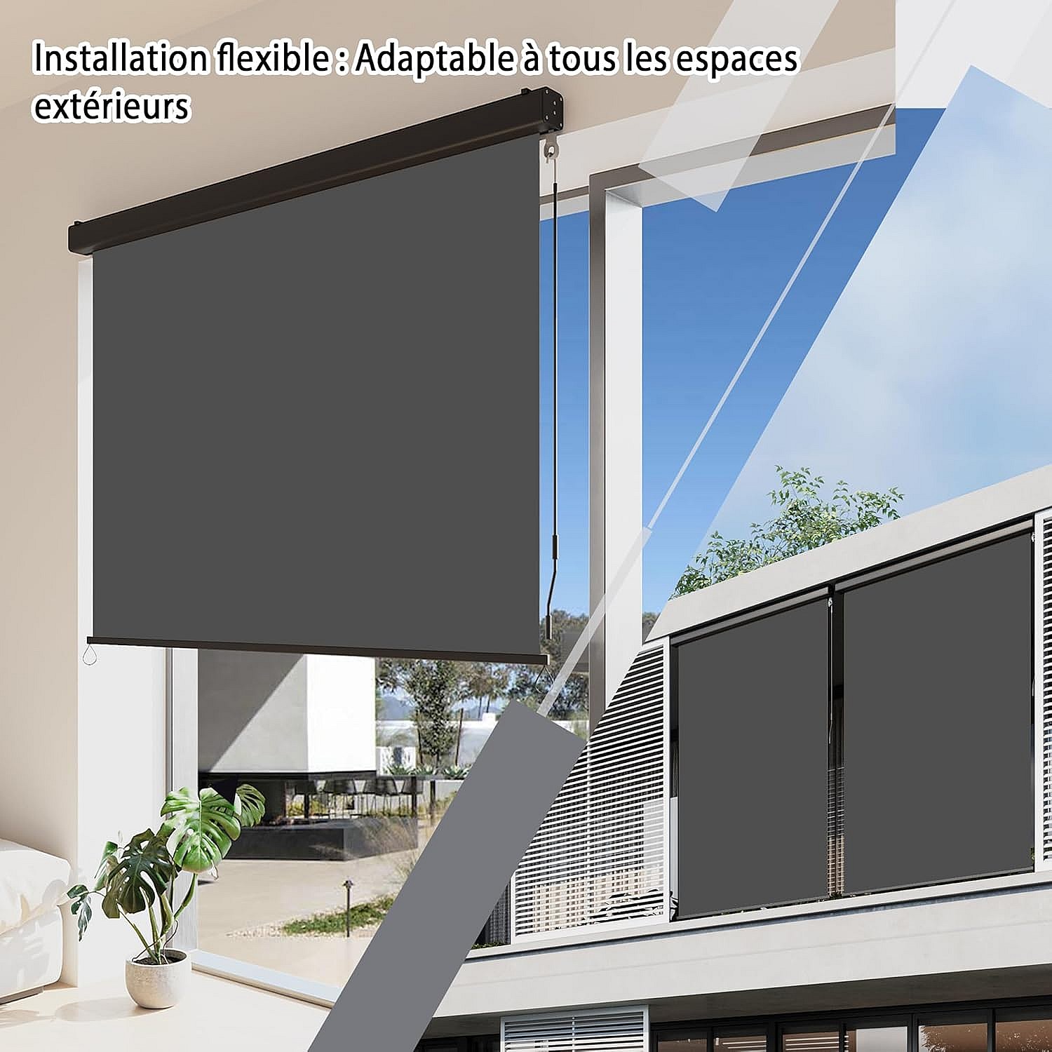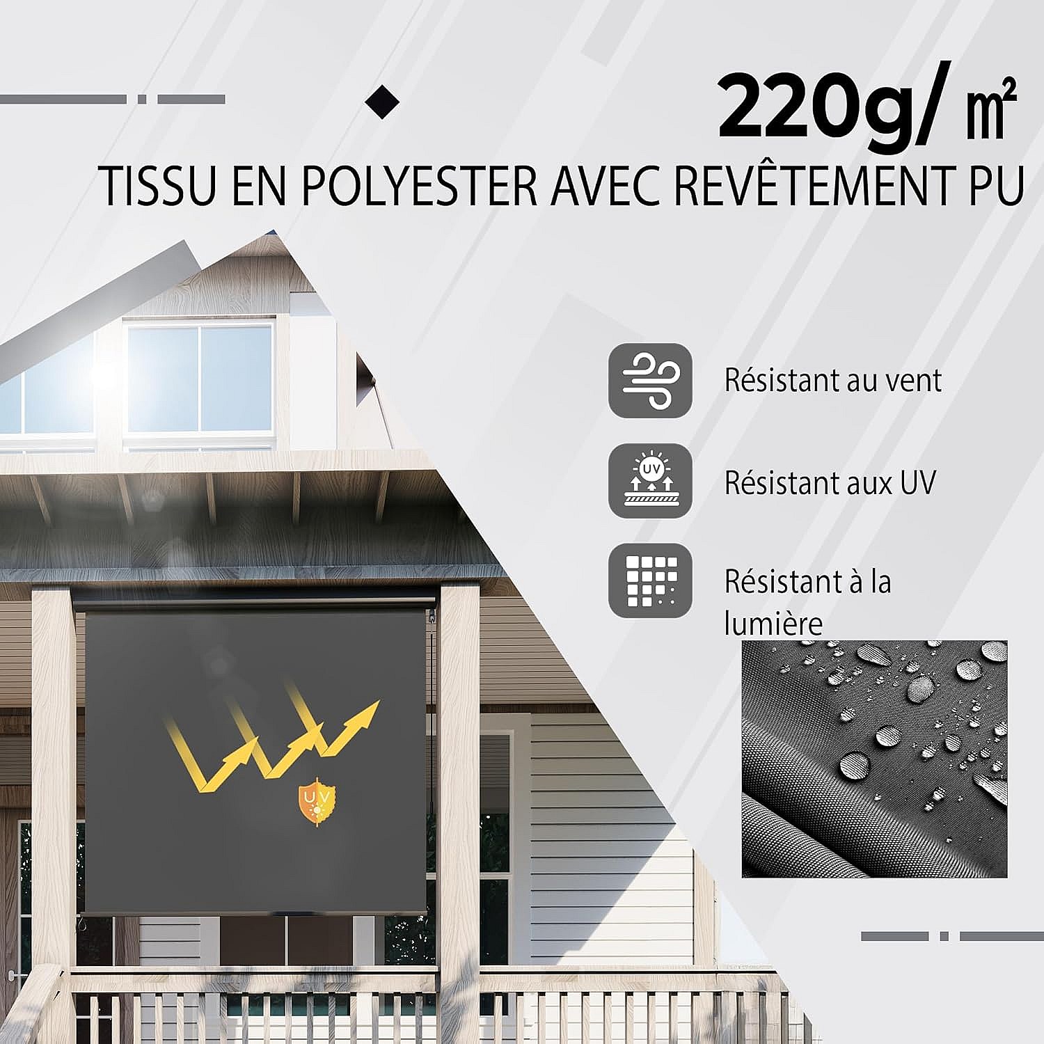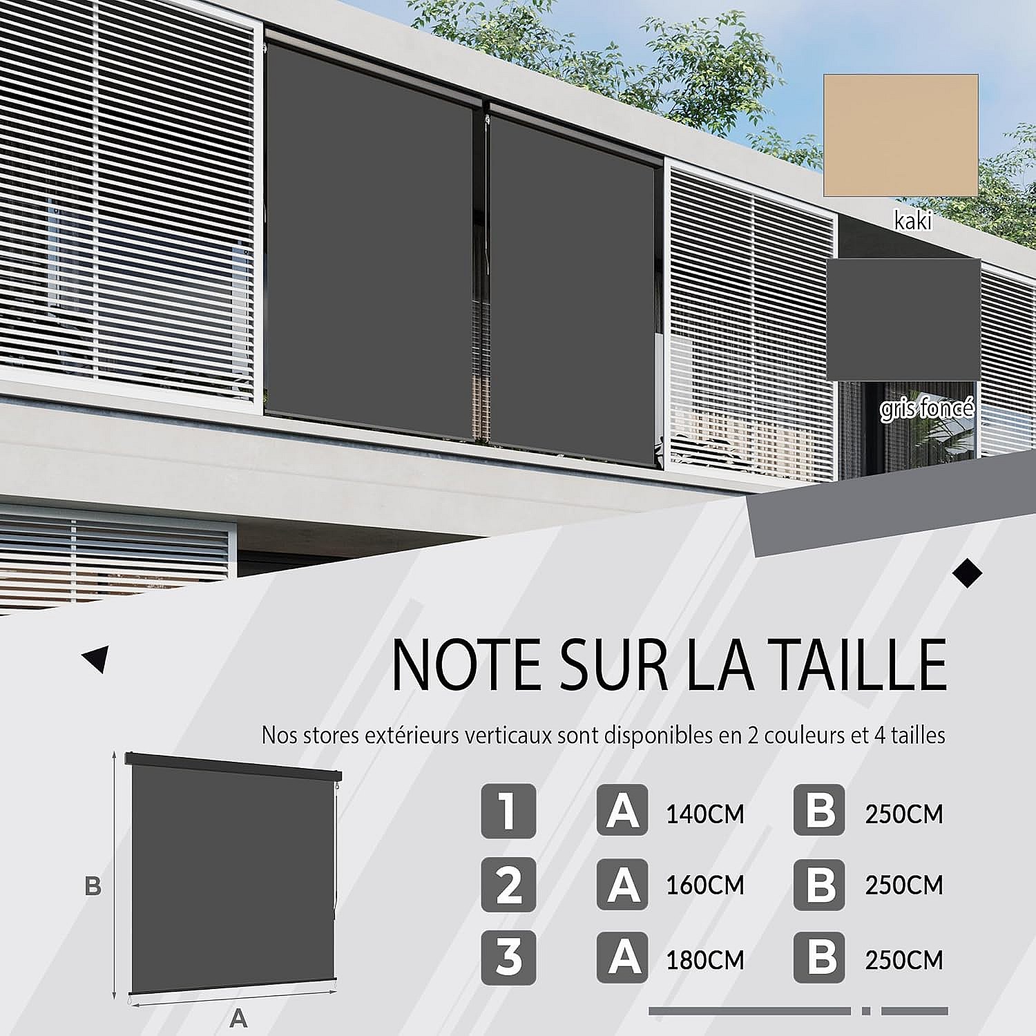 YODOLLA Store Vertical, Rétractable avec Coffre, Occultant Exterieur Fenetre, Auvent rétractable 160x250cm, pour Balcon, Terrasse, Jardin, Gris foncé