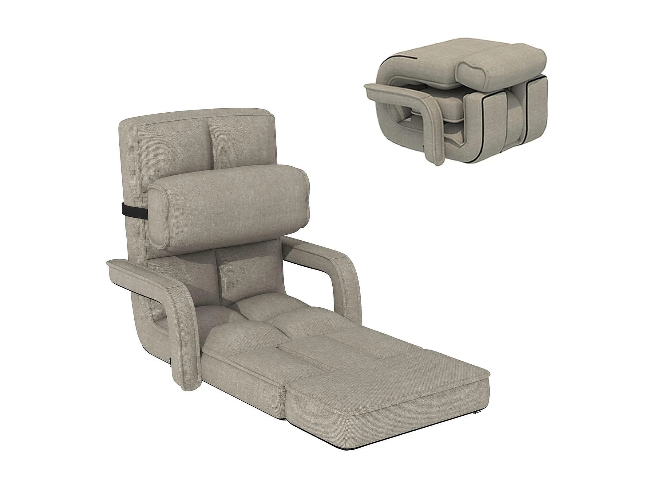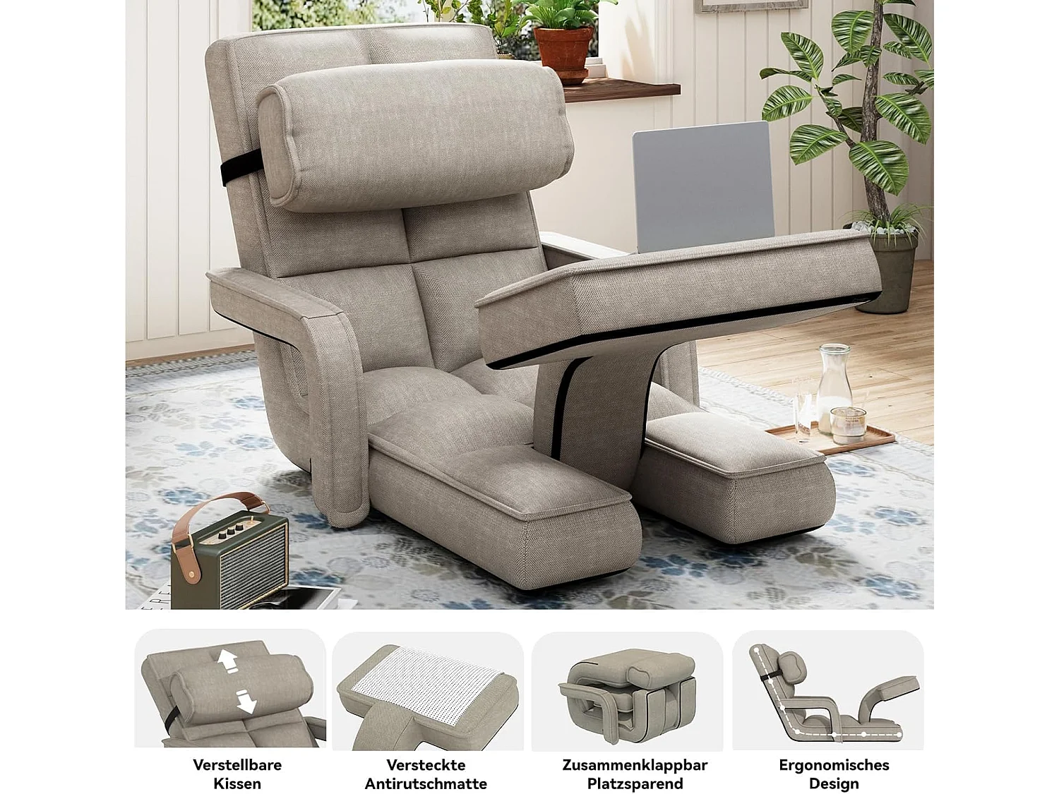 YODOLLA Verstellbarer Bodenstuhl mit Armlehnen, zusammenklappbar mit Kissen & Fußstütze für Schlafzimmer, Büro und Zuhause, Beige