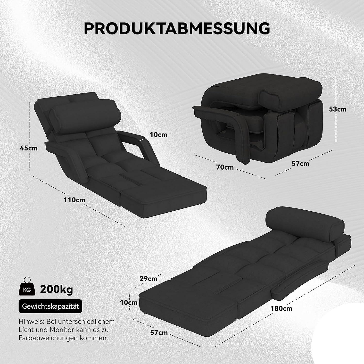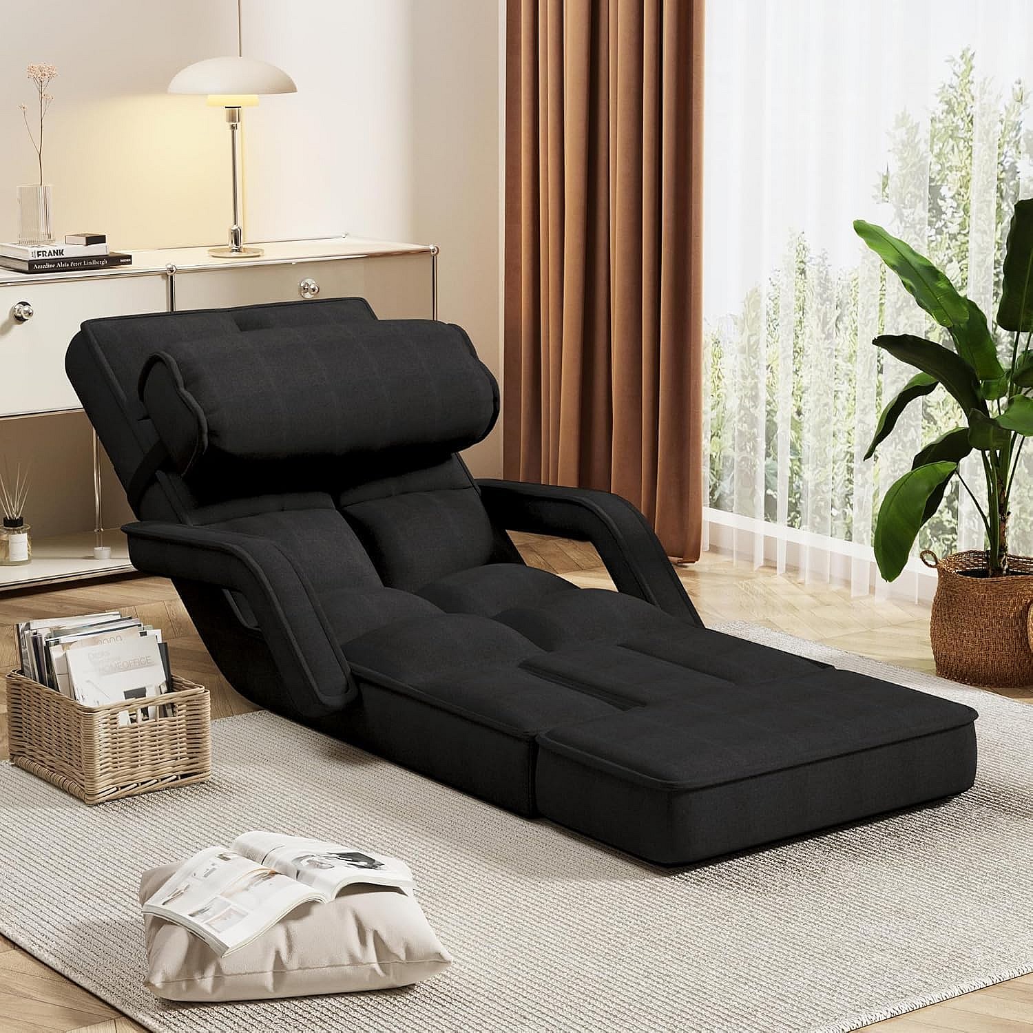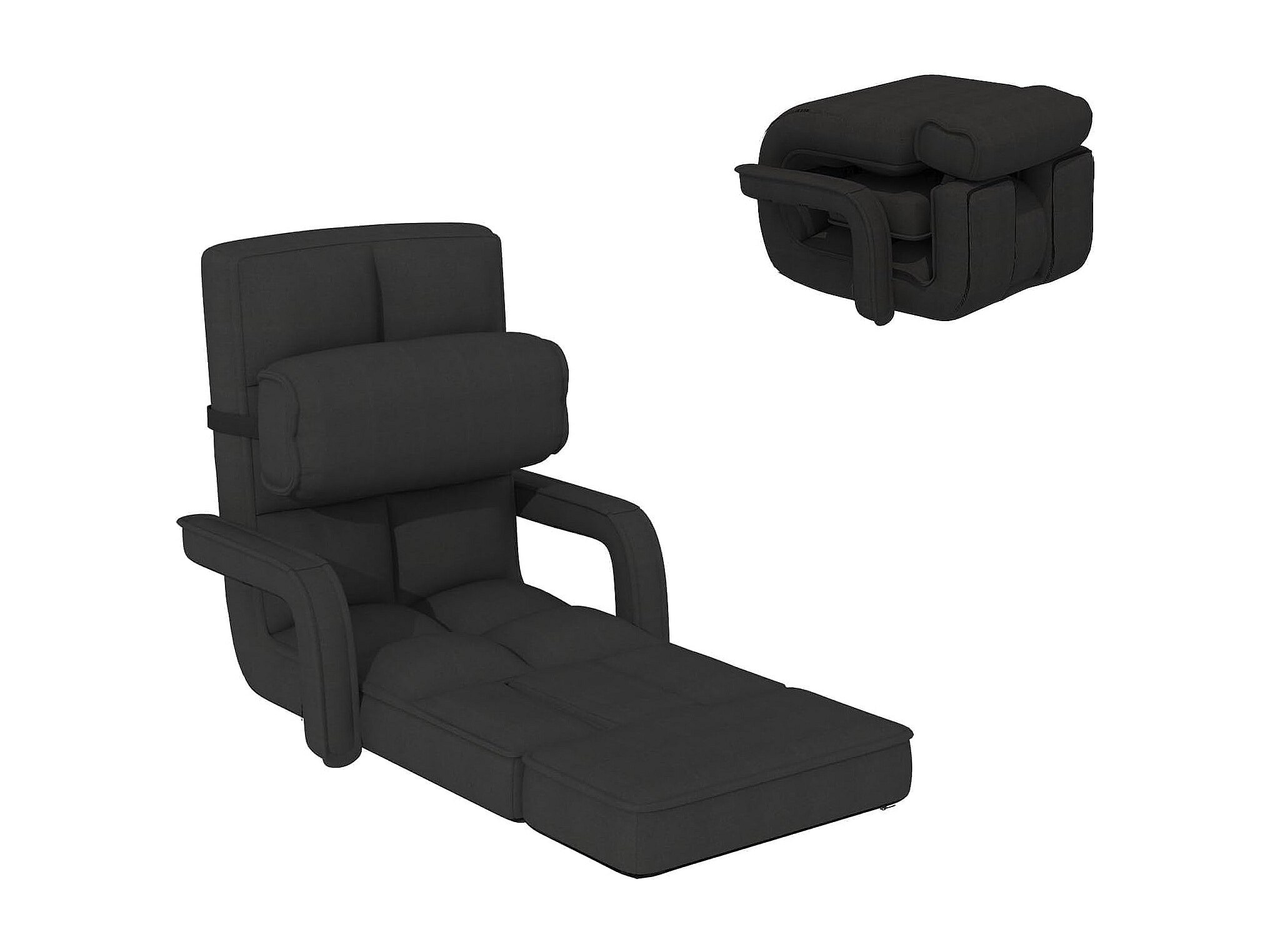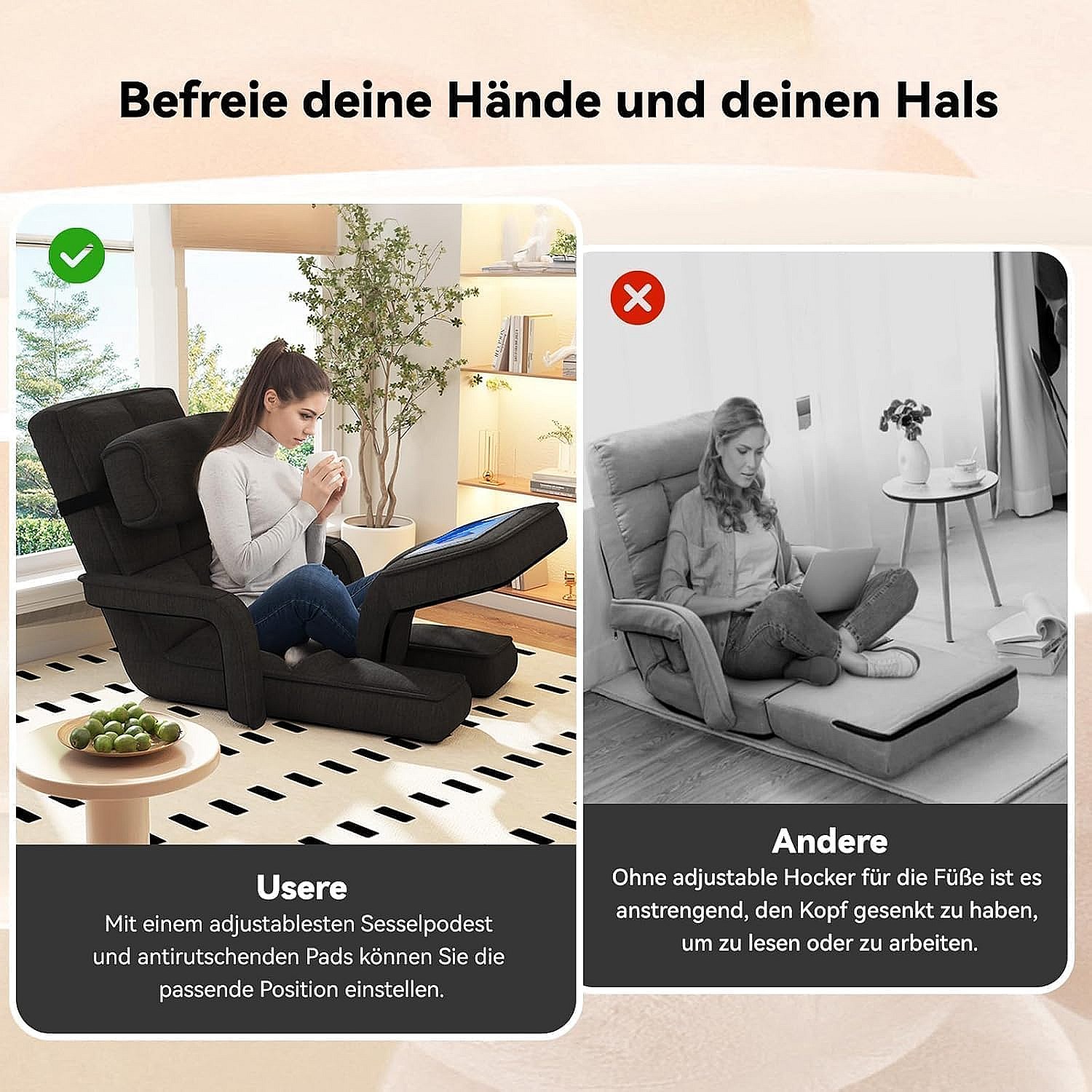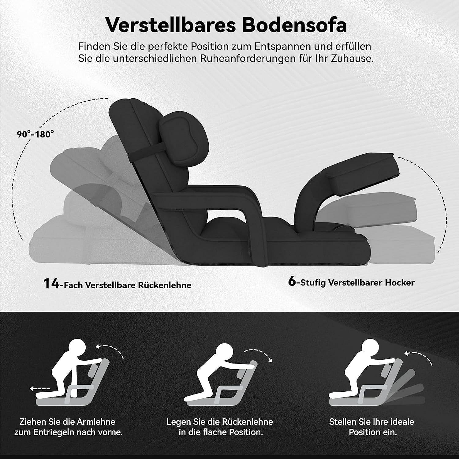 YODOLLA Verstellbarer Bodenstuhl mit Armlehnen, zusammenklappbar mit Kissen & Fußstütze für Schlafzimmer, Büro und Zuhause, Schwarz