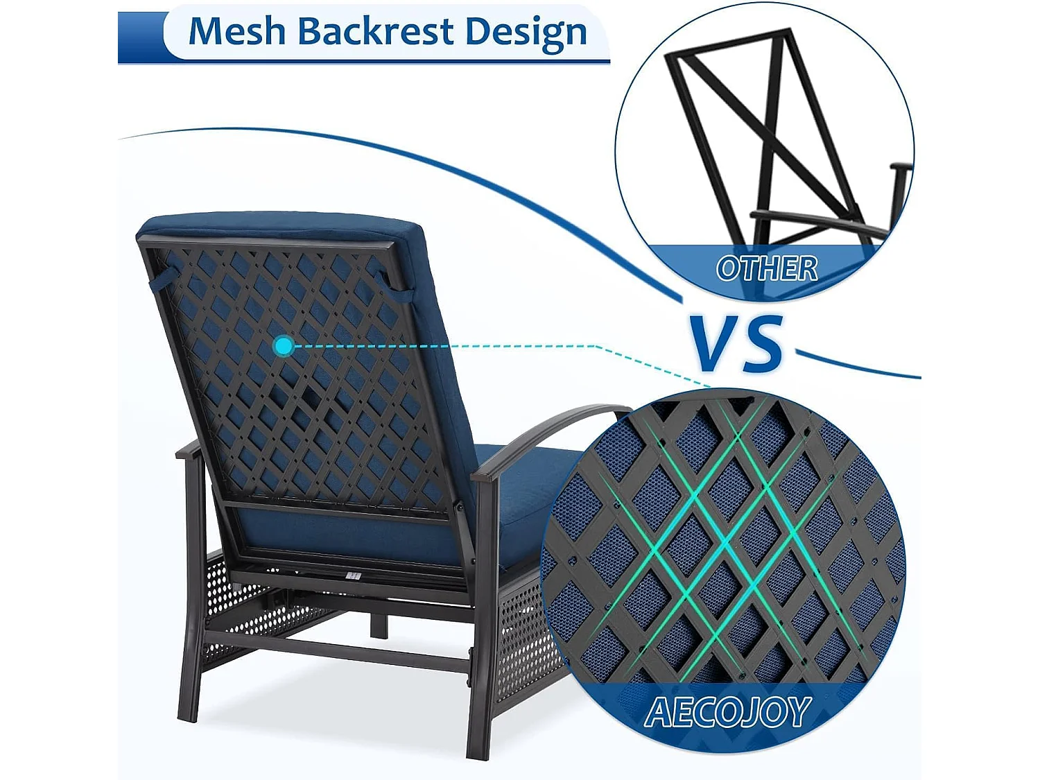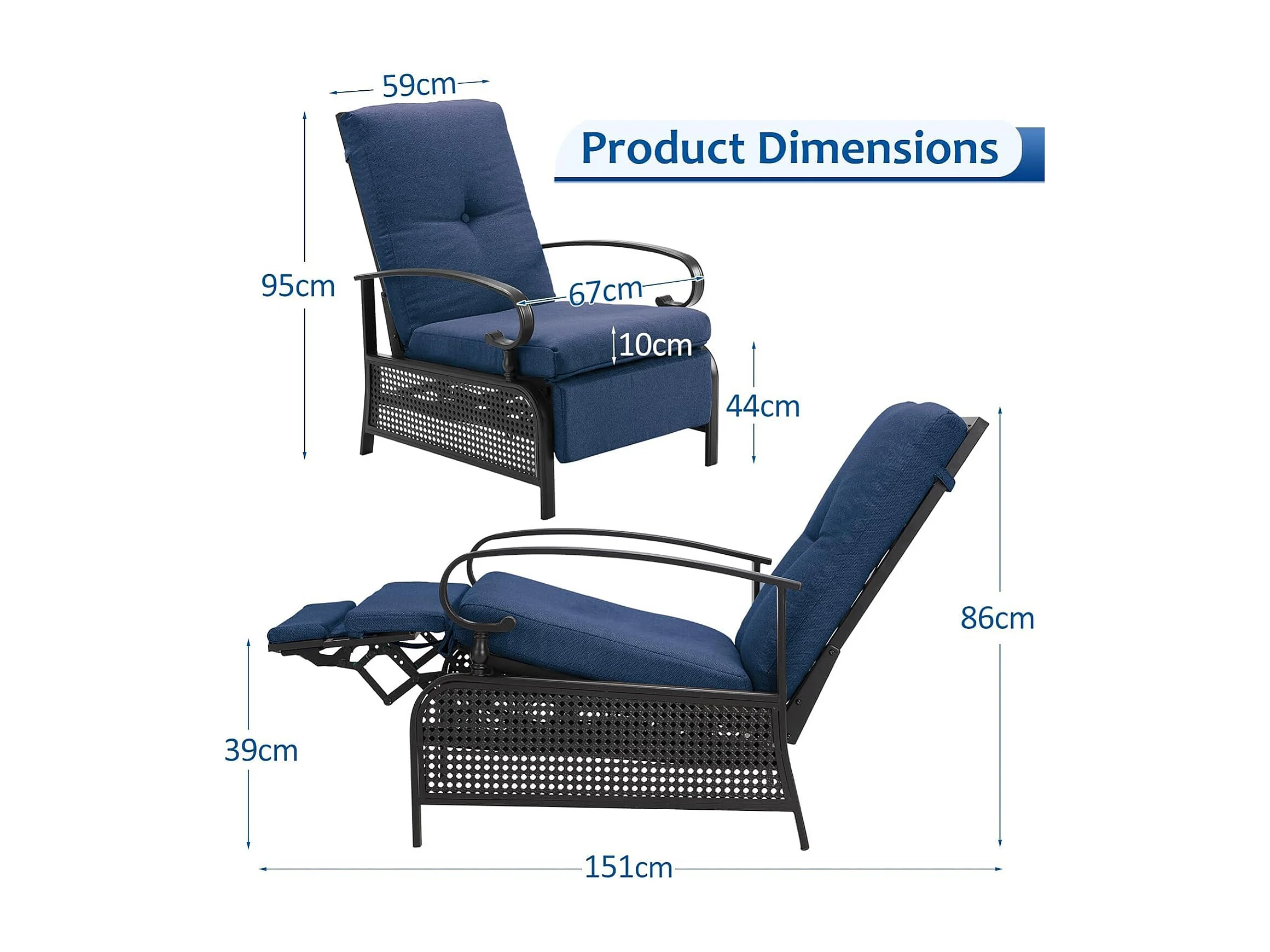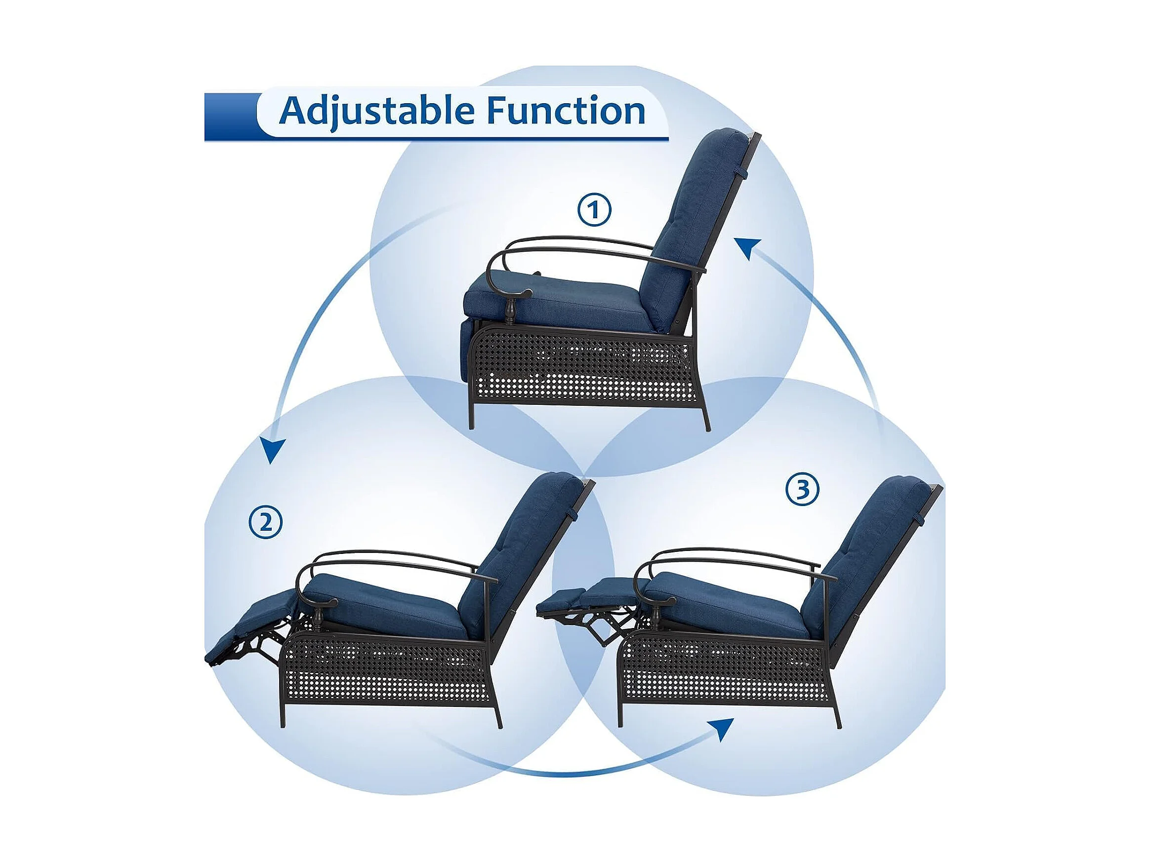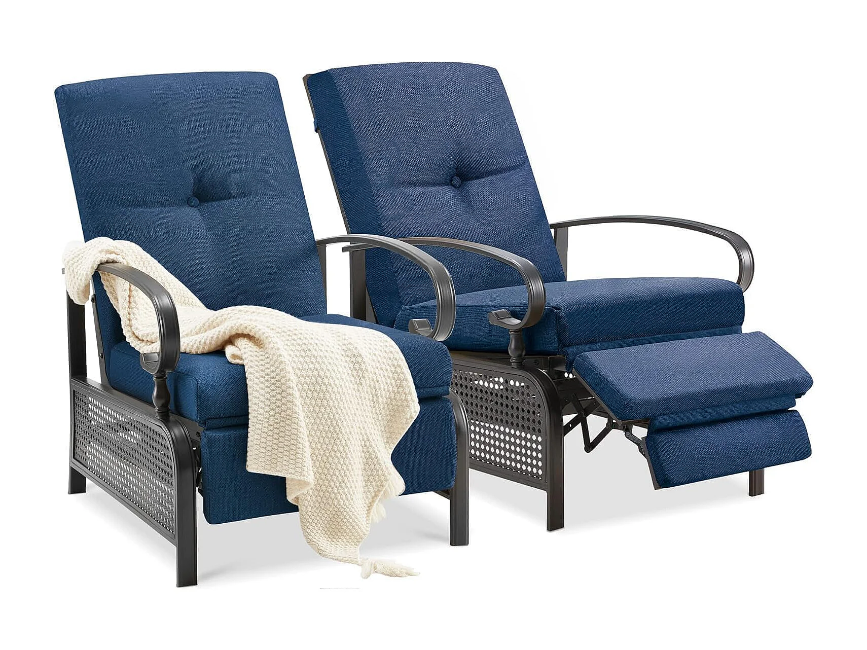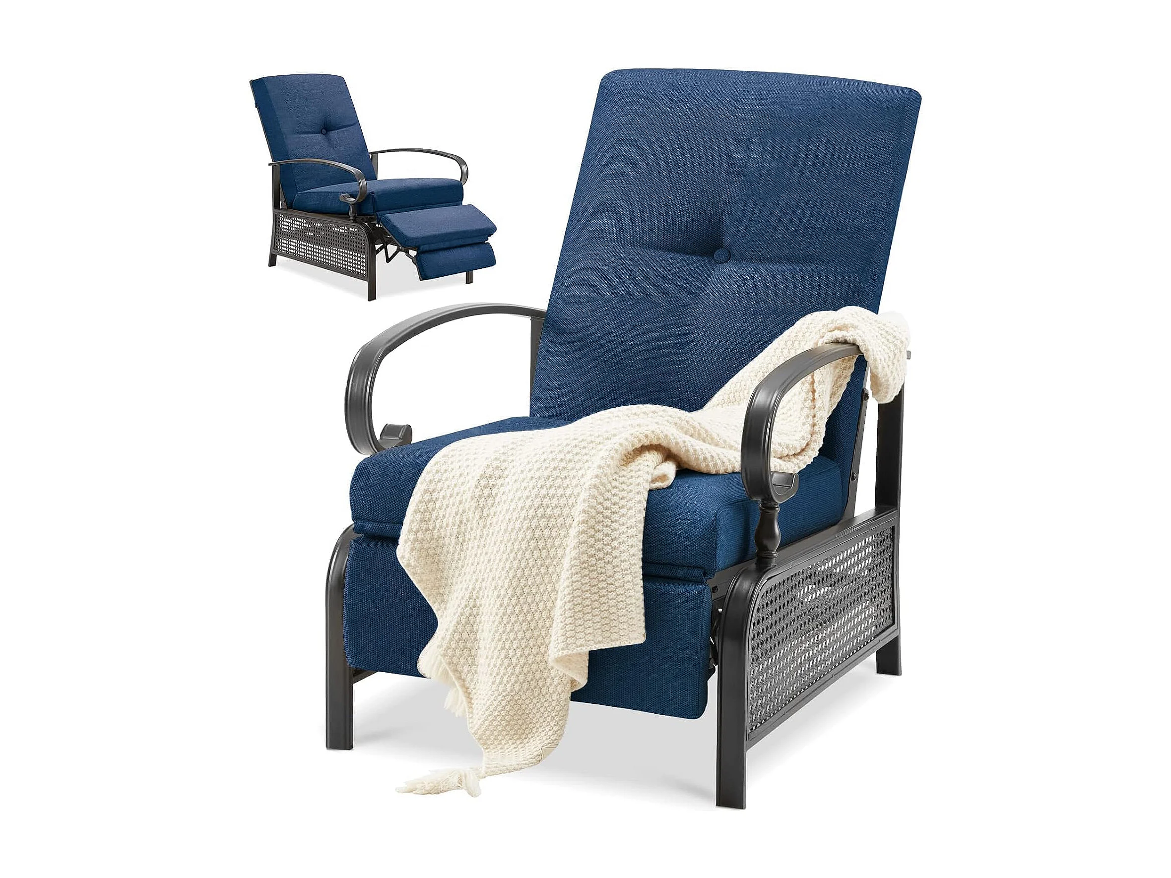 YODOLLA Verstellbarer Liegestuhl Gartenliege aus Metall für Terrasse, Garten, Pool & Außenbereich (Marineblau)