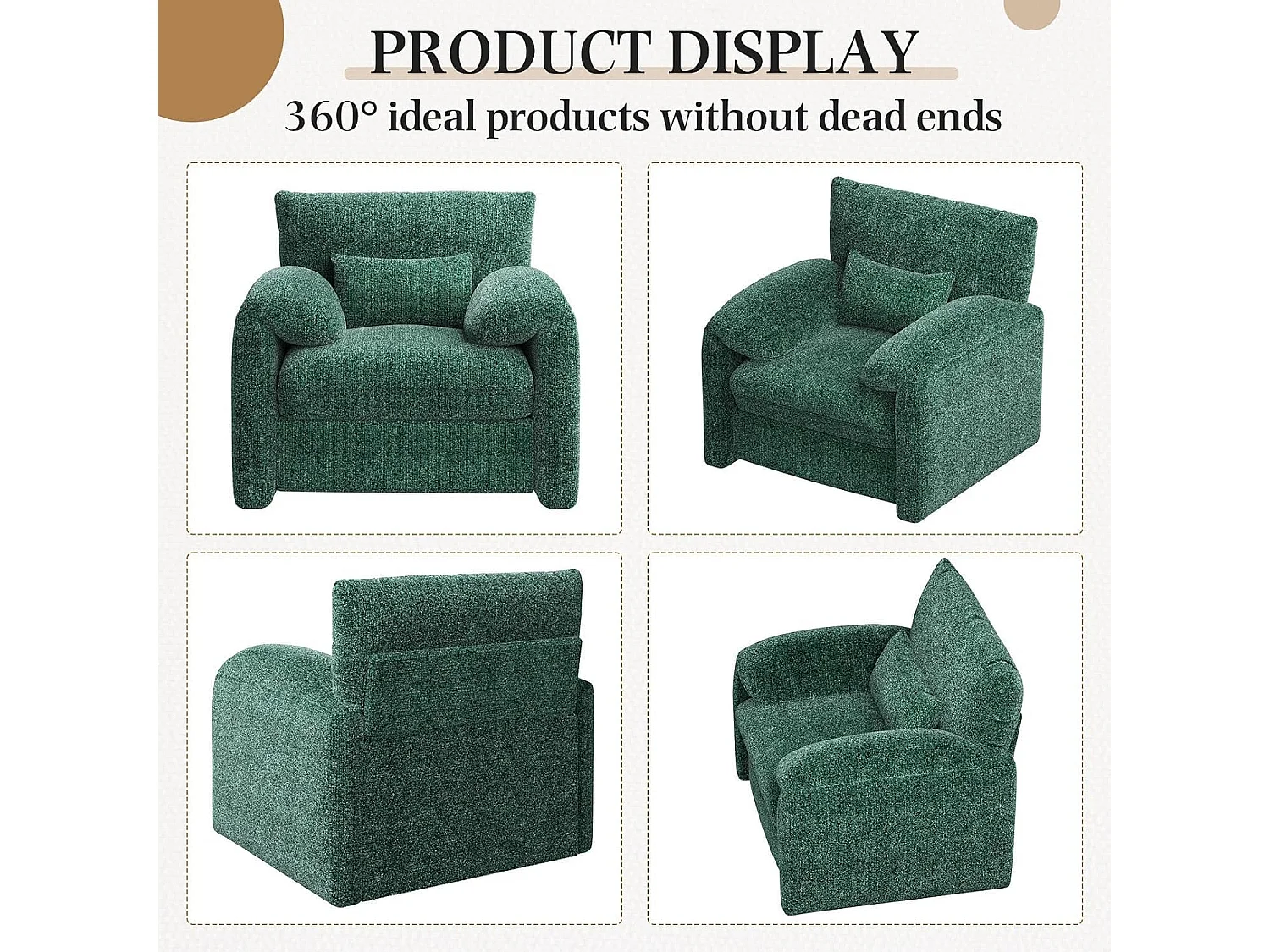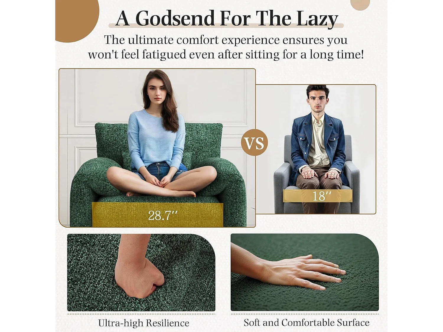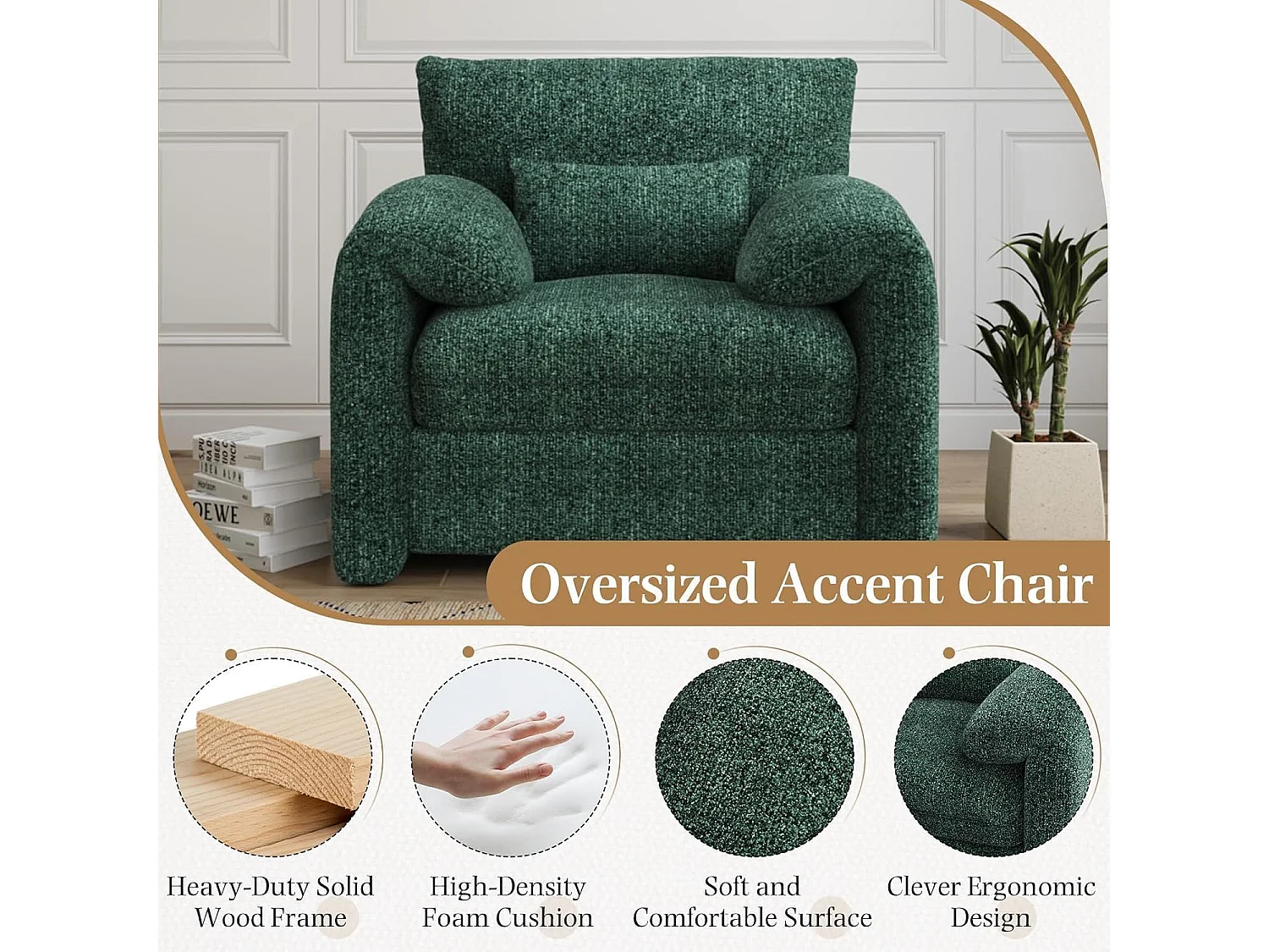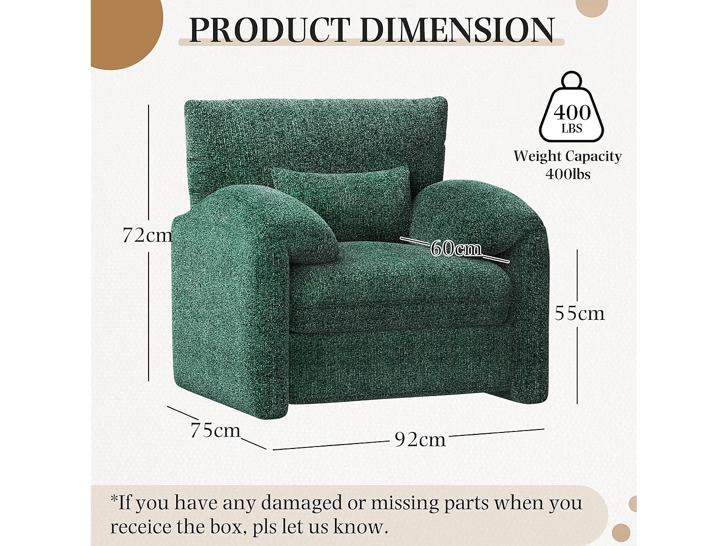 YODOLLA XXL Ohrensessel mit Armlehnen aus Chenille, moderner Relaxsessel für Wohnzimmer & Schlafzimmer, Grün