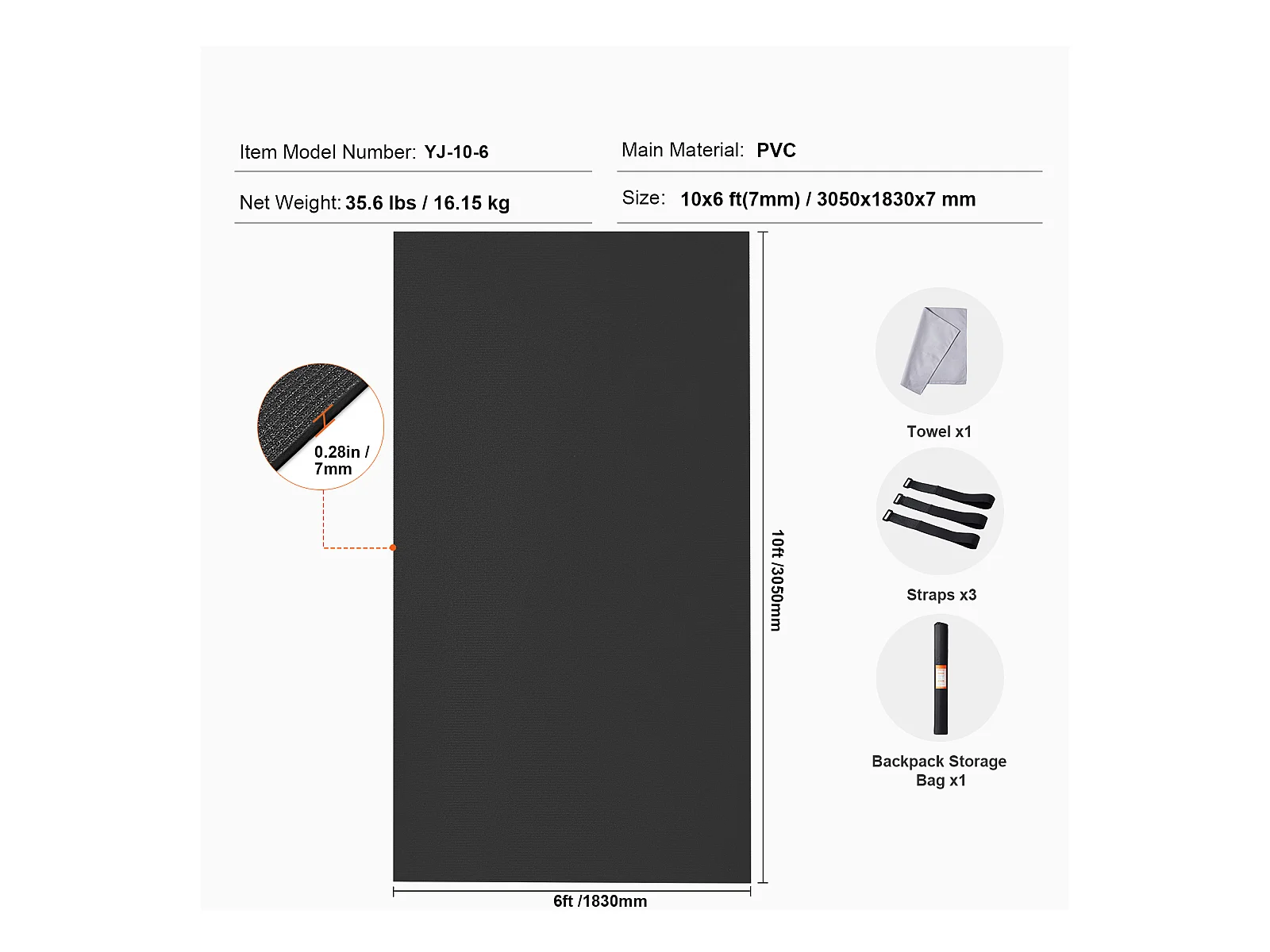 Yogamatte SucceBuy, Premium-Übematte, 3 x 1,8 m, Schwarz, für Yoga zu Hause, Pilates und Bodenarbeit