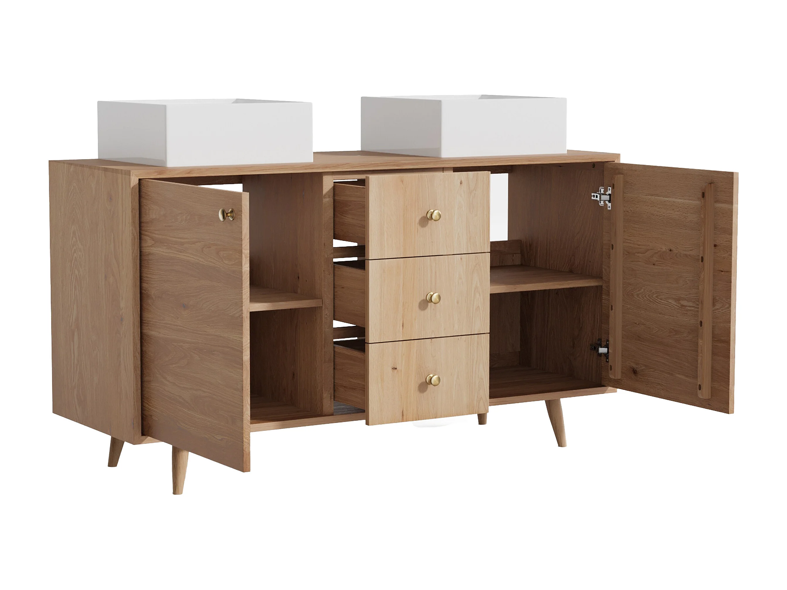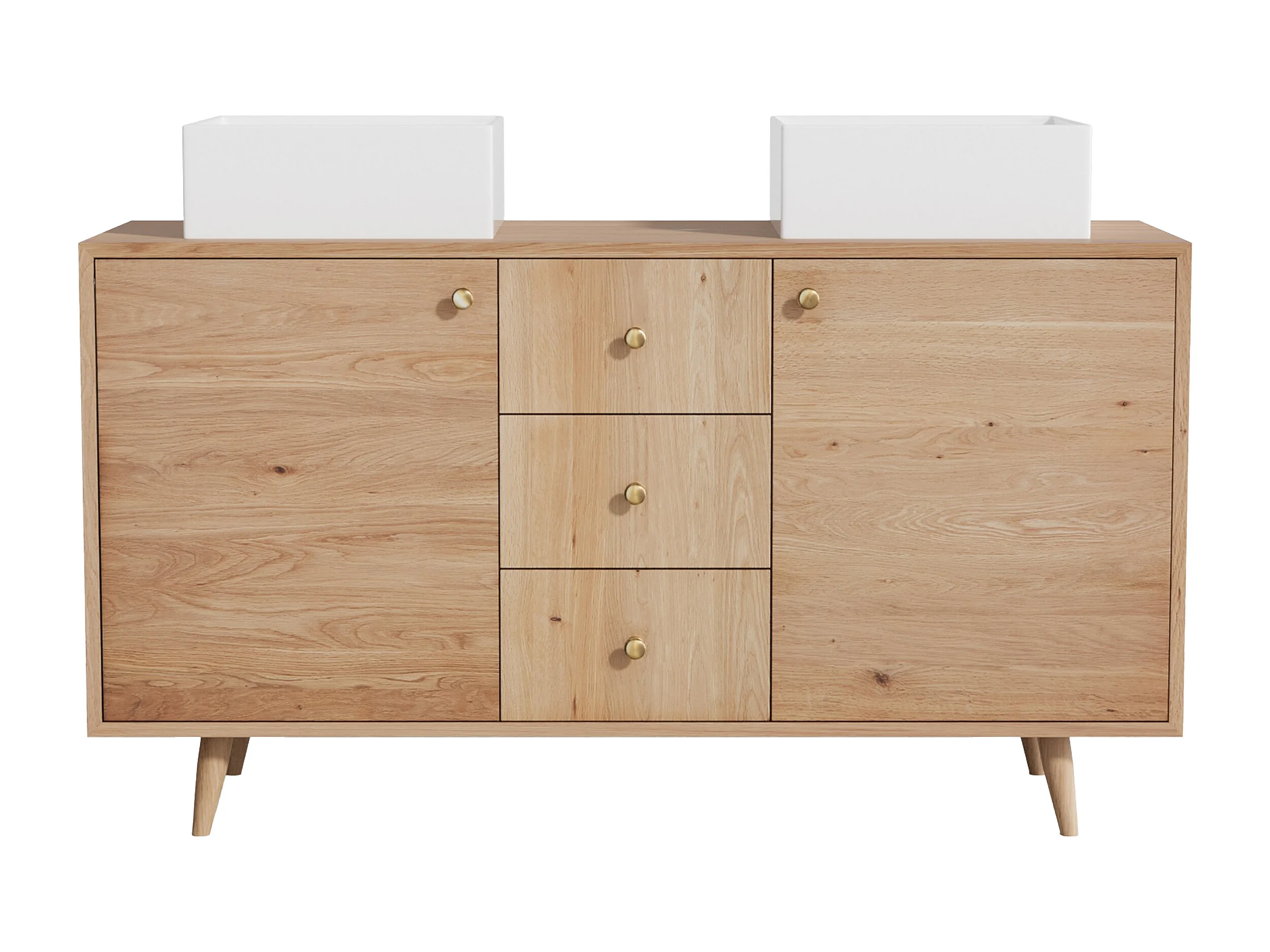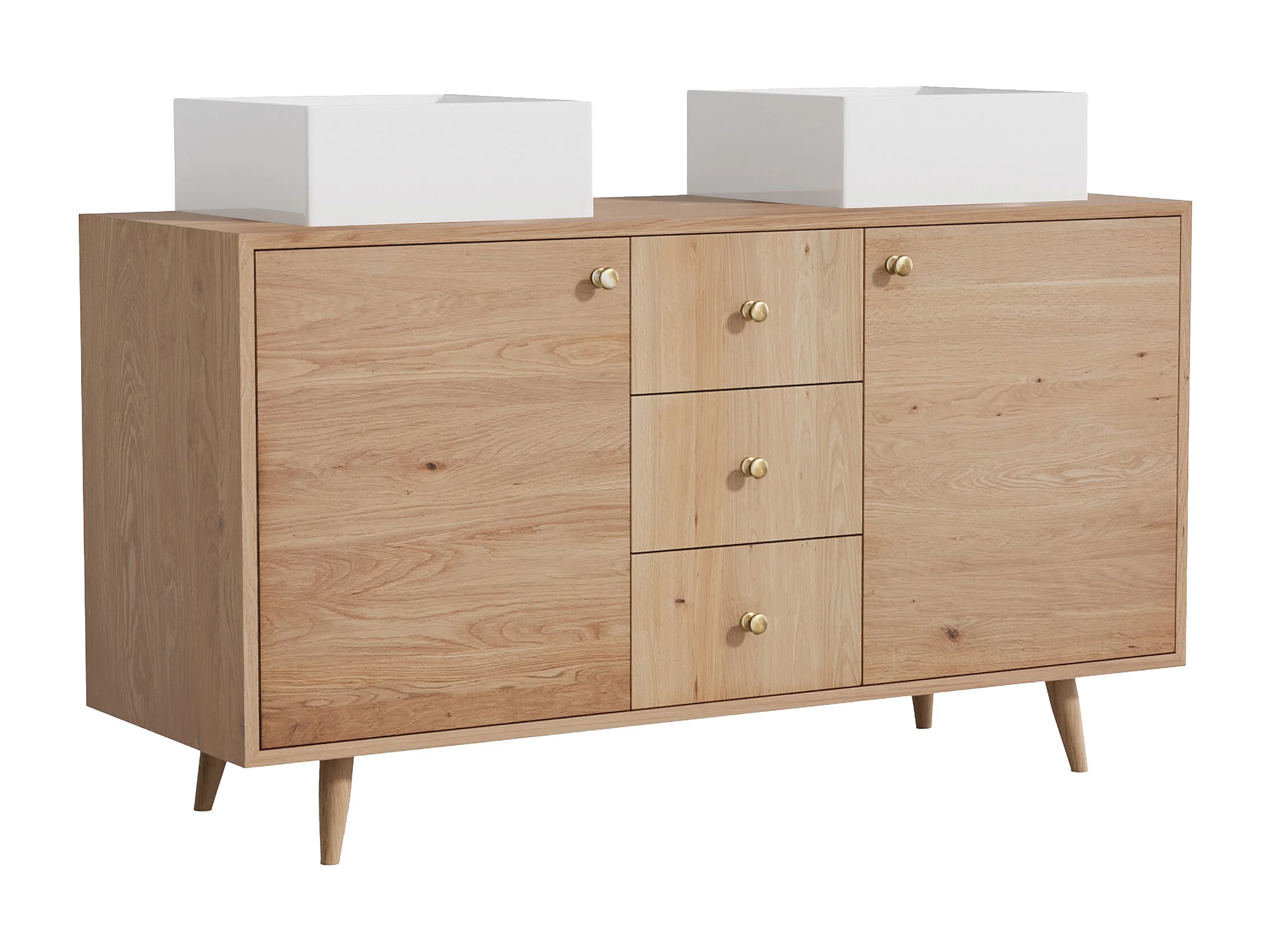 Unterschrank aus Massivholz Eiche mit quadratischem Aufsatzbecken - Hell Natur - 145 cm - ZARENO