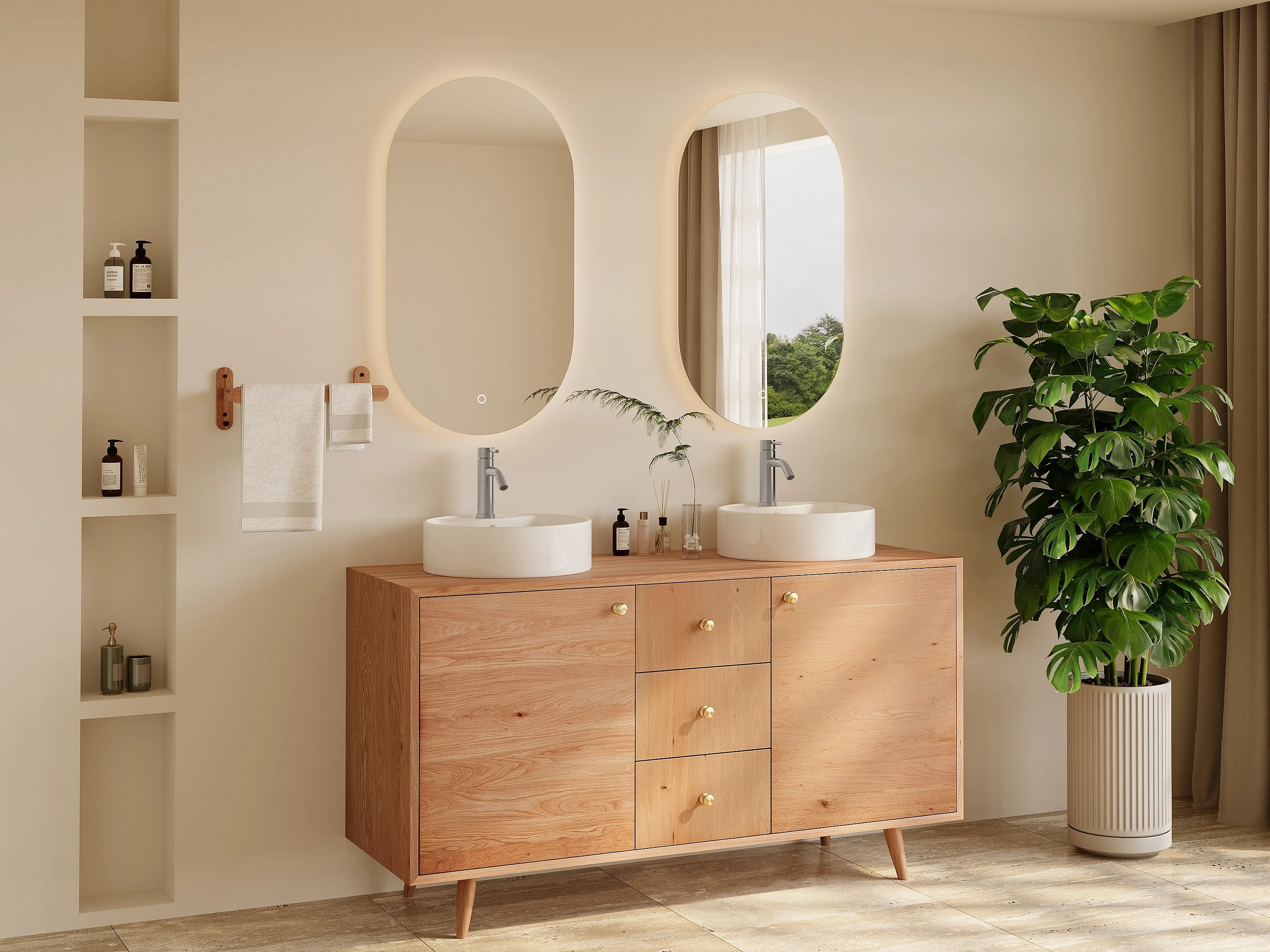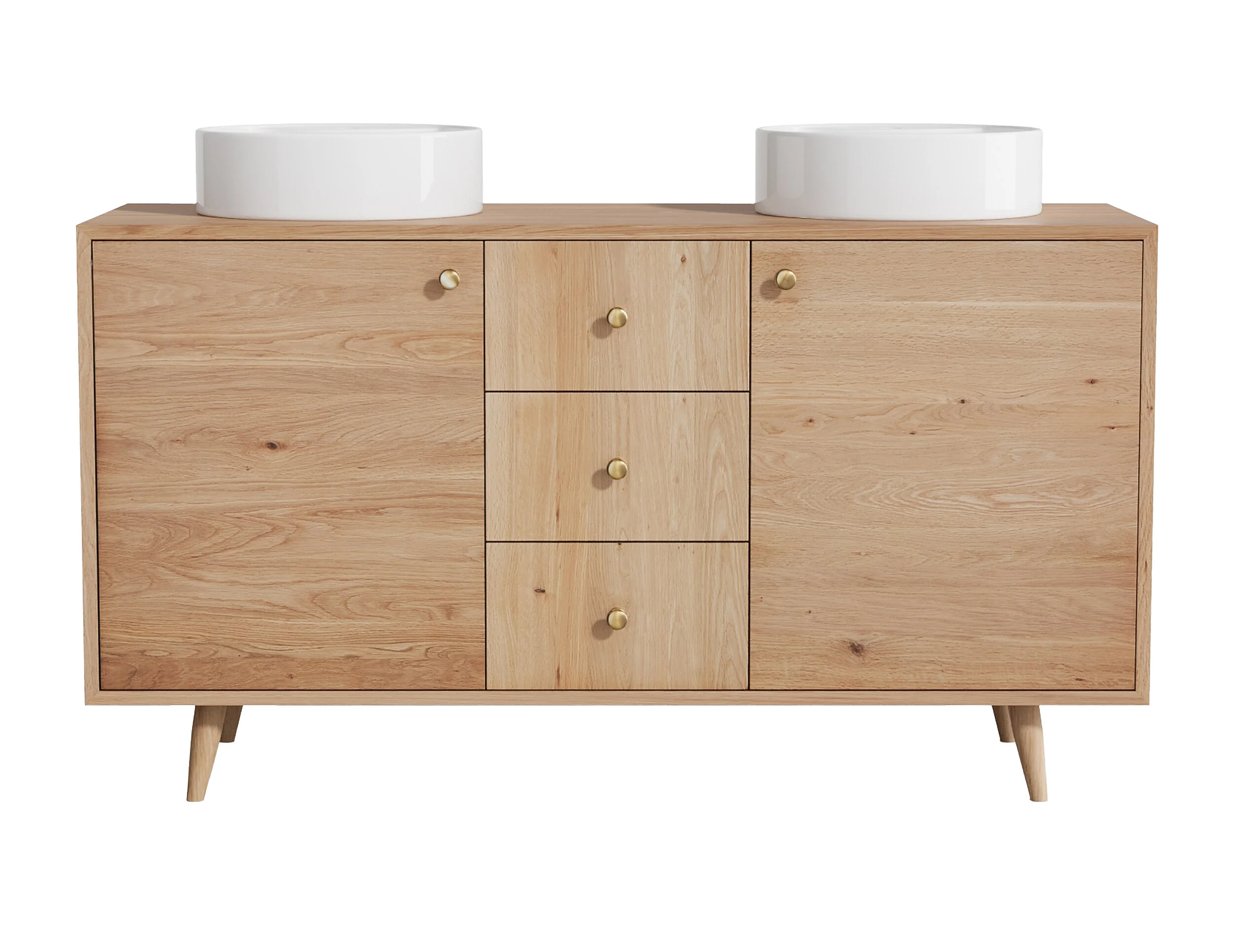 Unterschrank aus Massivholz Eiche mit rundem Aufsatzbecken - Hell Natur - 145 cm - ZARENO