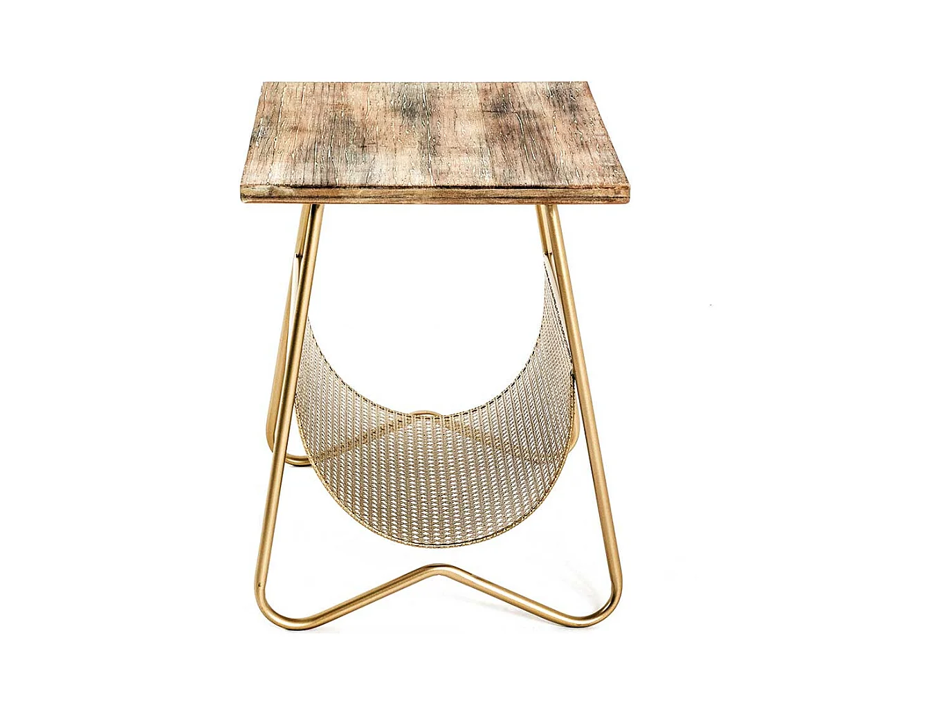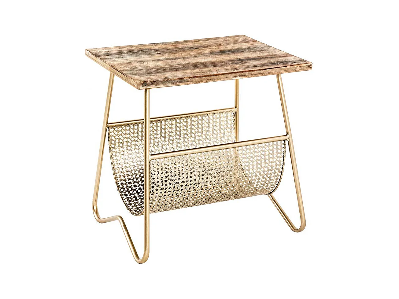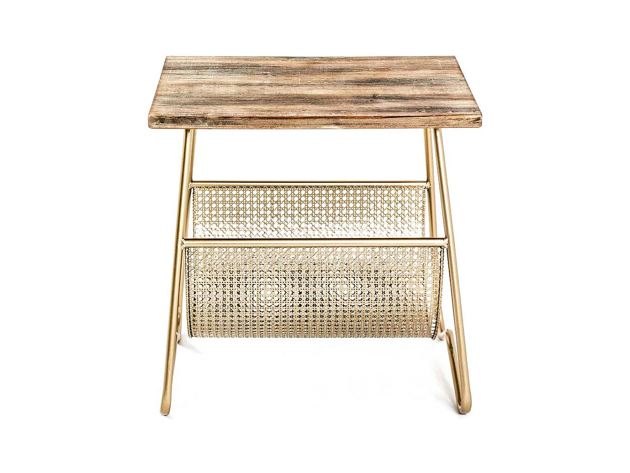 Zeitungstisch in Goldfarben und Holz furniert Bügelgestell