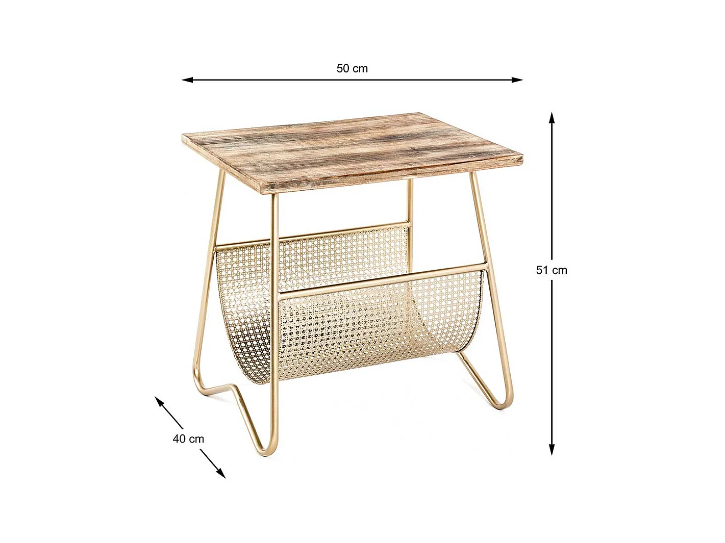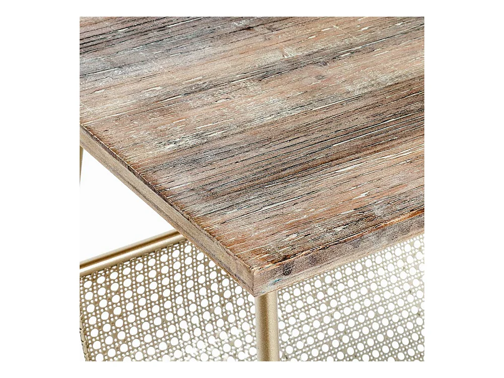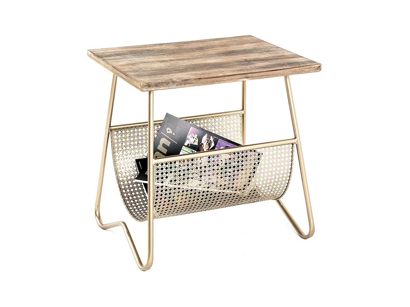 Zeitungstisch in Goldfarben und Holz furniert Bügelgestell