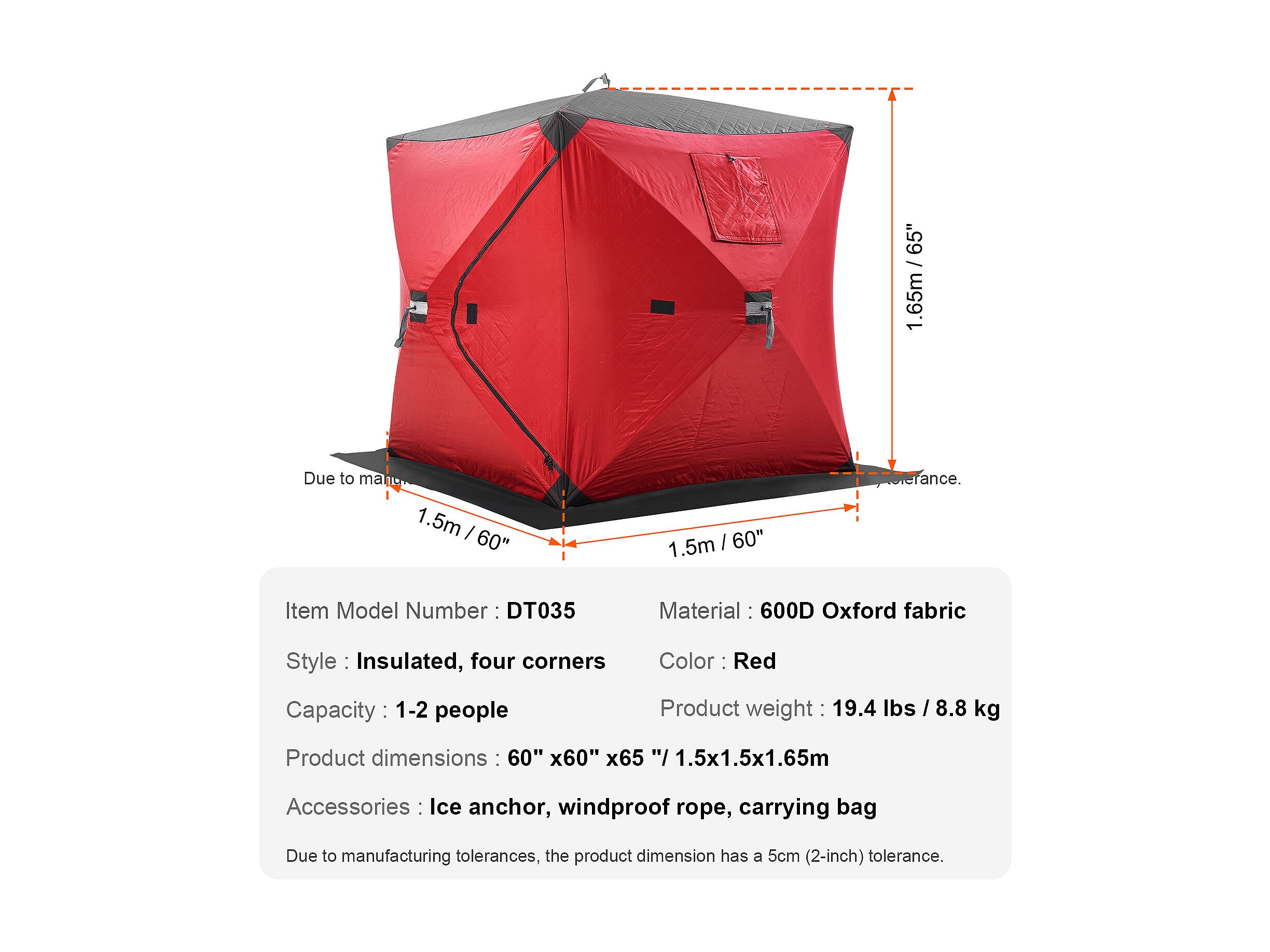 Zelt SucceBuy Eisschutzhaus Tragbar für 1 bis 2 Personen, Klappbares Eisfischzelt