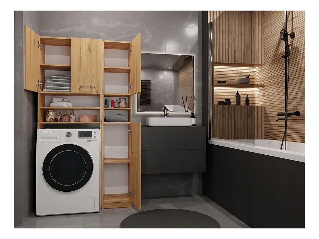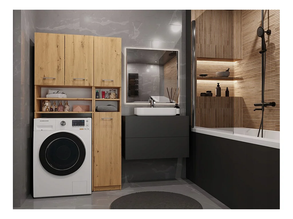 Zestaw Łazienkowy Marpol | Dąb Artisan | 96x30x180cm | Słupek + Szafka