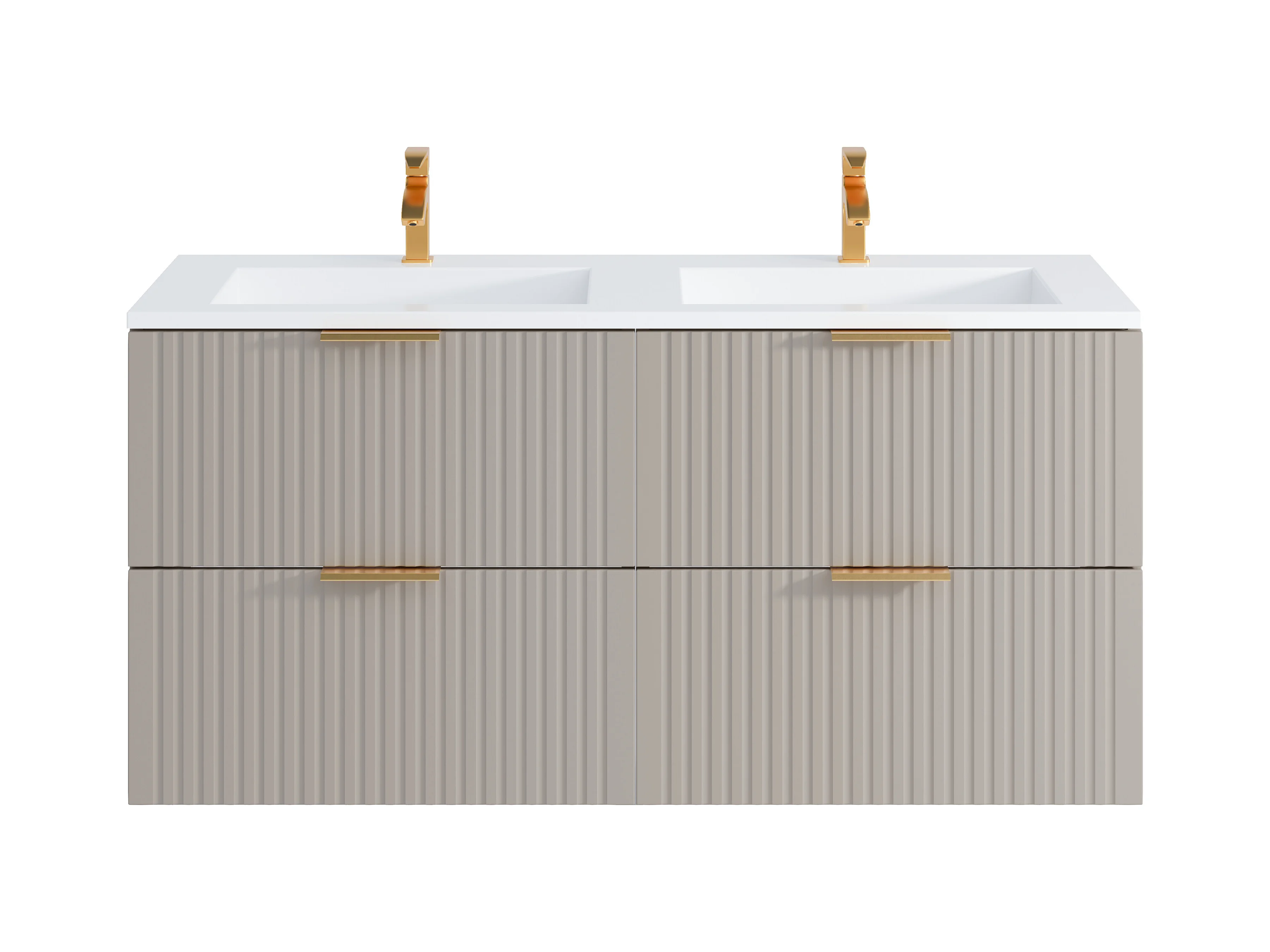 Waschbeckenunterschrank hängend mit Einbauwaschbecken - Streifenoptik - Beige - 120 cm - ZEVARA
