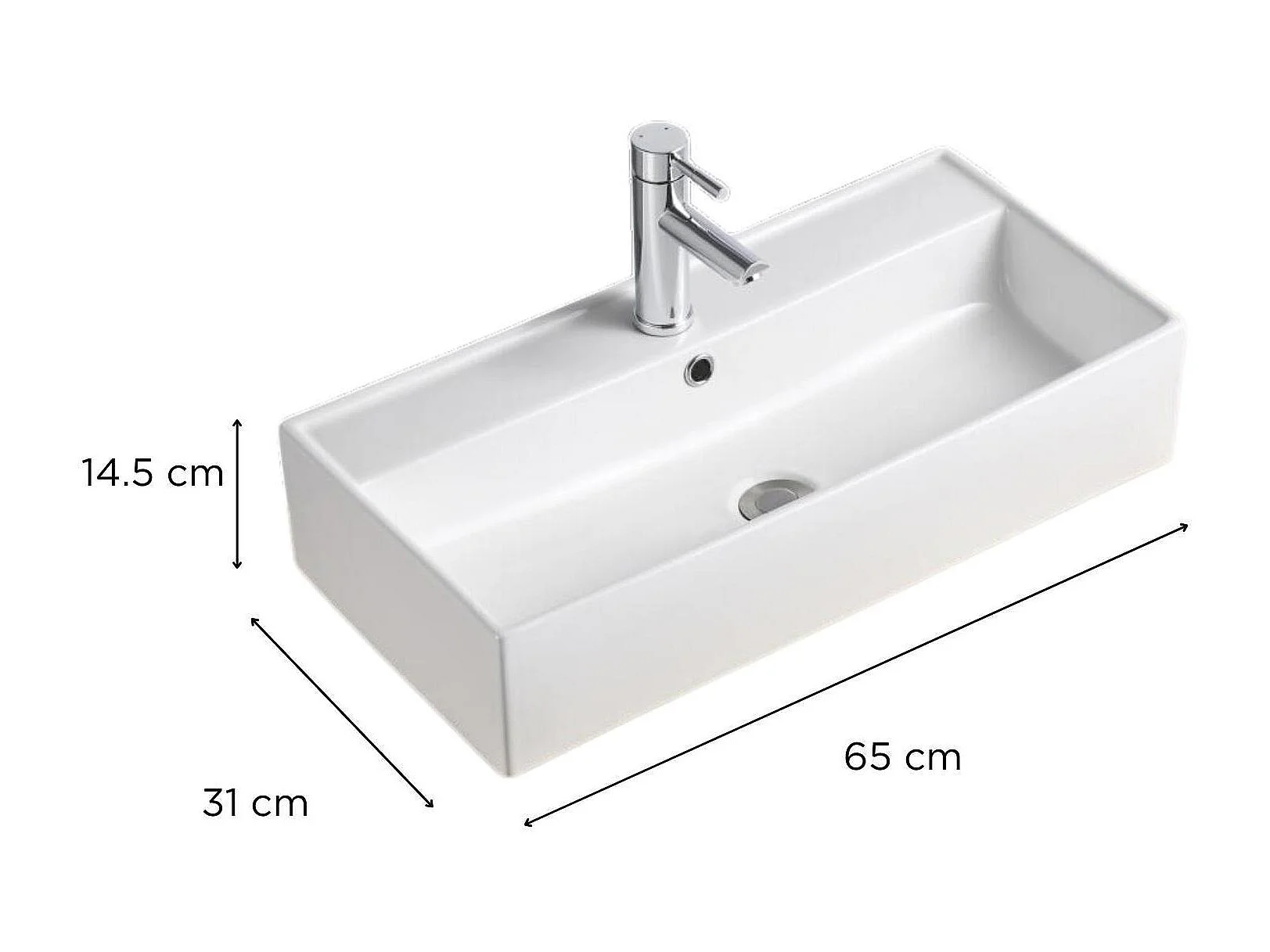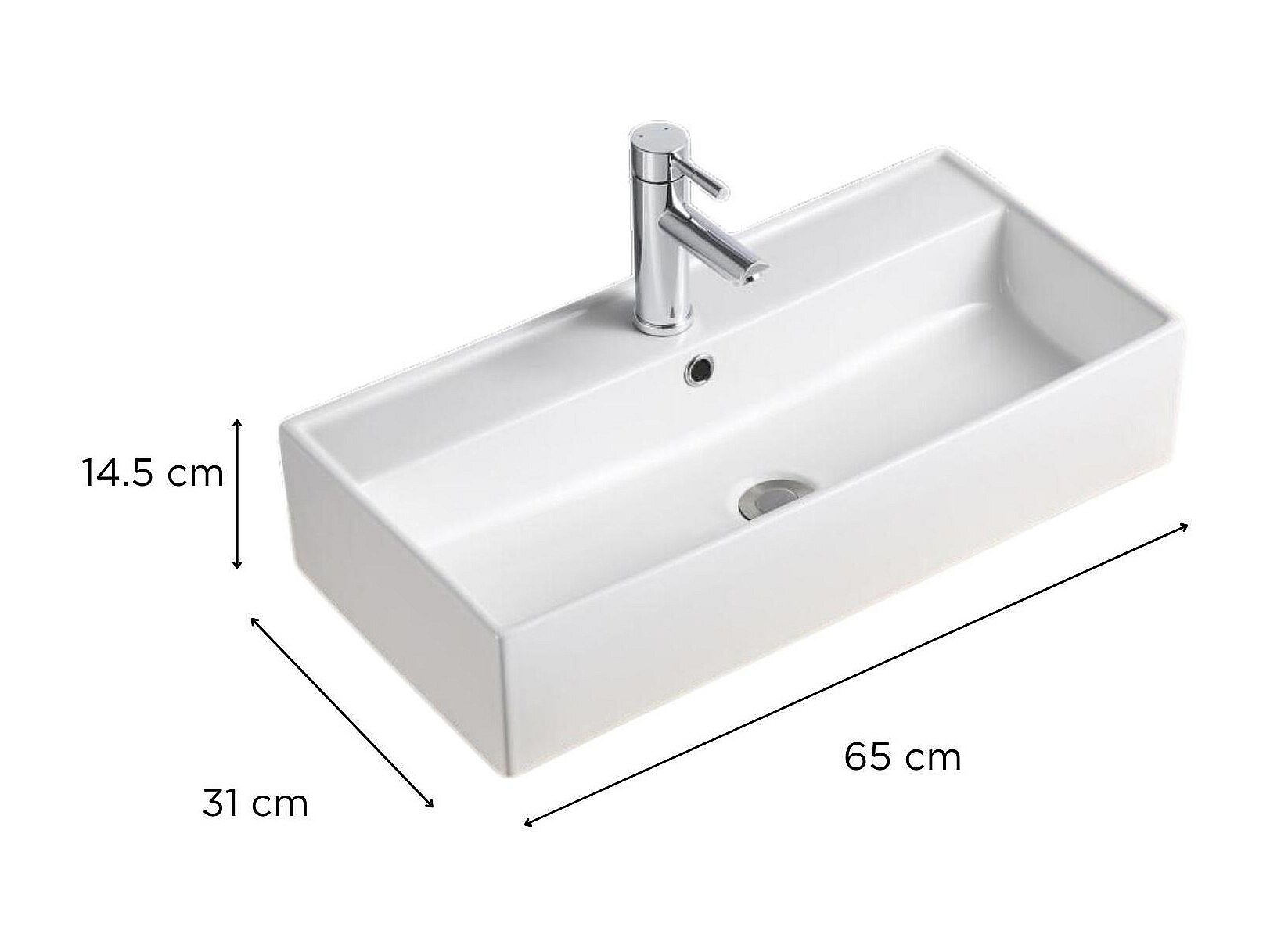 ZOE 65x31cm rechteckiges Aufsatzwaschbecken aus weißer Keramik