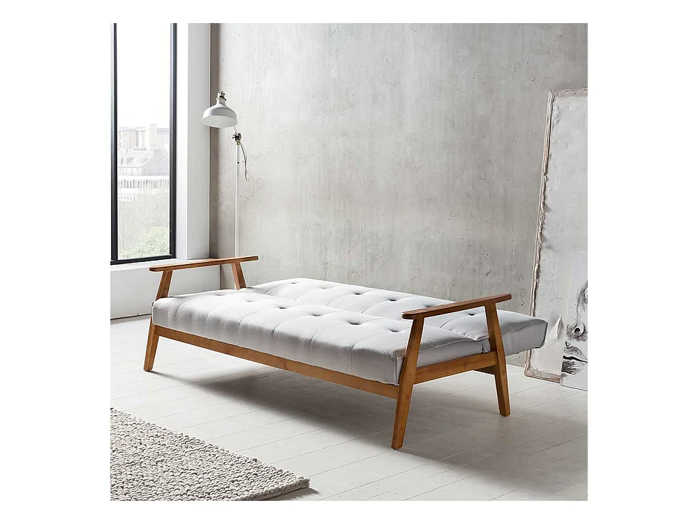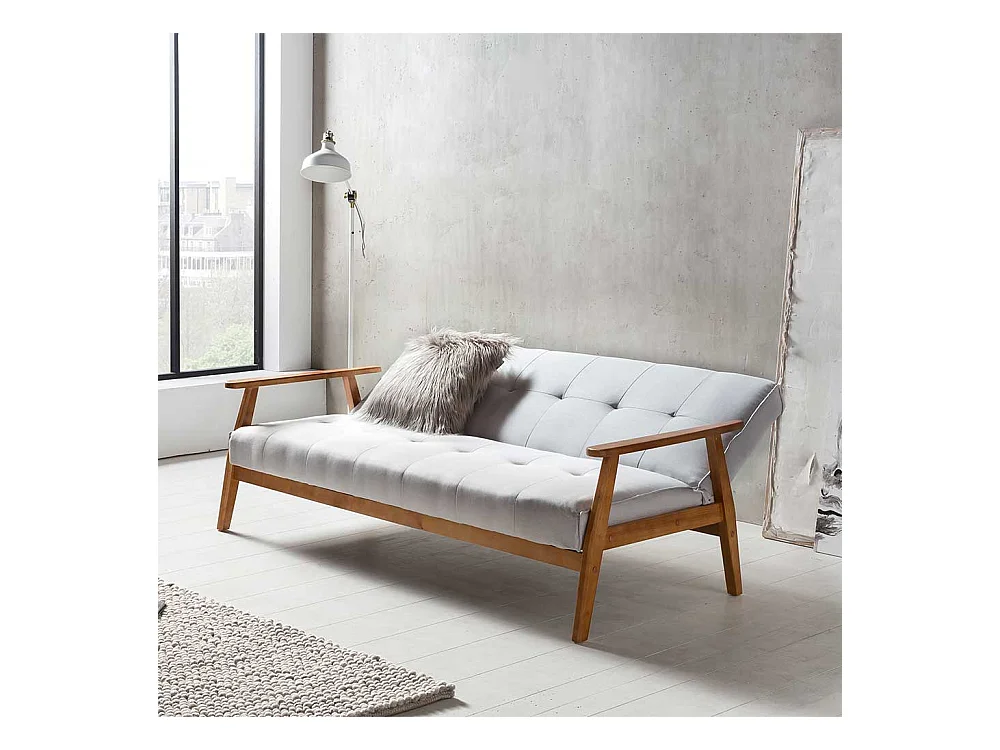 Zweier Sofa in Hellgrau Webstoff Schlaffunktion