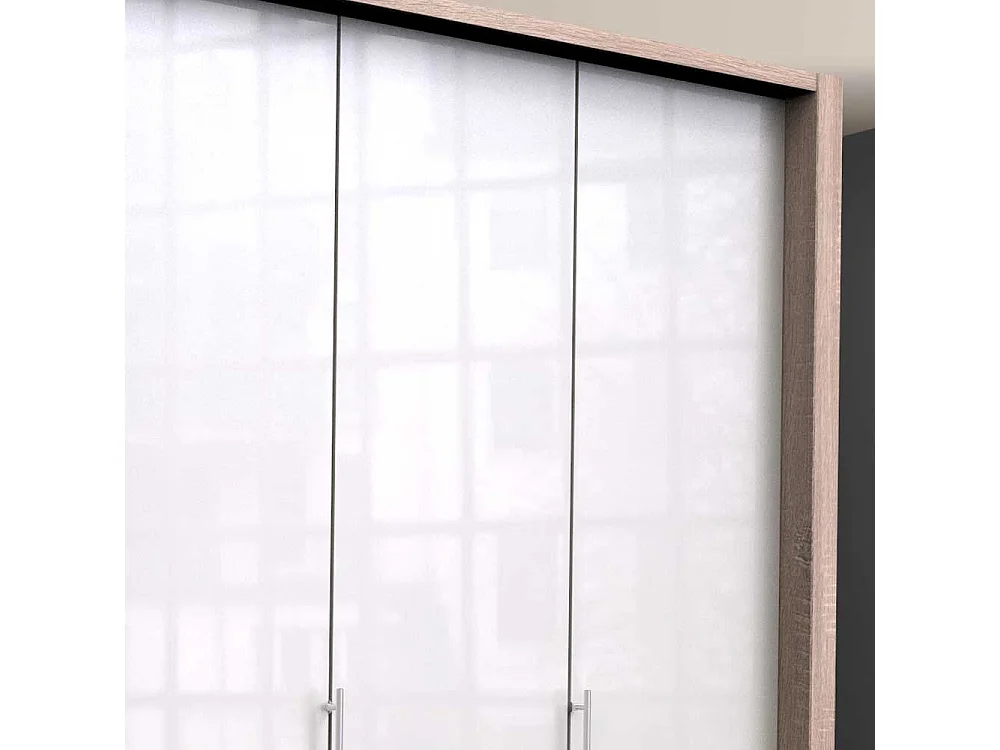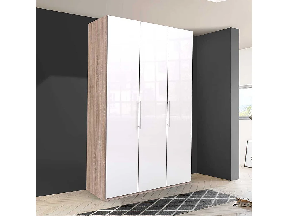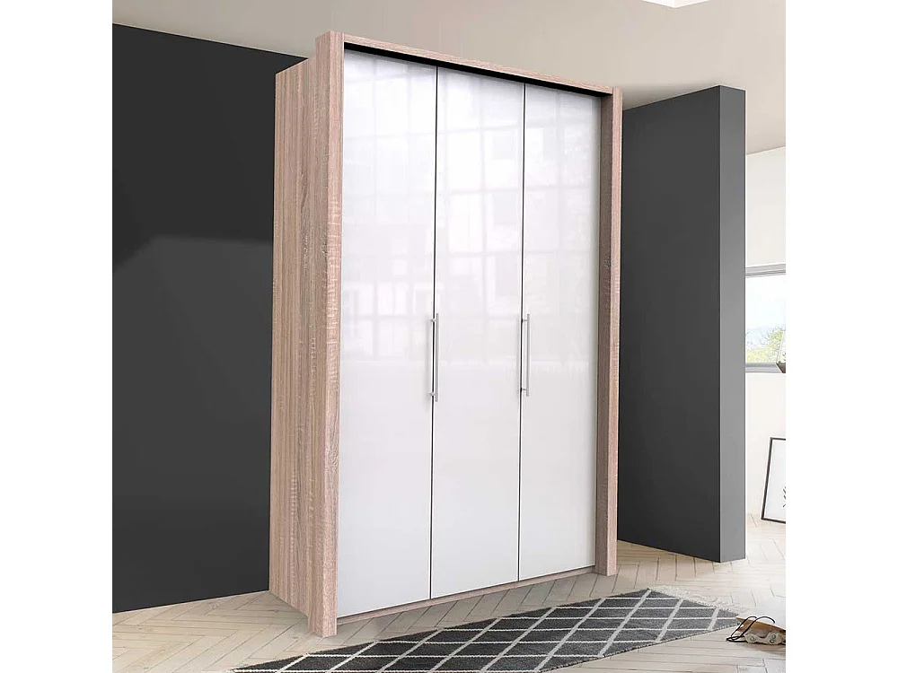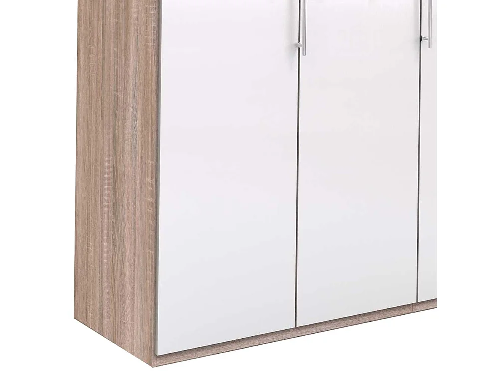 Zweifarbiger Kleiderschrank mit Türen Weiß und Eiche Sägerau