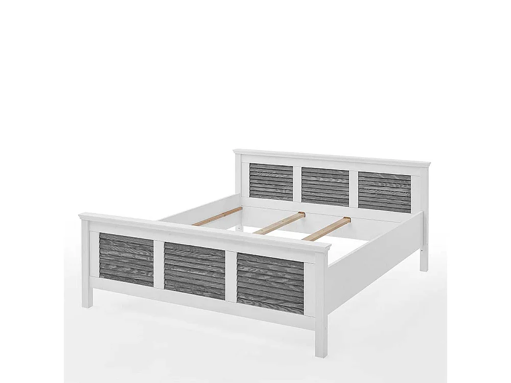 Zweifarbiges Landhaus Bett in Kiefer Grau & Weiß 94 cm Kopfteil