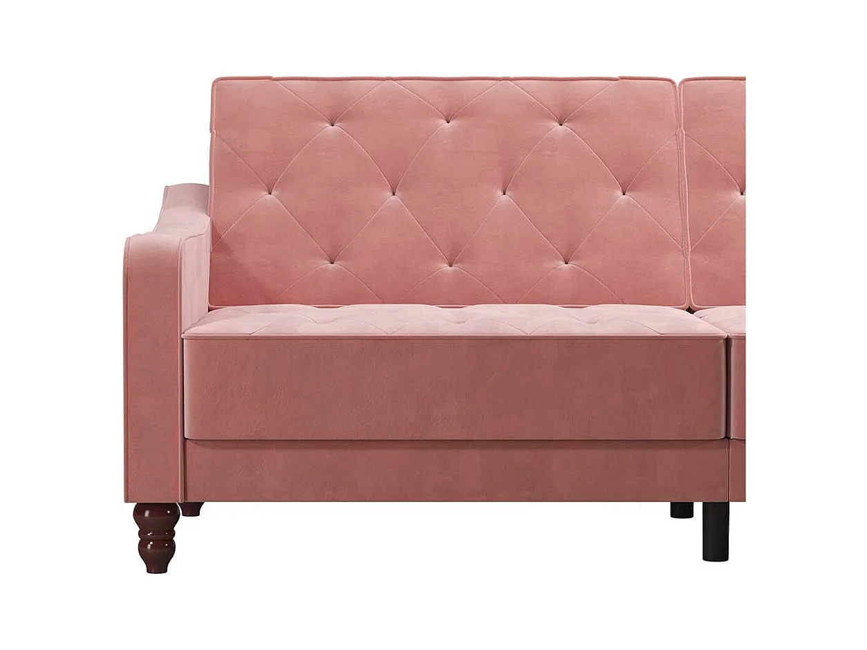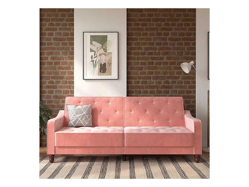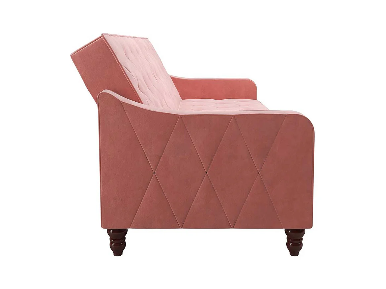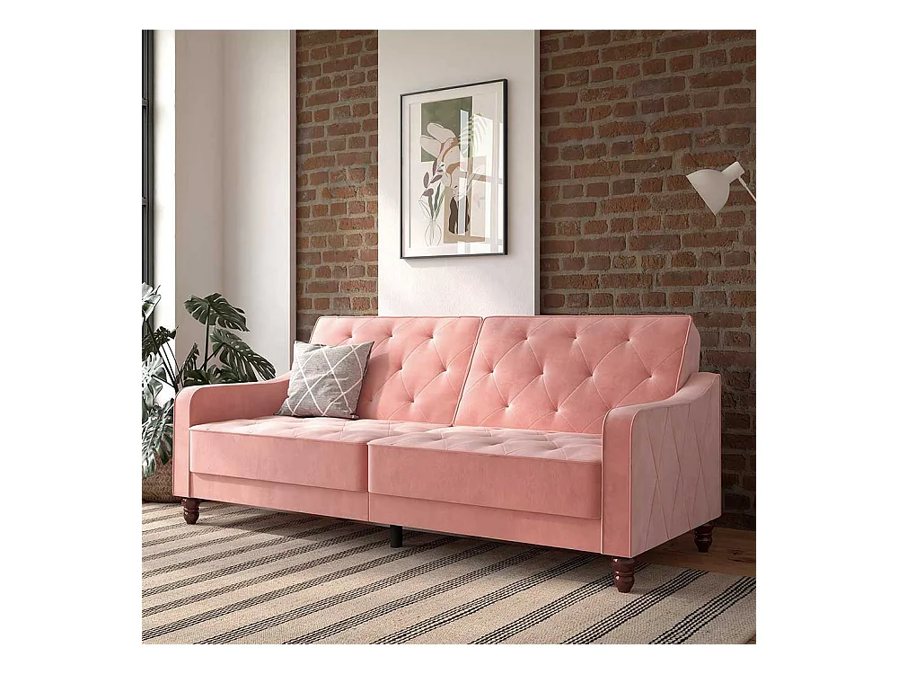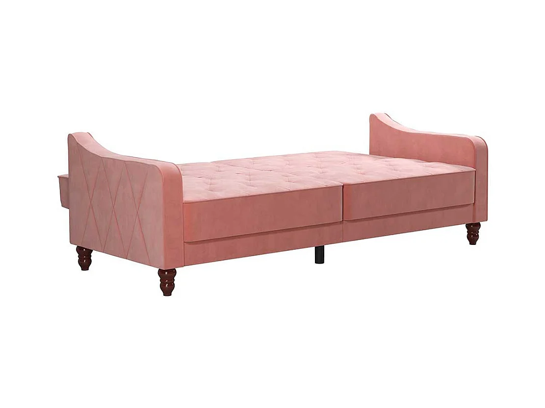 Zweisitzer Schlafsofa rosa aus Samt Rücken Klappmechanik