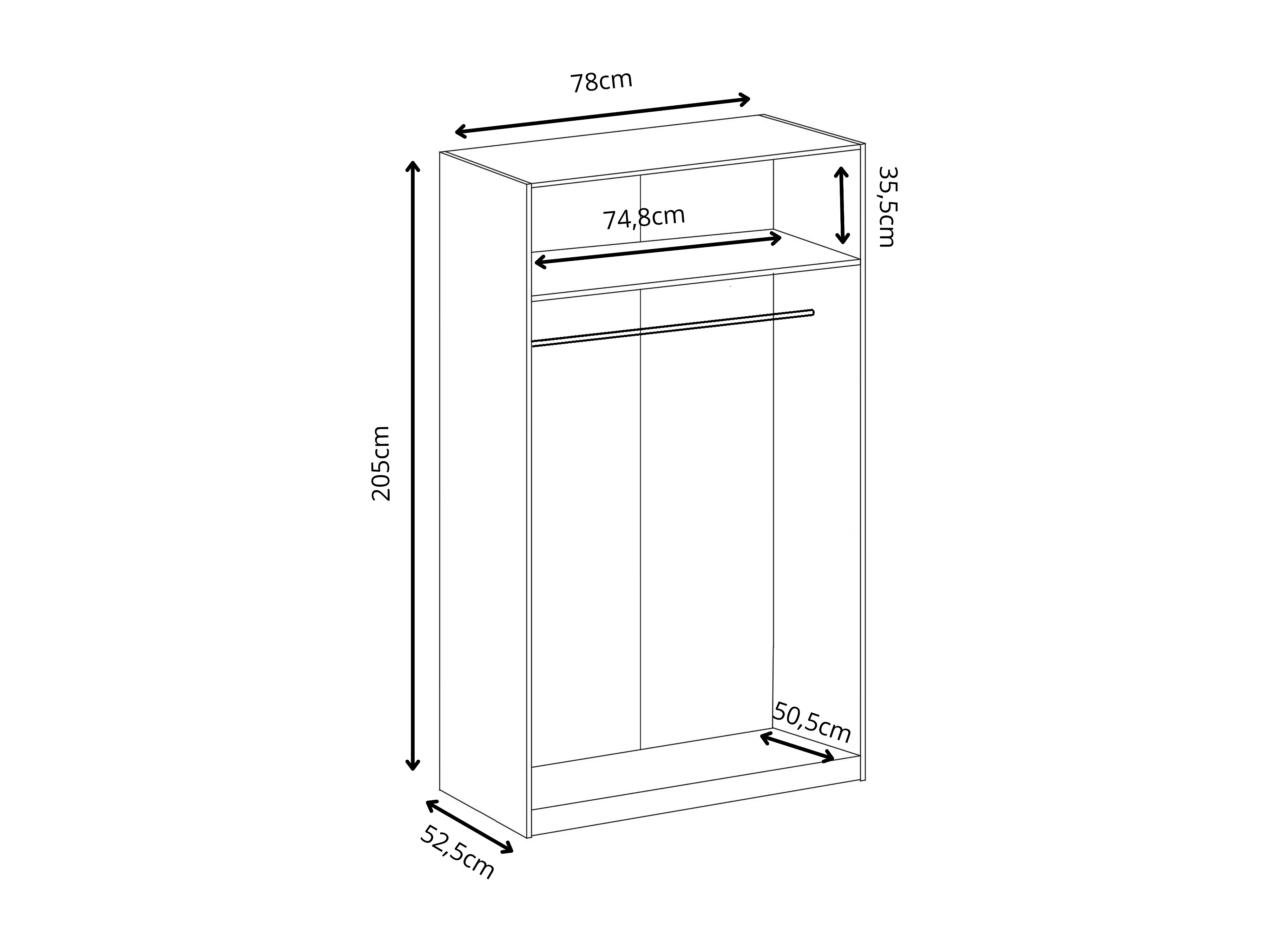Zweitüriger Kleiderschrank GOLD 2D 78 Weiß + Eiche Craft Gold