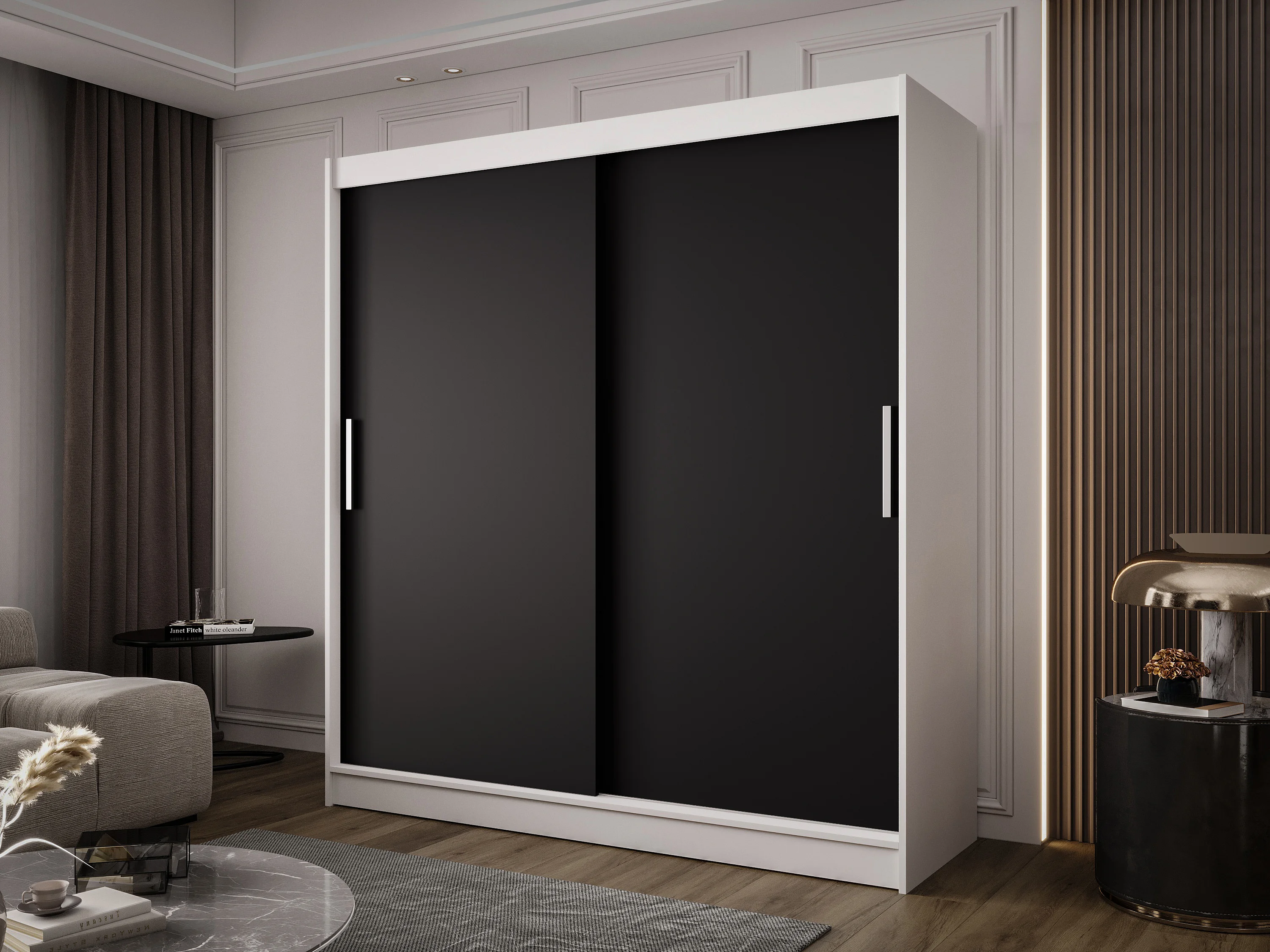 Zweitüriger Schiebeschrank BALTIMORE B1 Weiß/Schwarz