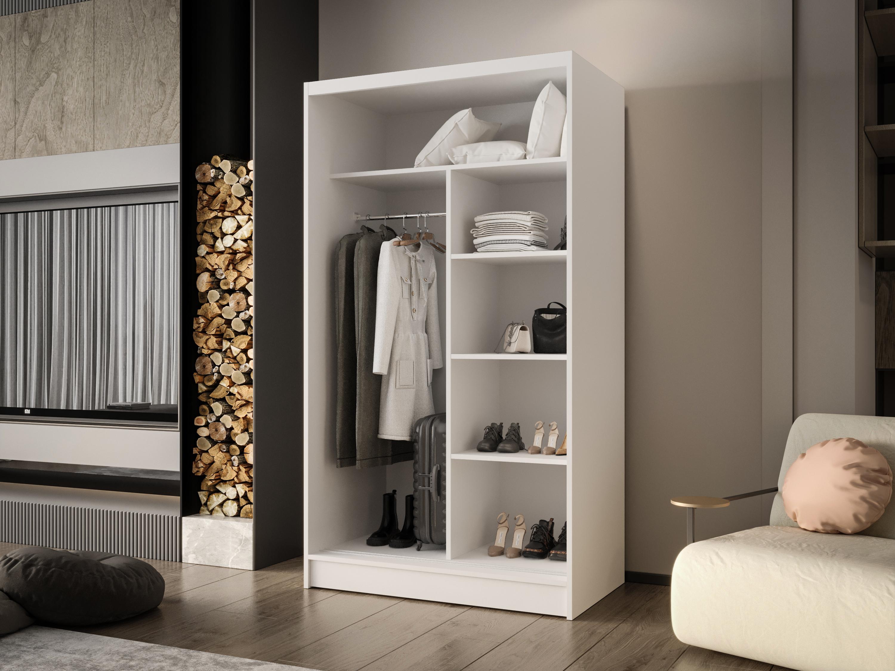 Zweitüriger Schiebeschrank CHICAGO CA1 Regalböden und Kleiderstange (Weiß/Schwarz)