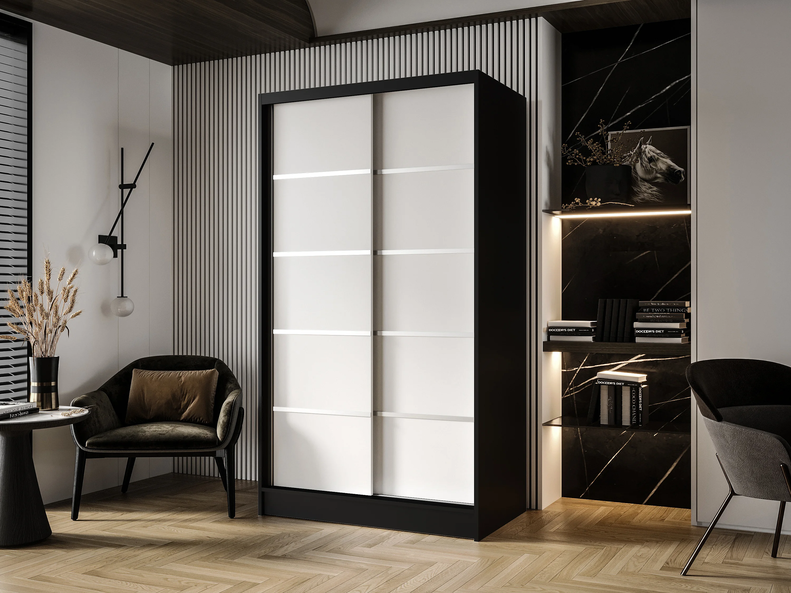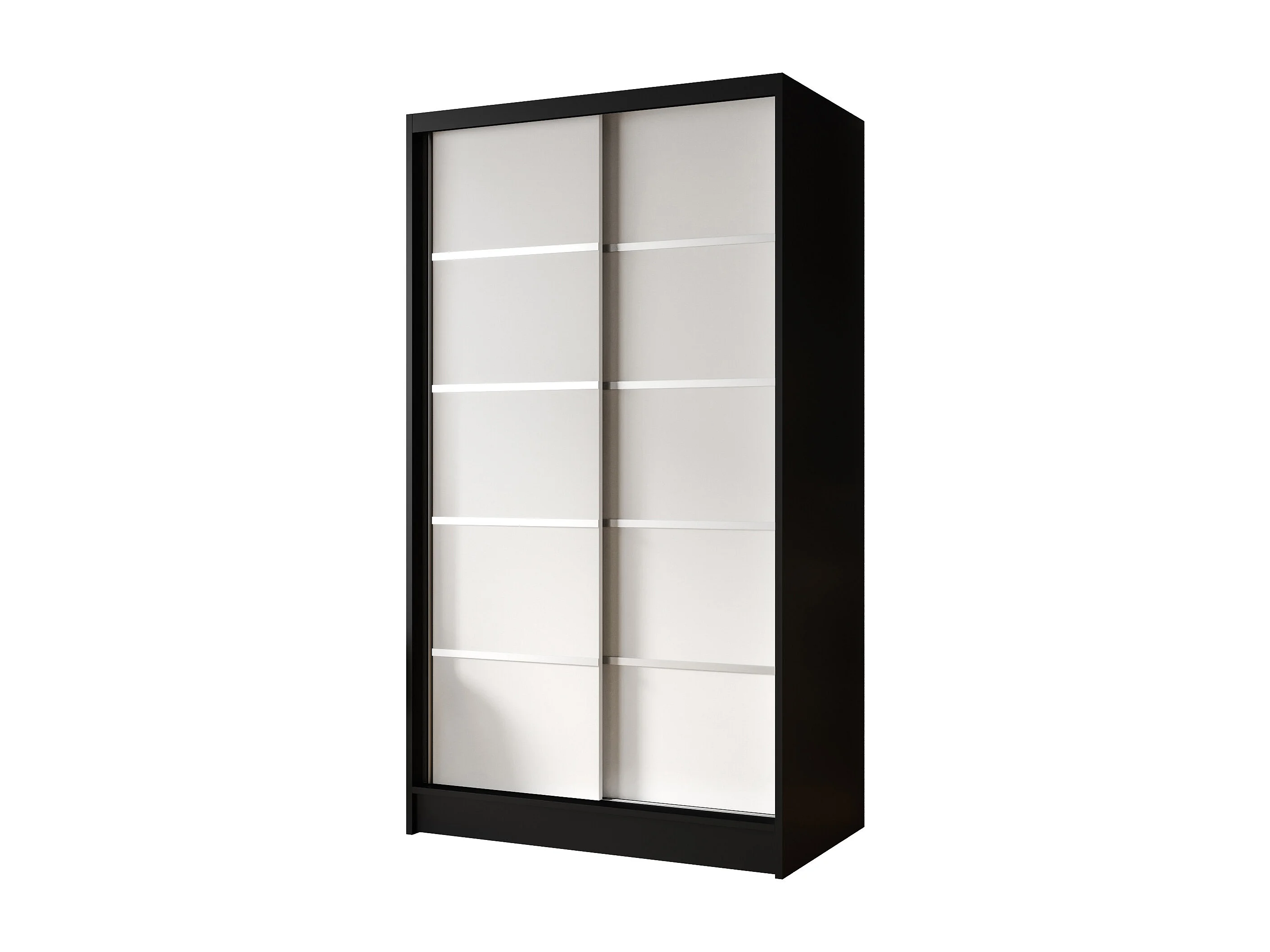 Zweitüriger Schiebeschrank DETROIT D4, Regalböden und Kleiderstange (Schwarz/Weiß)