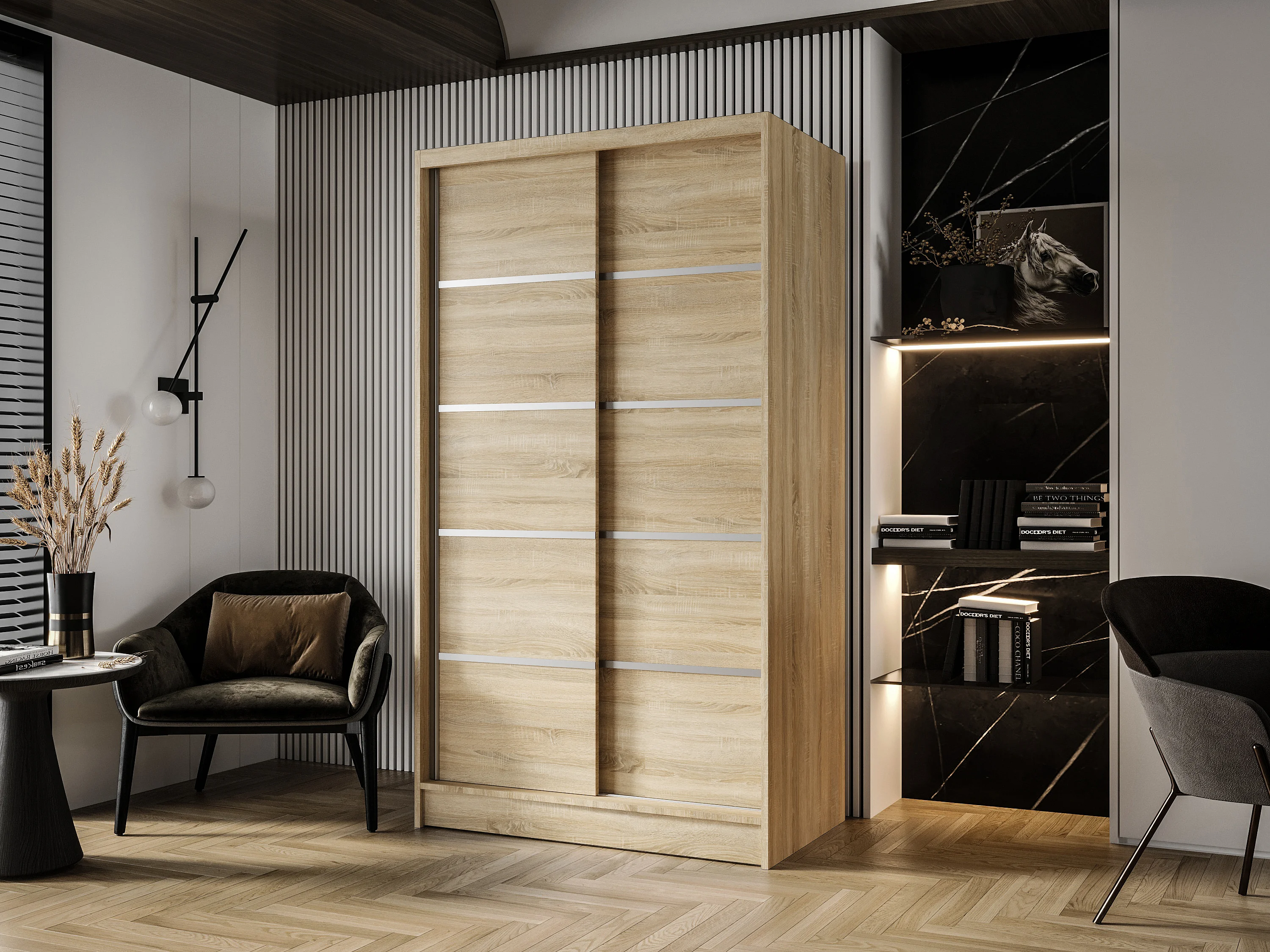 Zweitüriger Schiebeschrank DETROIT D4, Regalböden und Kleiderstange (Sonoma)