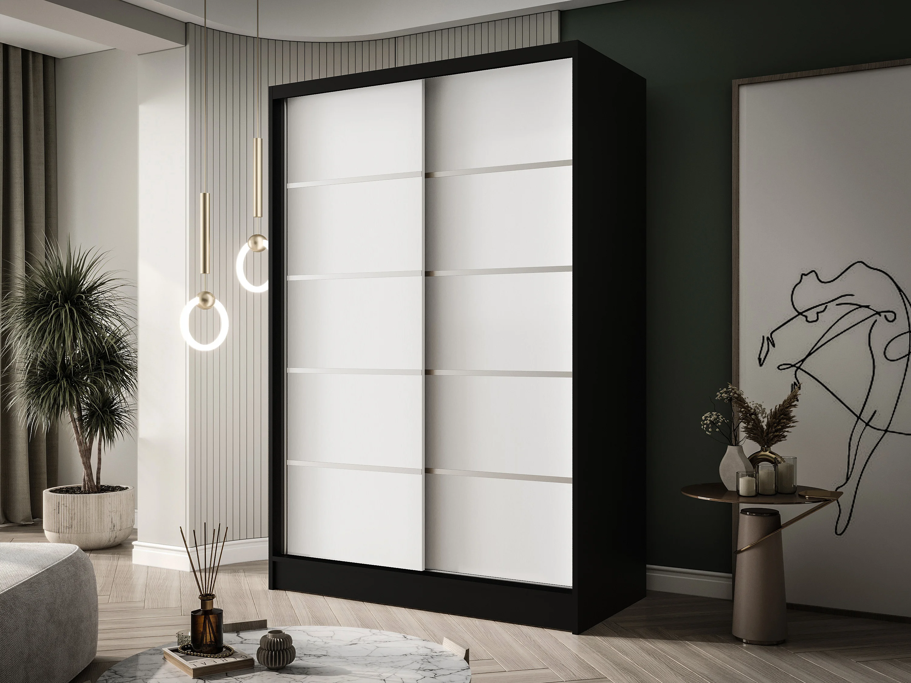 Zweitüriger Schiebeschrank LAUSANNE L4, Regalböden und Kleiderstange (Schwarz/Weiß)