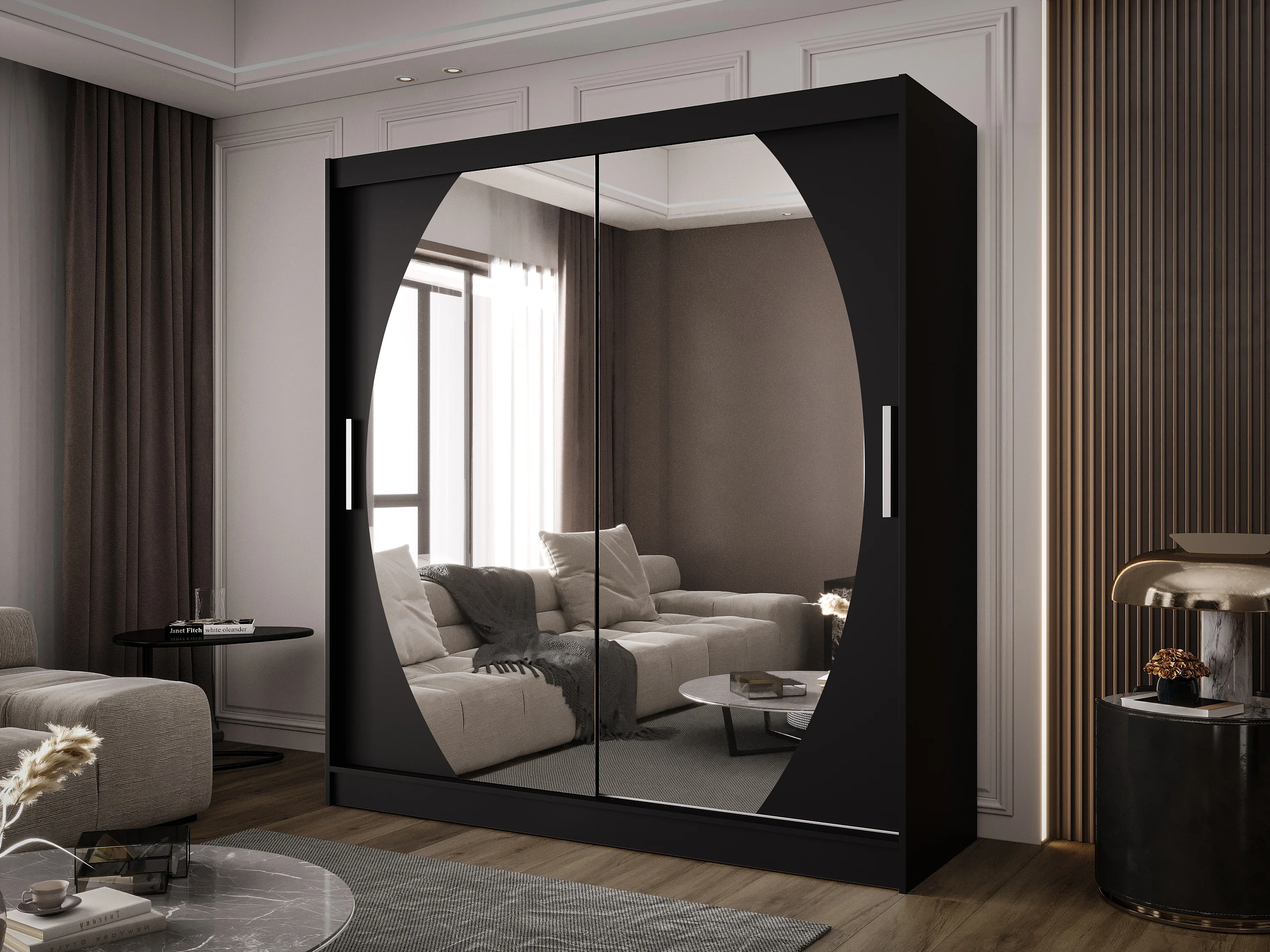 Zweitüriger Schiebeschrank mit Spiegel BALTIMORE B4 Schwarz