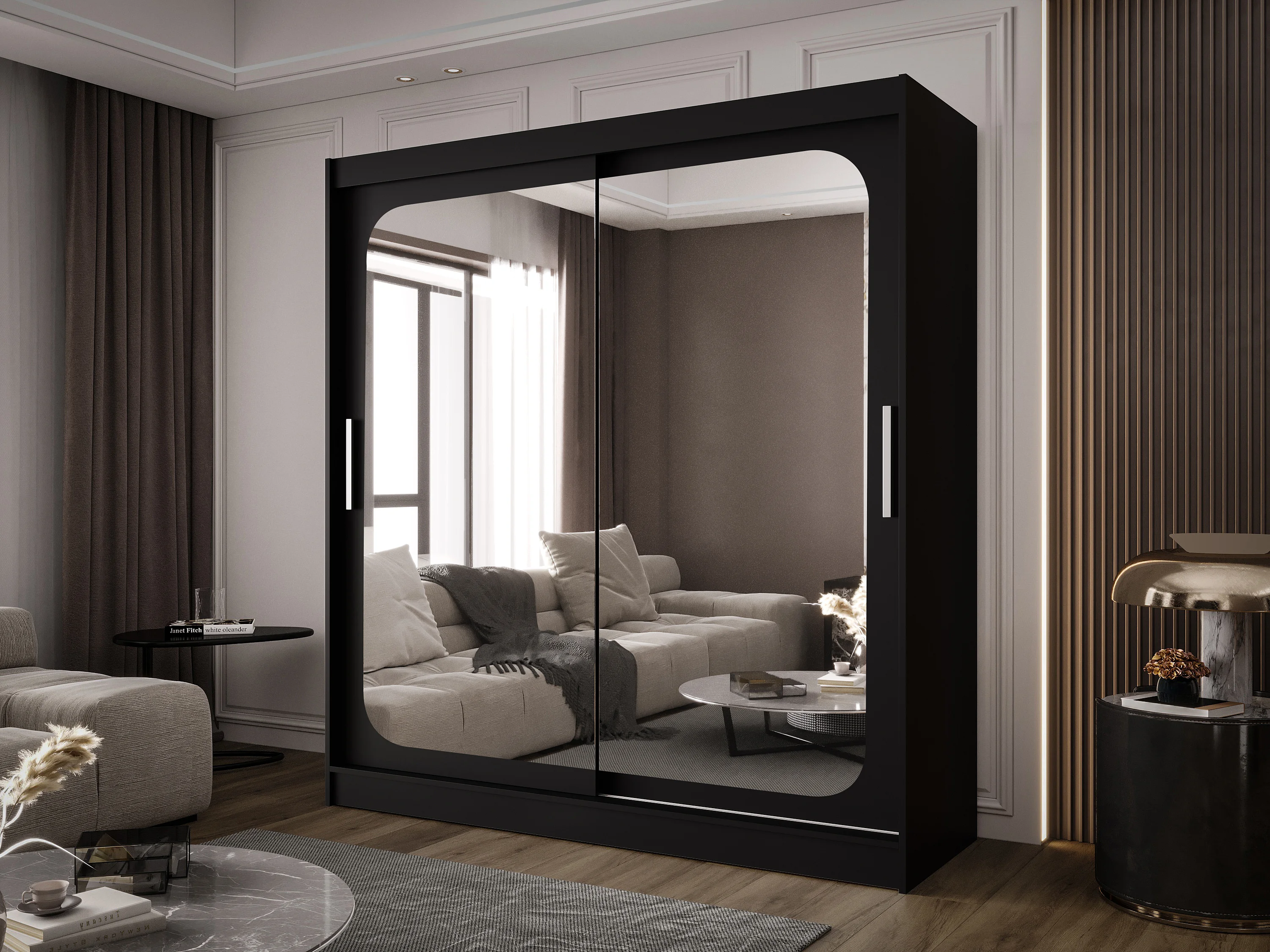 Zweitüriger Schiebeschrank mit Spiegel BALTIMORE B8 Schwarz