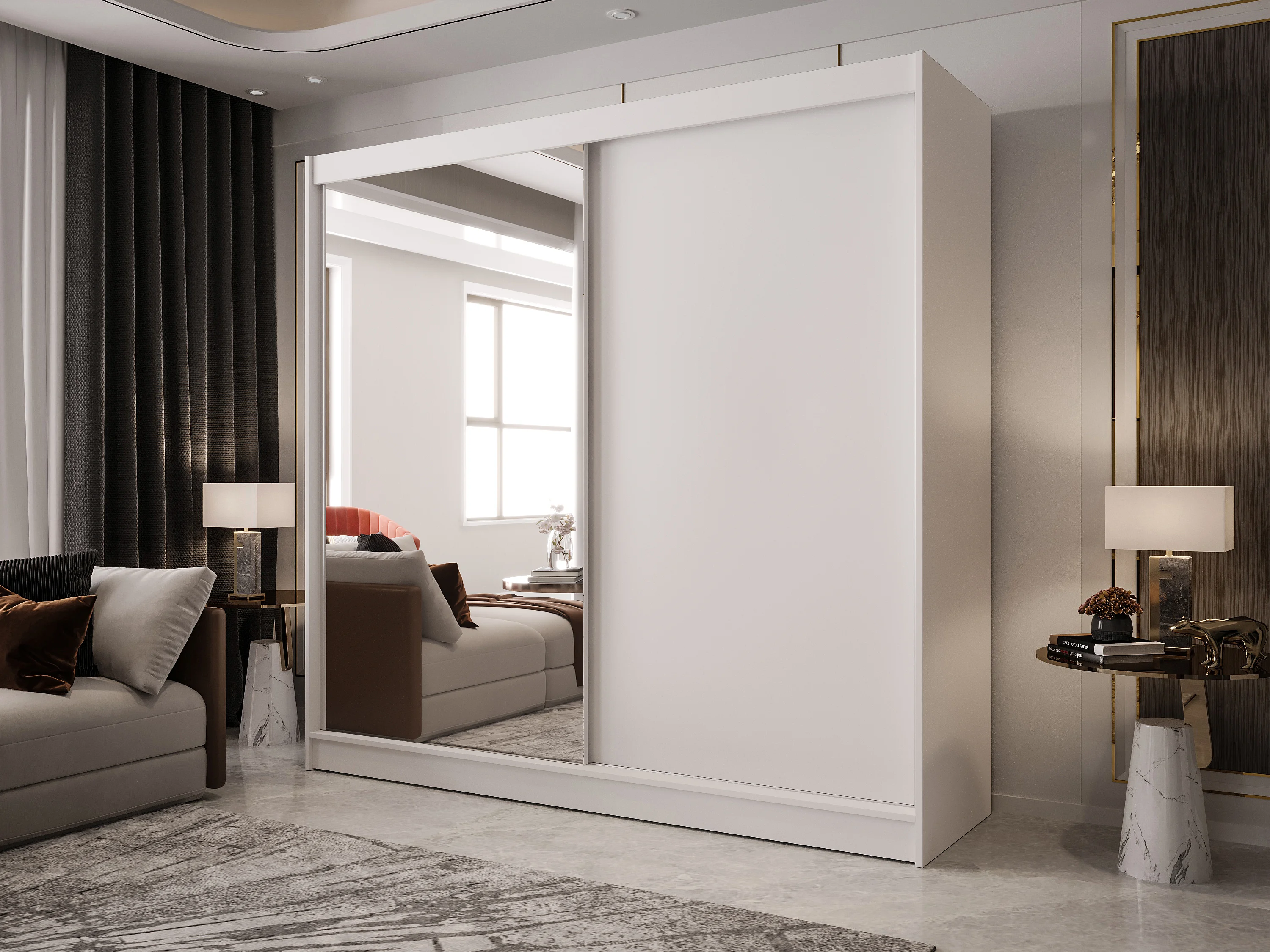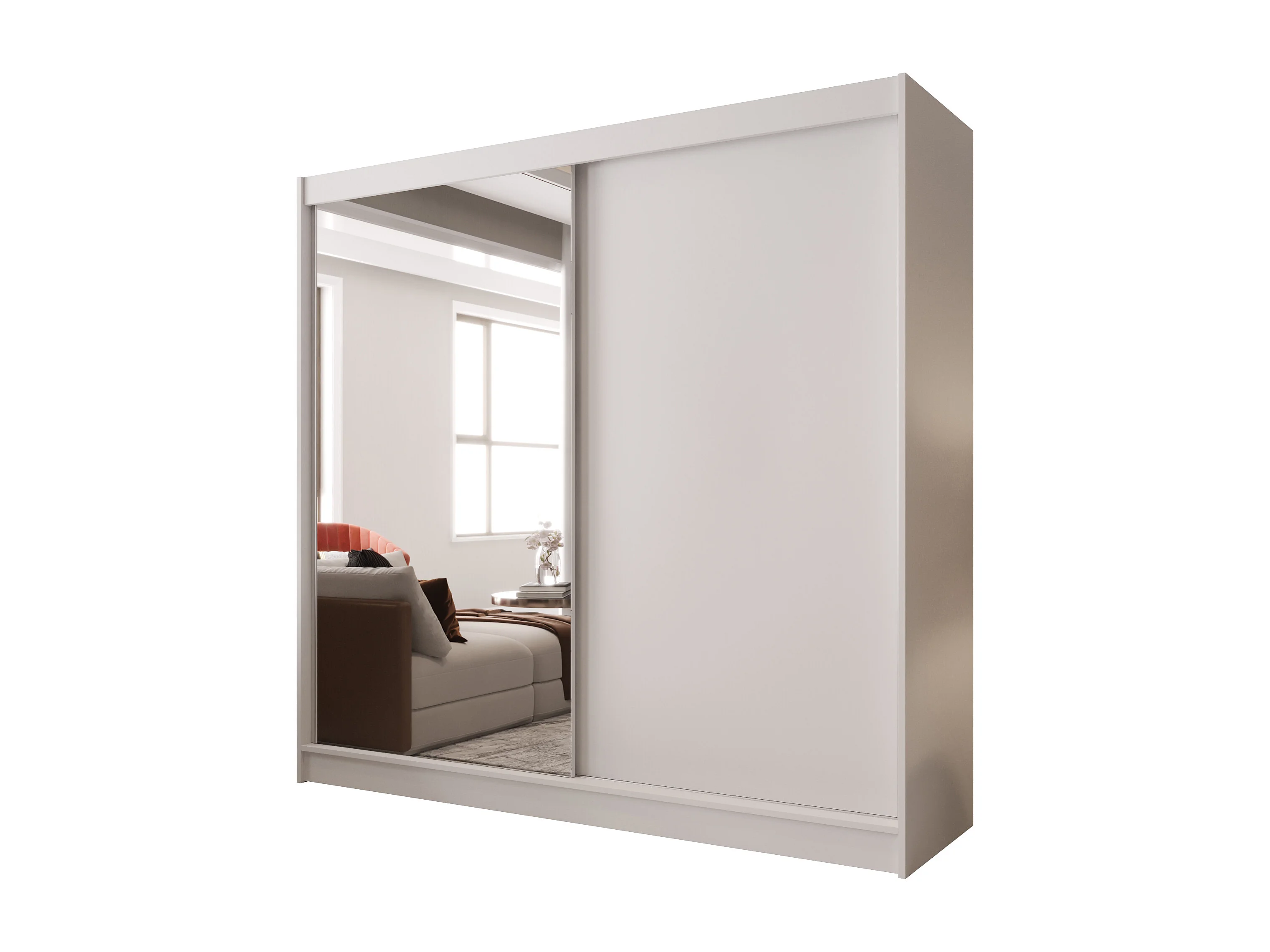 Zweitüriger Schiebeschrank mit Spiegel BOSTON B1 Weiß