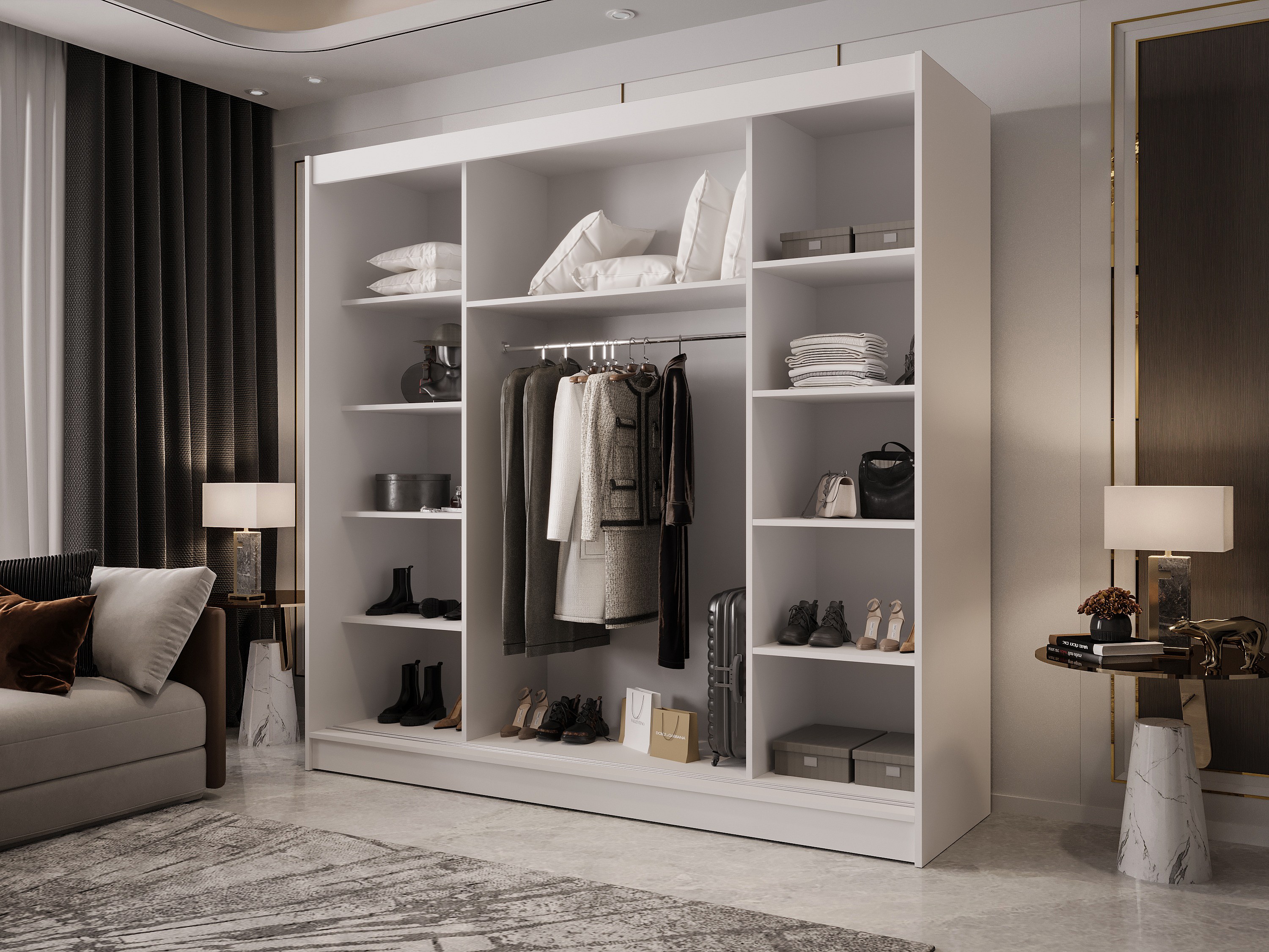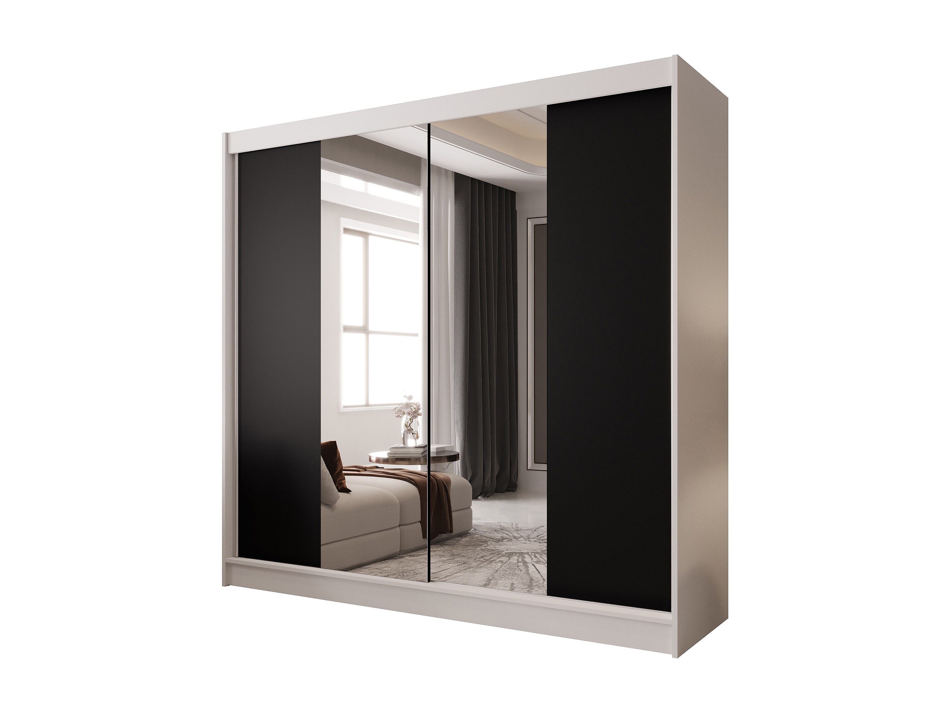 Zweitüriger Schiebeschrank mit Spiegel BOSTON B2 Weiß/Schwarz