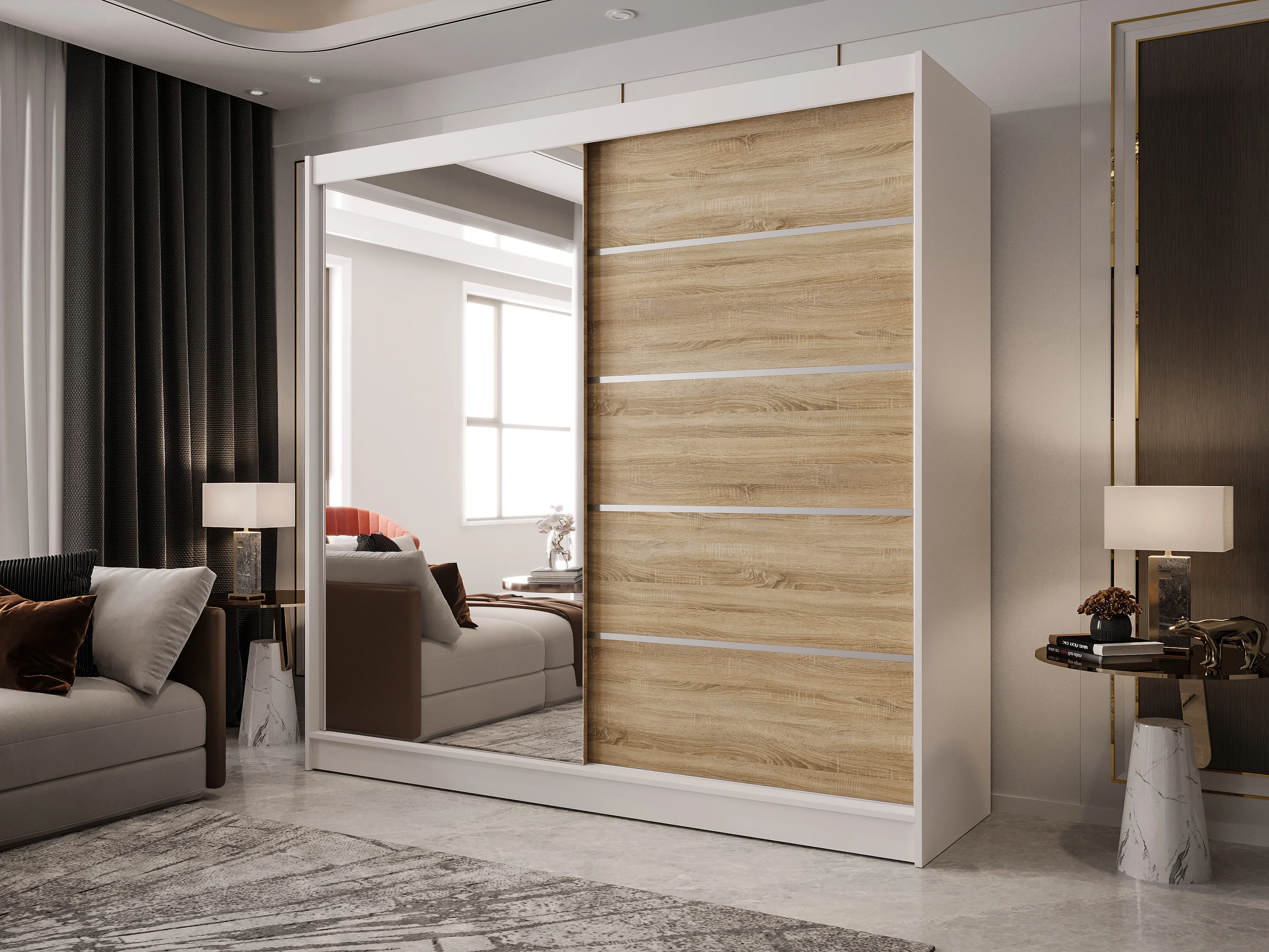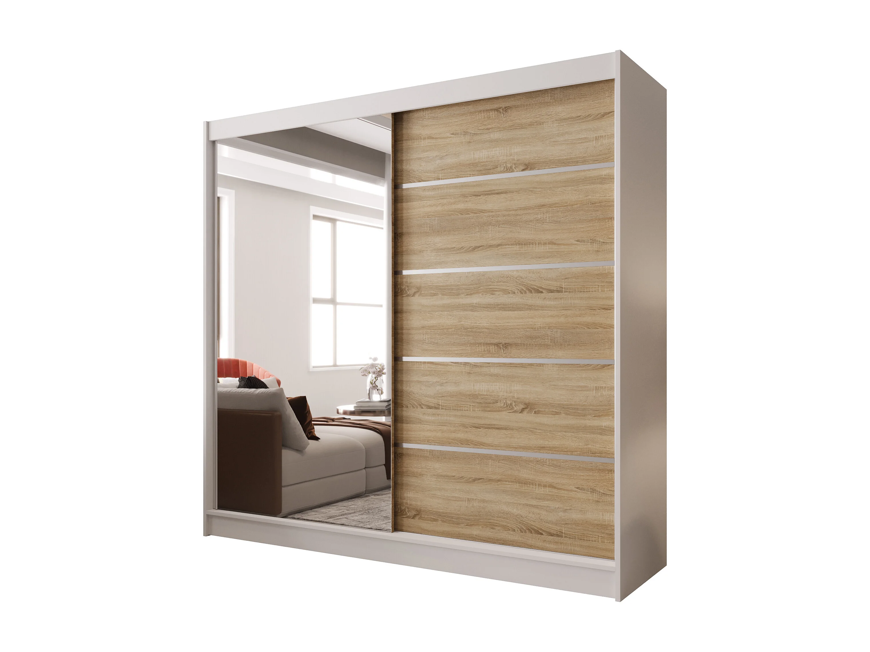 Zweitüriger Schiebeschrank mit Spiegel BOSTON B3 Weiß/Sonoma
